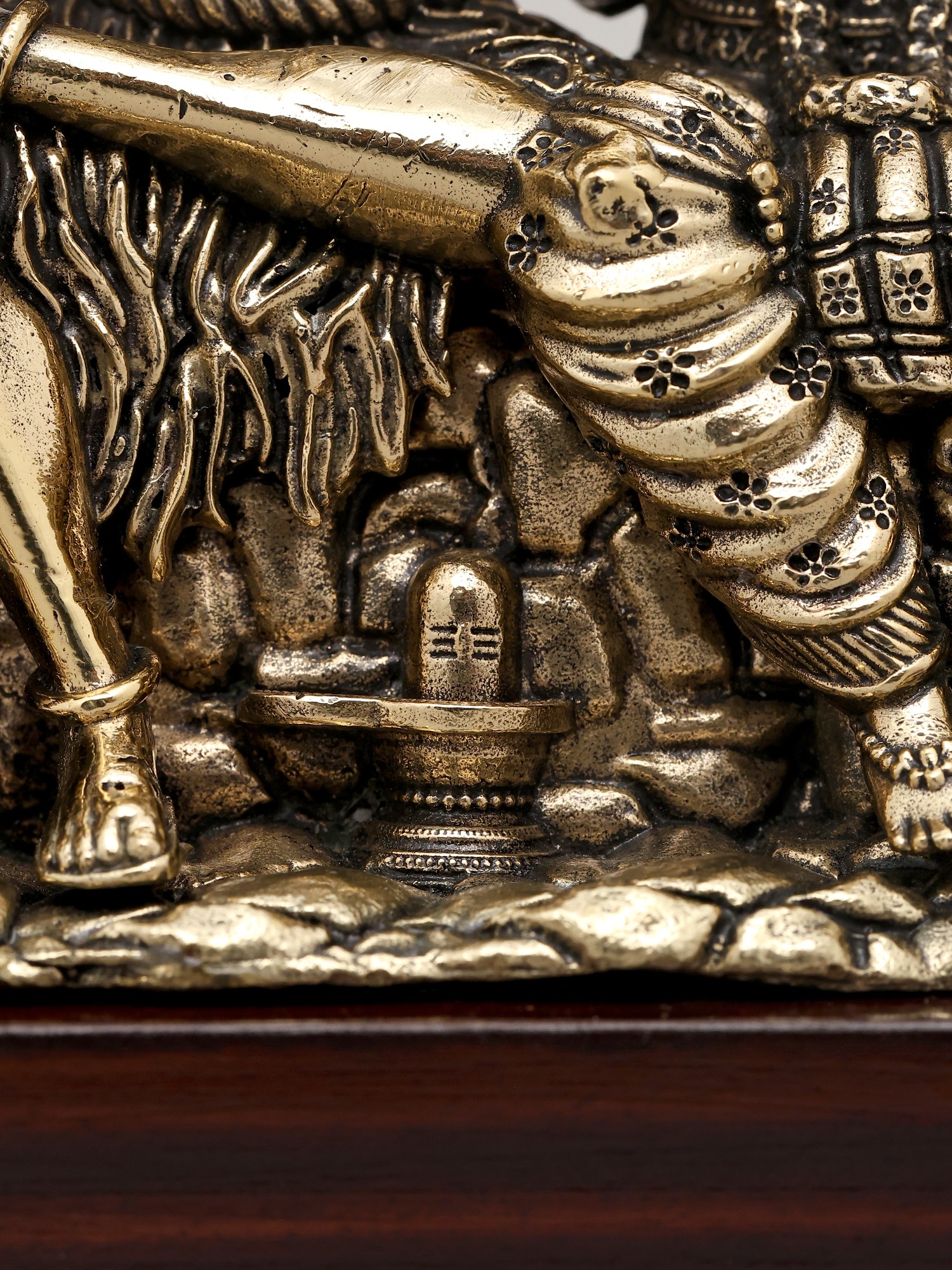 9" Shiva Family with Nandi and Lion | Handmade Brass Wall Hanging Flat Statue
