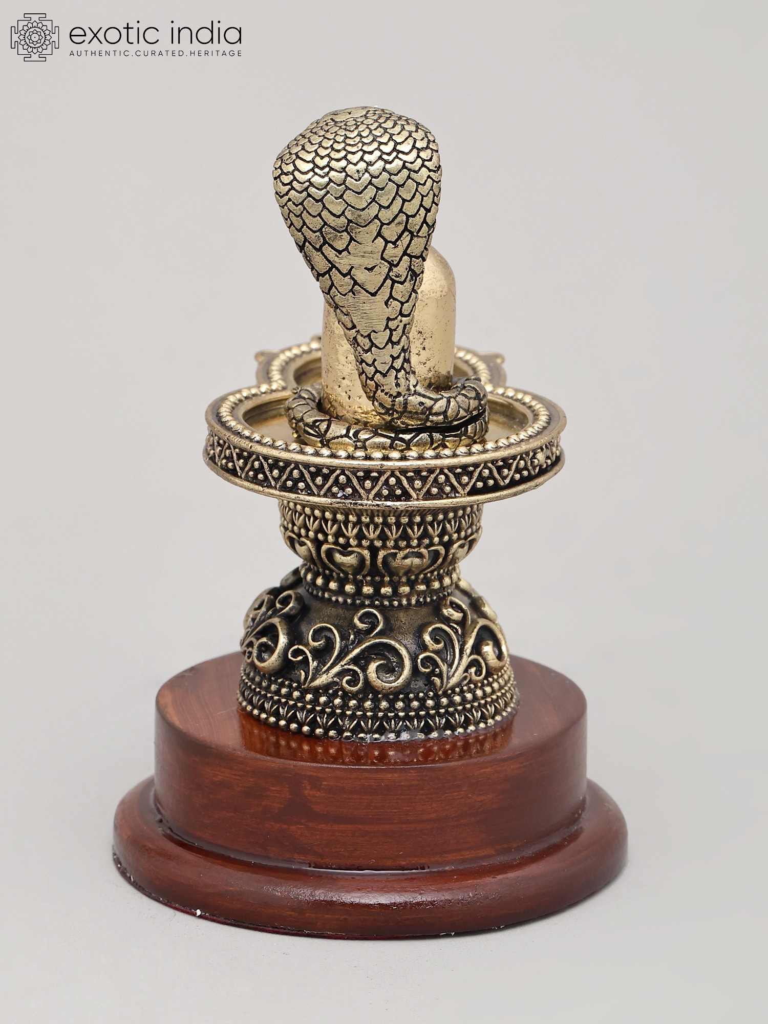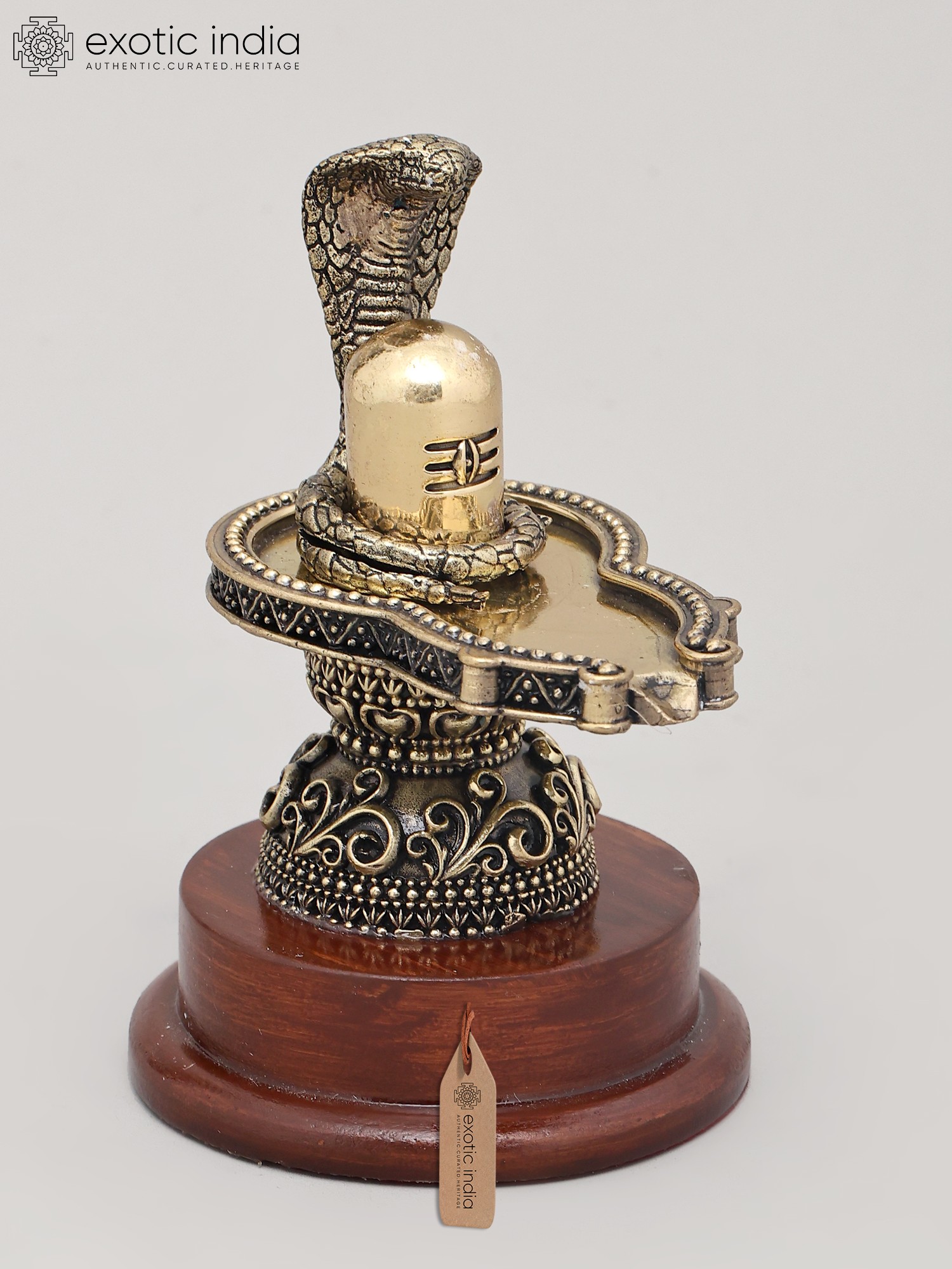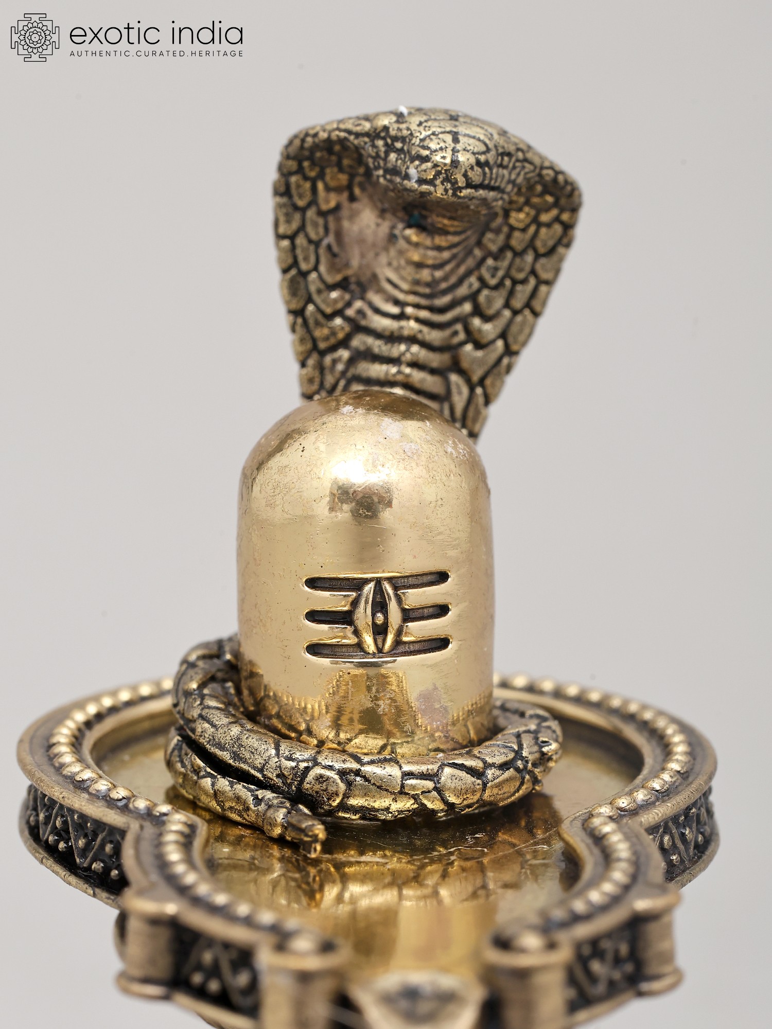11" Brass Shiva Head Shivalinga with Vasuki Naag and Trident