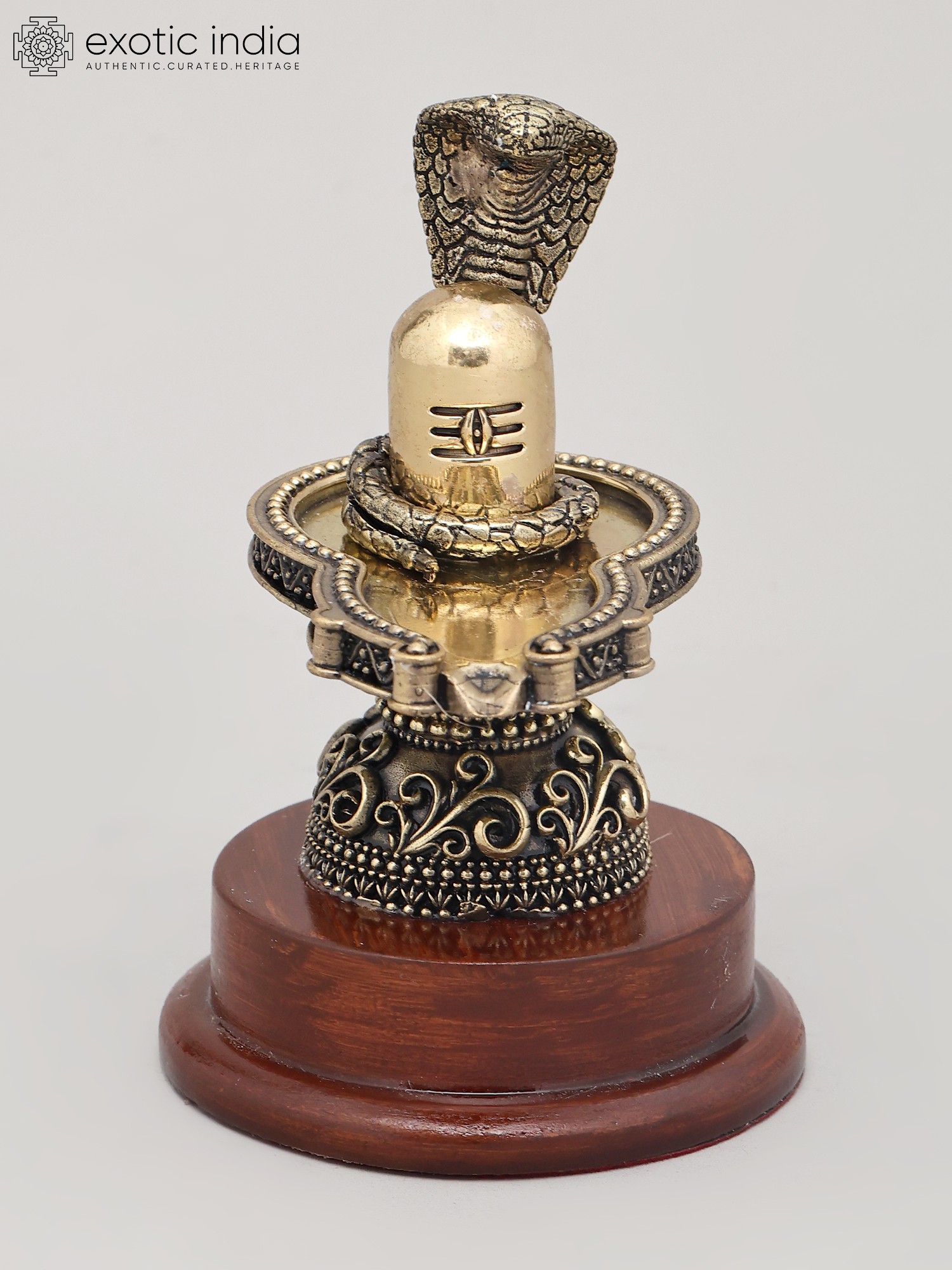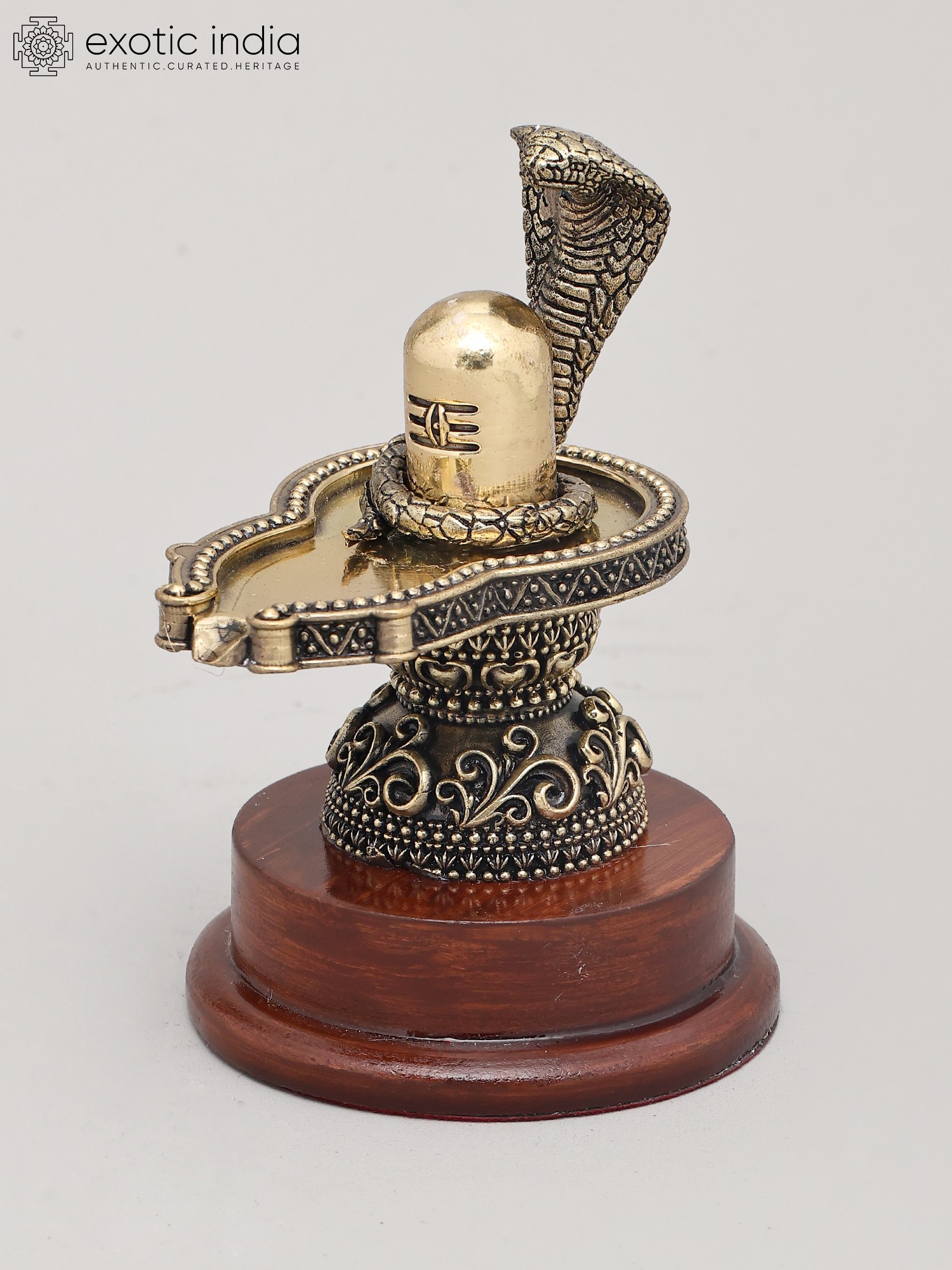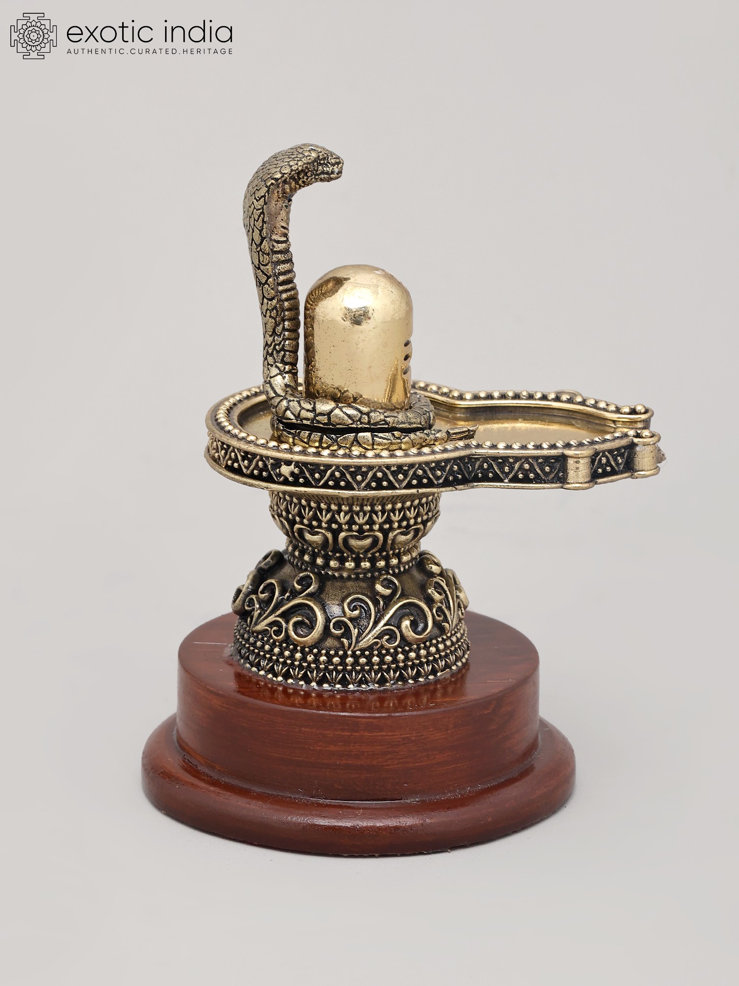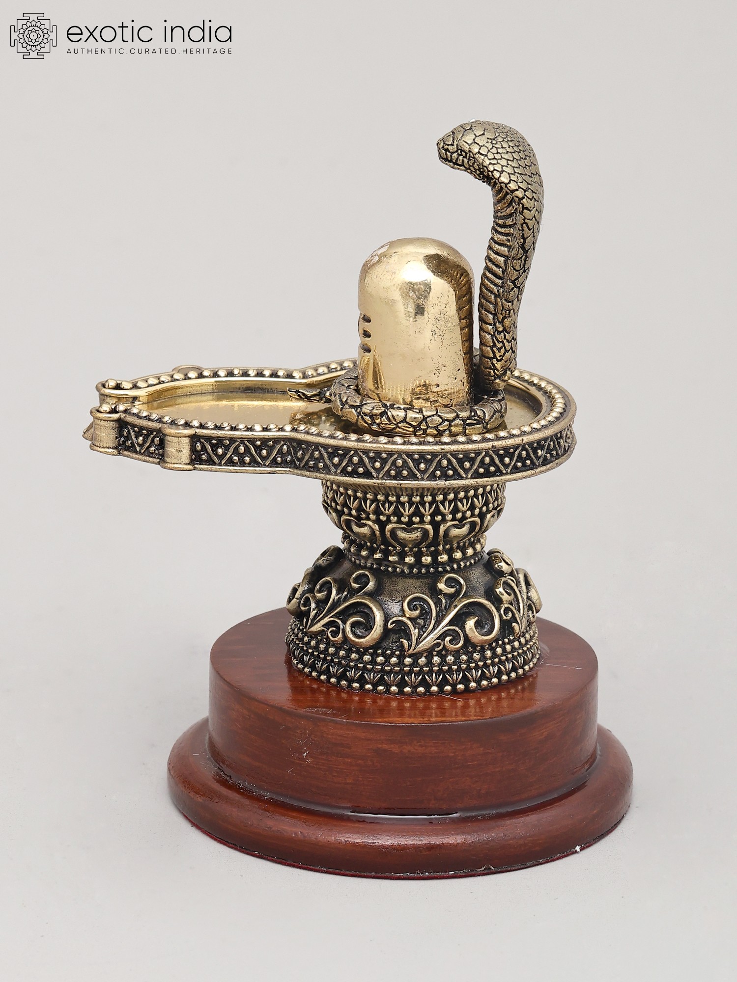 11" Brass Shiva Head Shivalinga with Vasuki Naag and Trident
