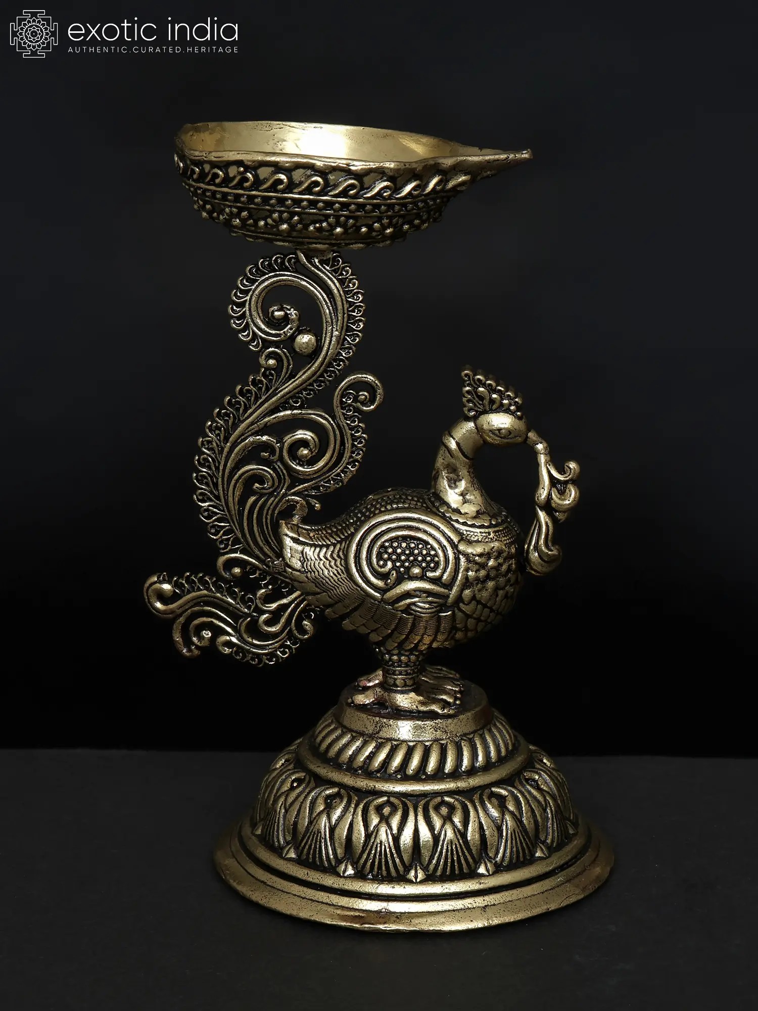 5" Superfine Lord Ganesha Diya (Lamp) in Brass with Kirtimukha Arch