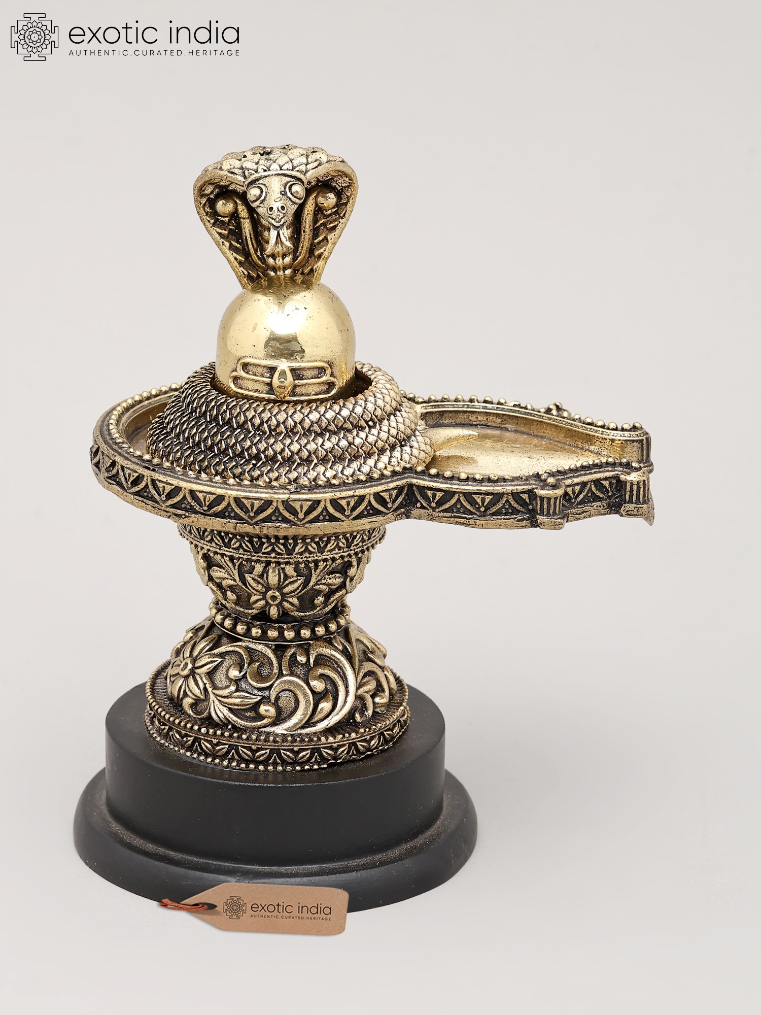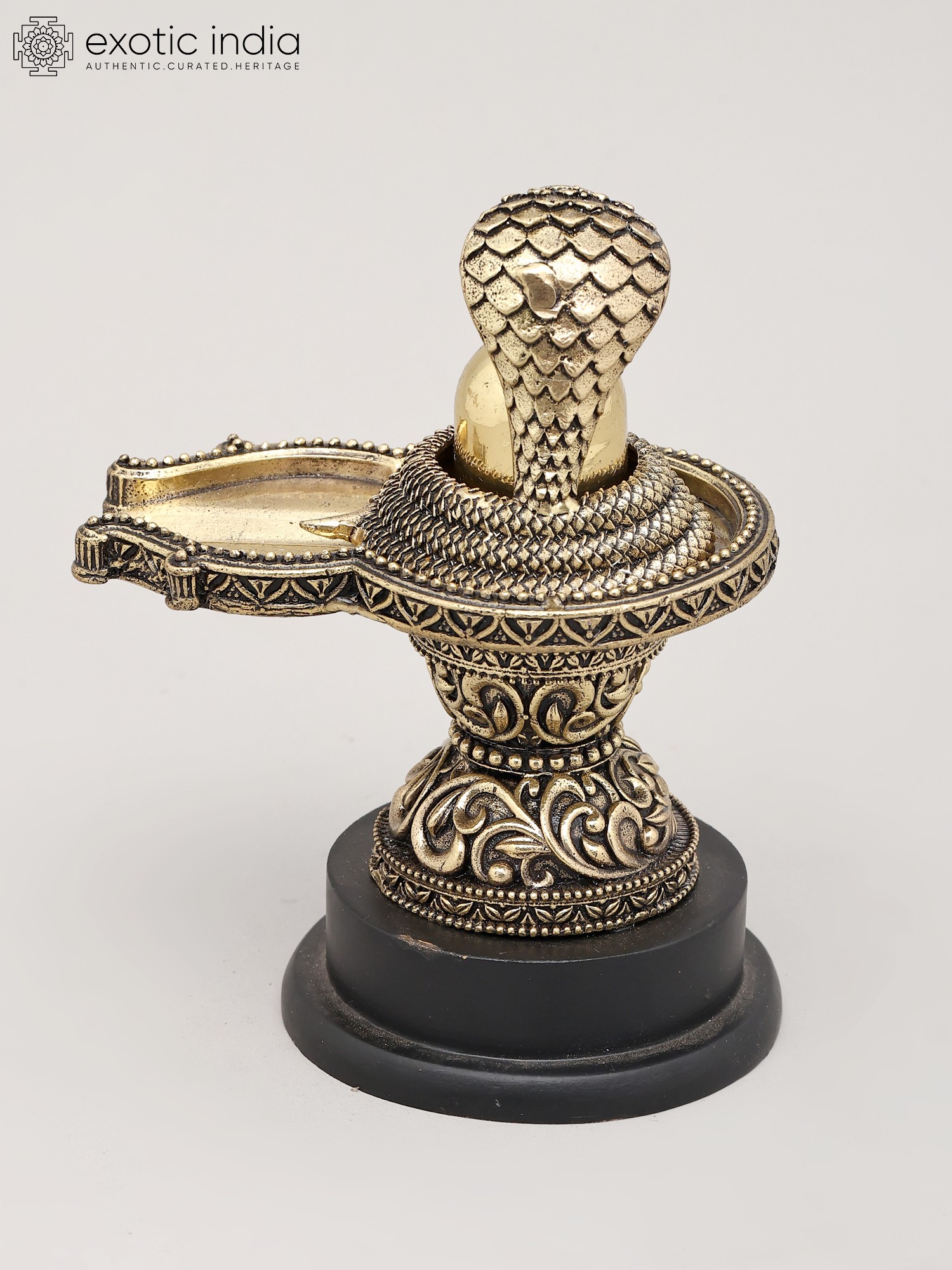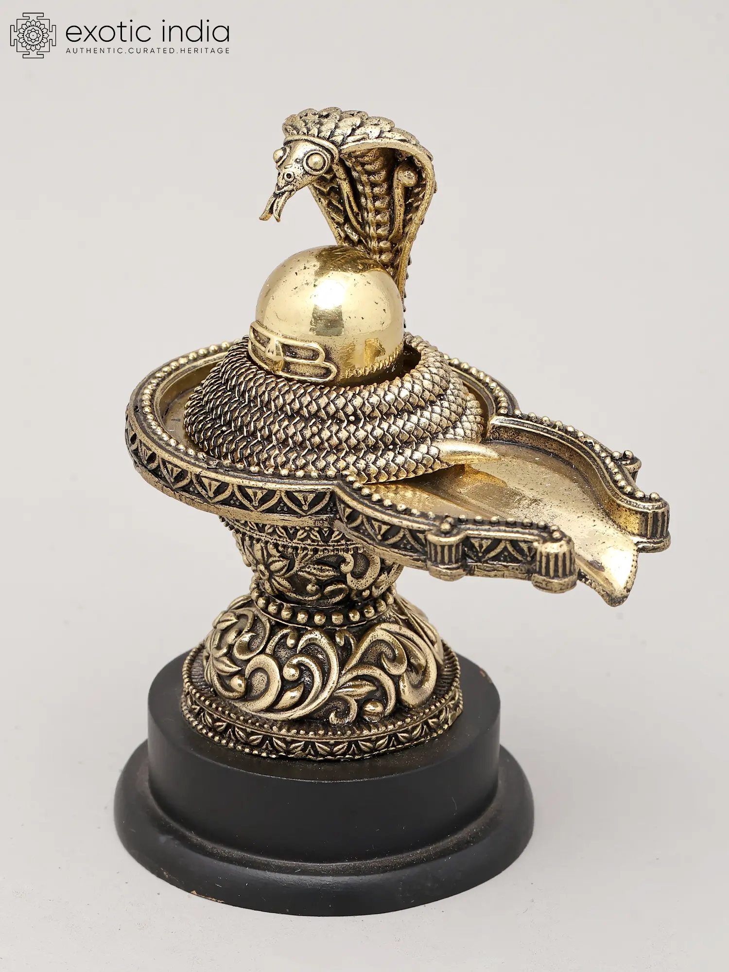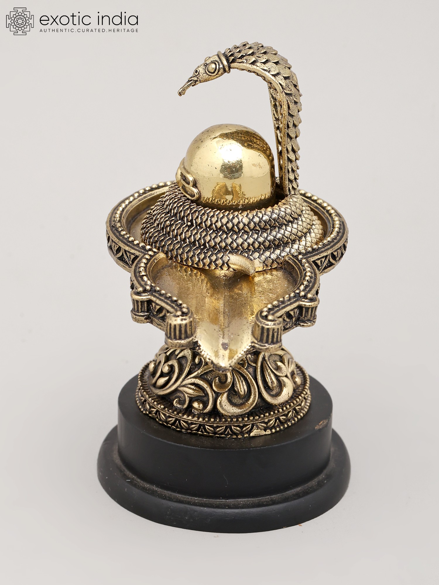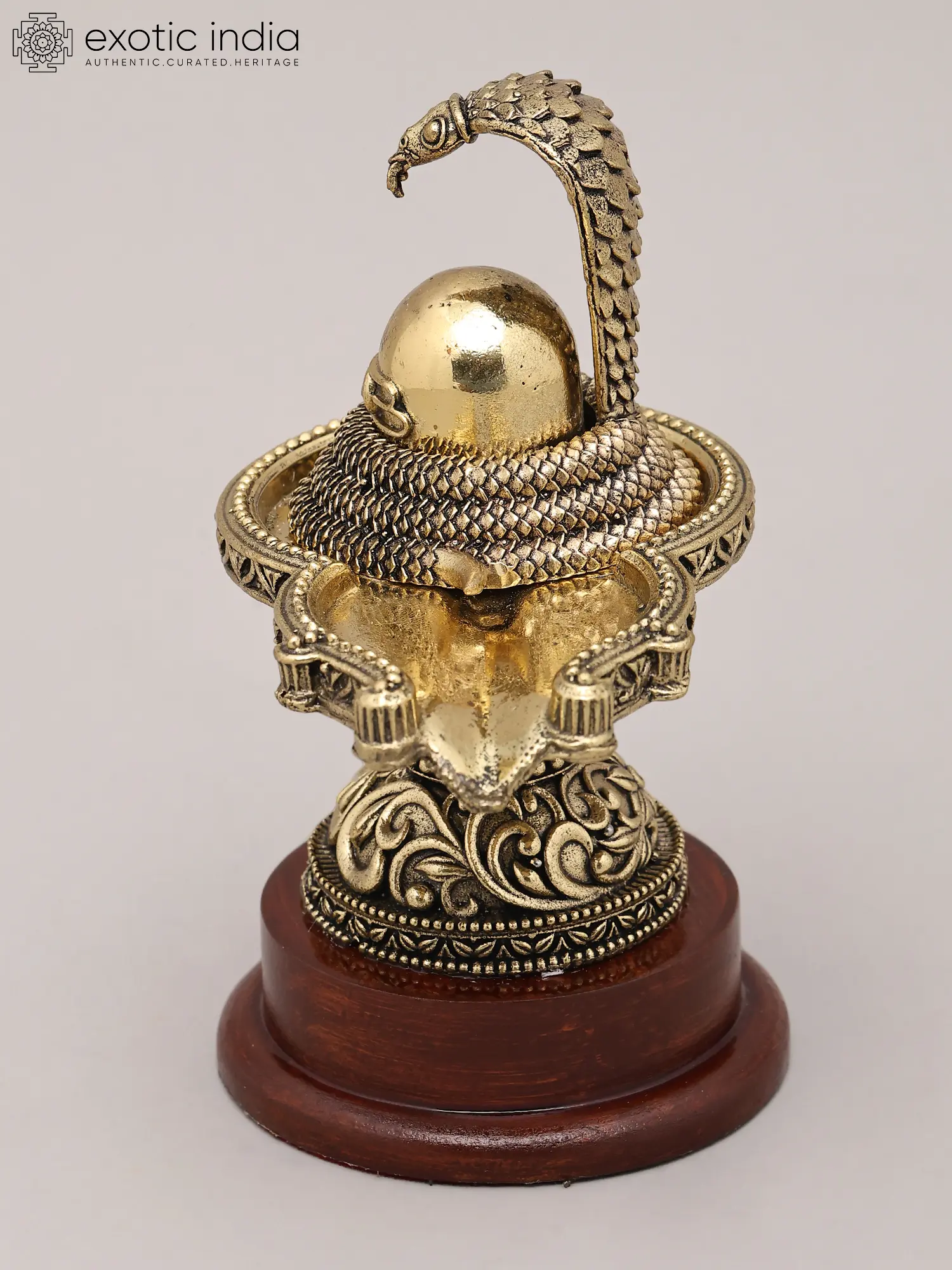 4" Small Shivalinga on Turtle Pedestal In Brass