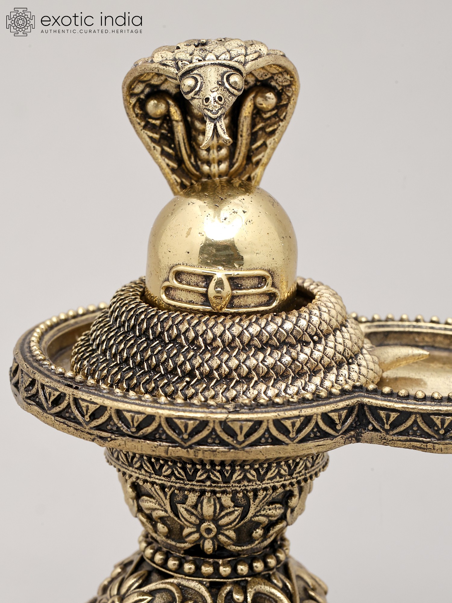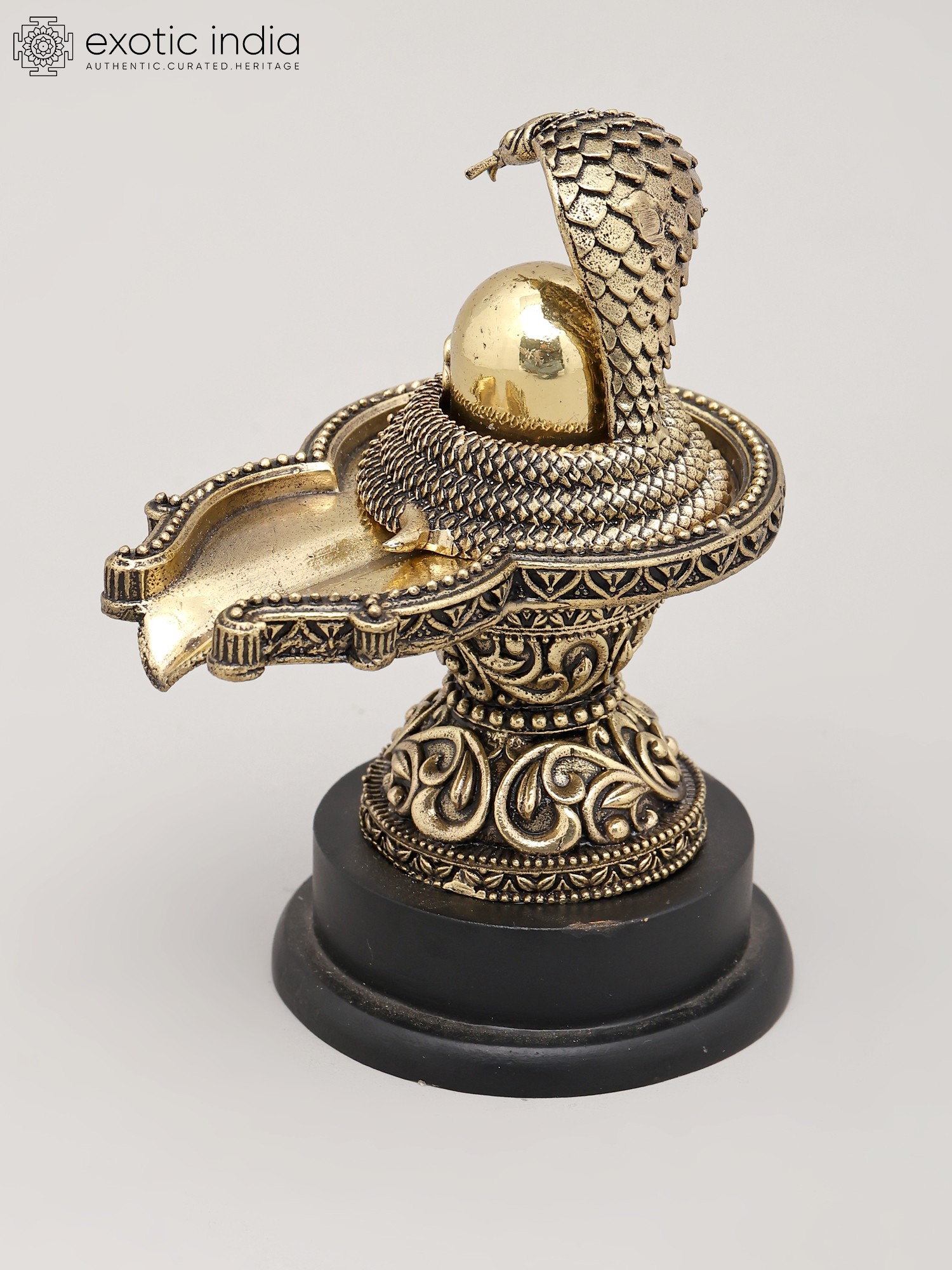 3" Small Brass Nandi Mukh Shivalinga with Protecting Naag and Trishul