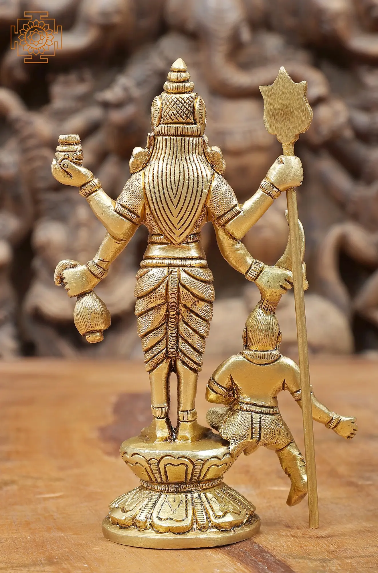South Indian Kali, also known as Goddess “Kottai Mariamman”, is a revered deity in the southern region of India. She is a fearsome yet compassionate representation of the “Divine Mother”, often depicted with a dark complexion. With multiple arms, She holds a Trident (trishul), a bowl of blood (Kapala), and a severed head, denoting her ability to conquer evil. Here, the most striking depiction is that Goddess Kali holds Raktabeej by his hair, symbolising her formidable strength and unyielding determination. Worshipping South Indian Kali offers a plethora of benefits to devotees. Adorn your sacred space with this mesmerising brass creation and invoke the blessings of the “Goddess Kali” upon your life.