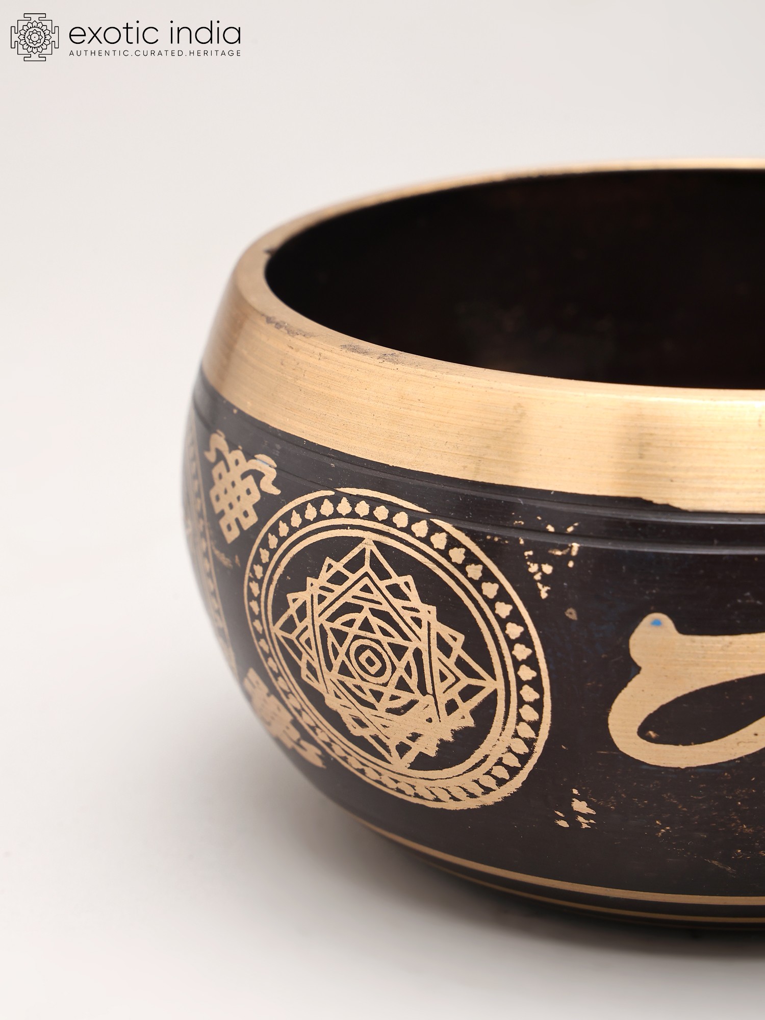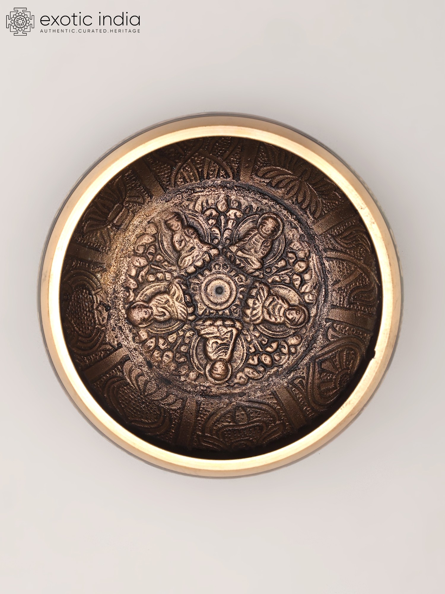 4" Black Tibetan Singing Bowl with Five Dhyani Buddhas Engraving - Sacred Meditation & Sound Healing