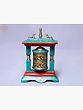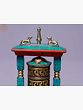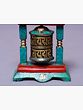 In the sacred landscape of prayer, the two pillars’ stone setting table prayer wheel stands as a testament to devotion and spiritual exploration. Resembling a temple structure, its turquoise-dominant design evokes a sense of tranquillity. The Two pillars enhance either side, anchoring the wheel's golden textured centre. Above these pillars, two dogs symbolize loyalty and guardianship, offering protection on the seeker's spiritual path. The wheel itself bears the mantra "om," shining with golden hues of reverence. With every gentle spin, the turquoise and coral touches infuse the surroundings with supreme energy, harmonizing the inner and outer realms of the devotee's journey.