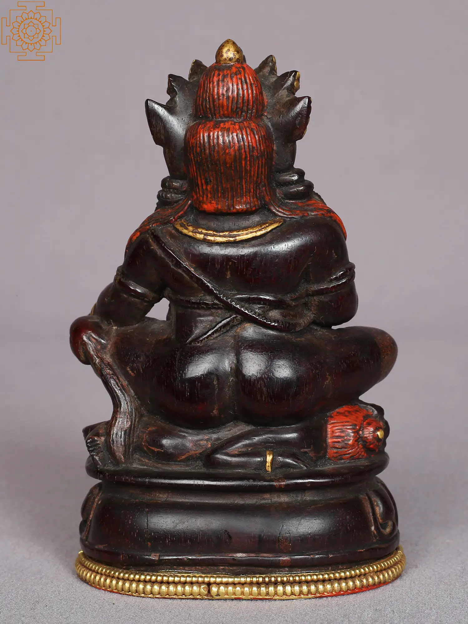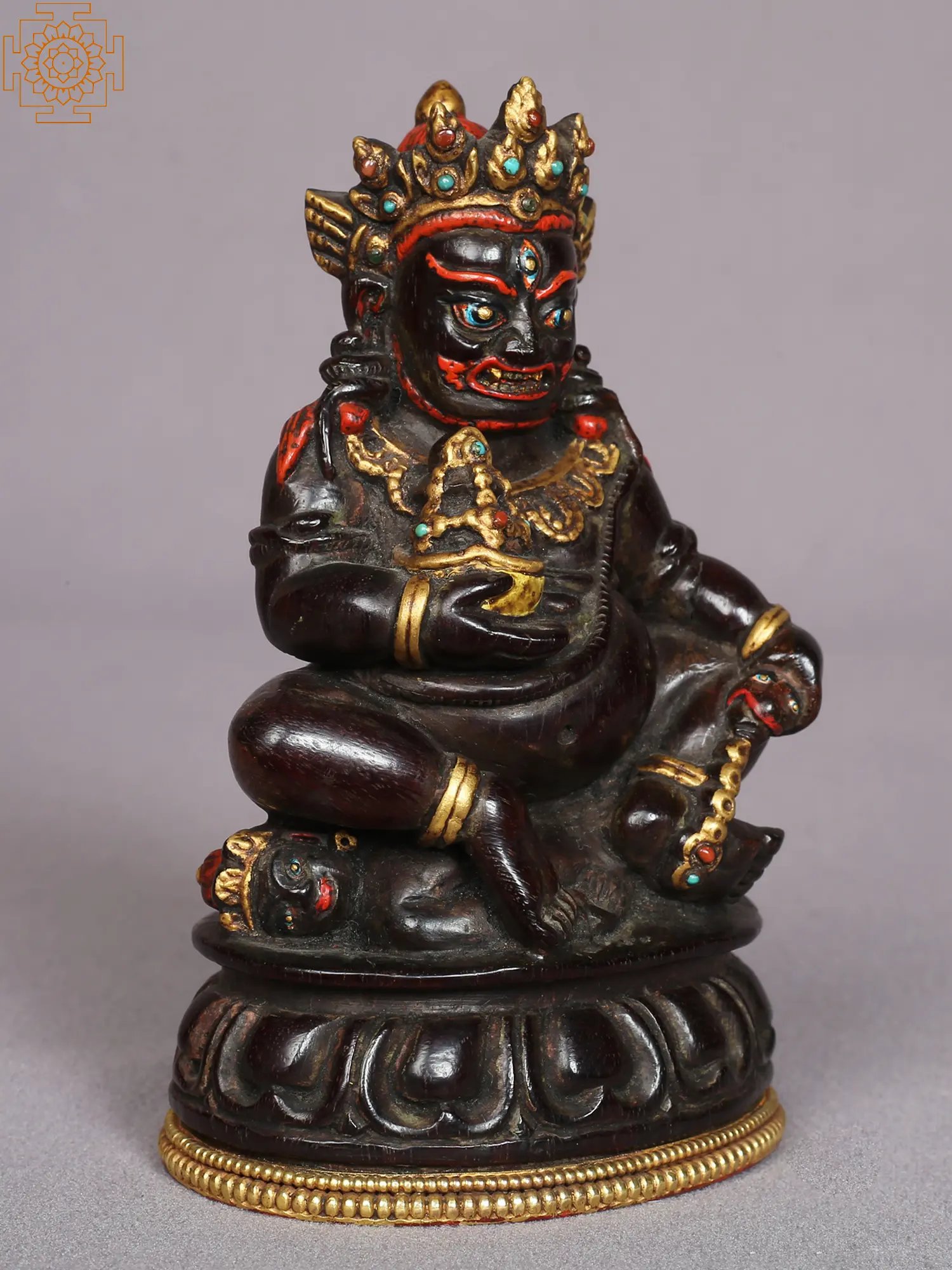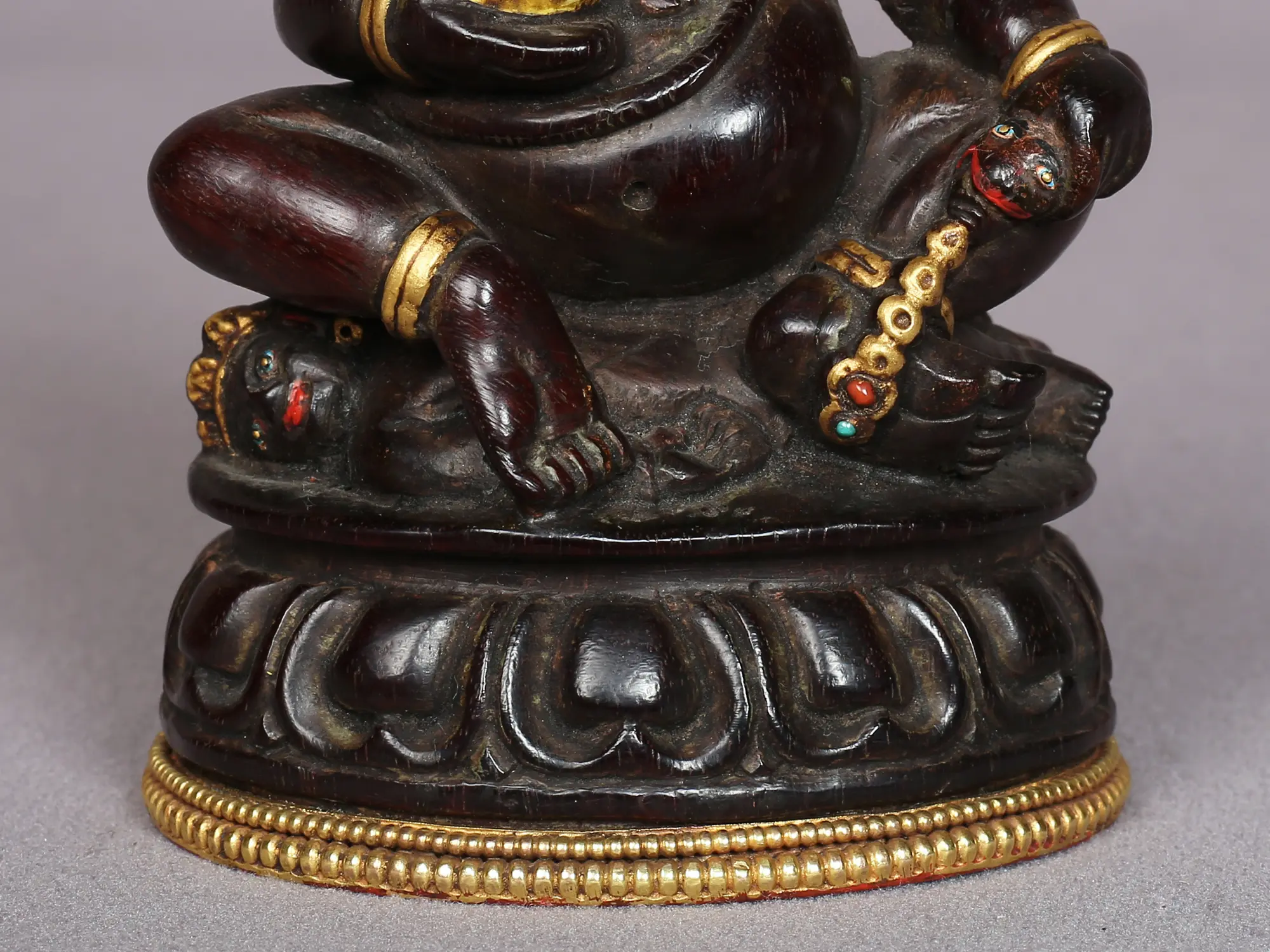 Mahakala is traditionally depicted with a striking black complexion. Much like how all colors merge and dissolve into black. The black hue also signifies the absolute reality and the transcendence of all forms, symbolizing the absence of color and the ultimate reality he represents.