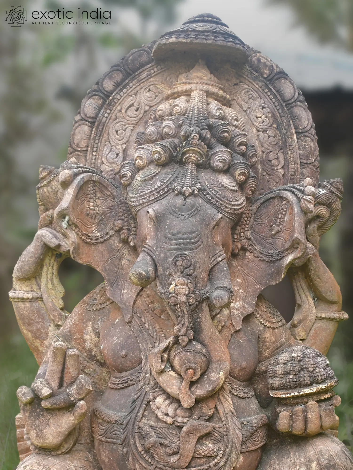 60" Six Armed Lord Ganesha | Sandstone Statue | Exquisite Handmade Indian Art