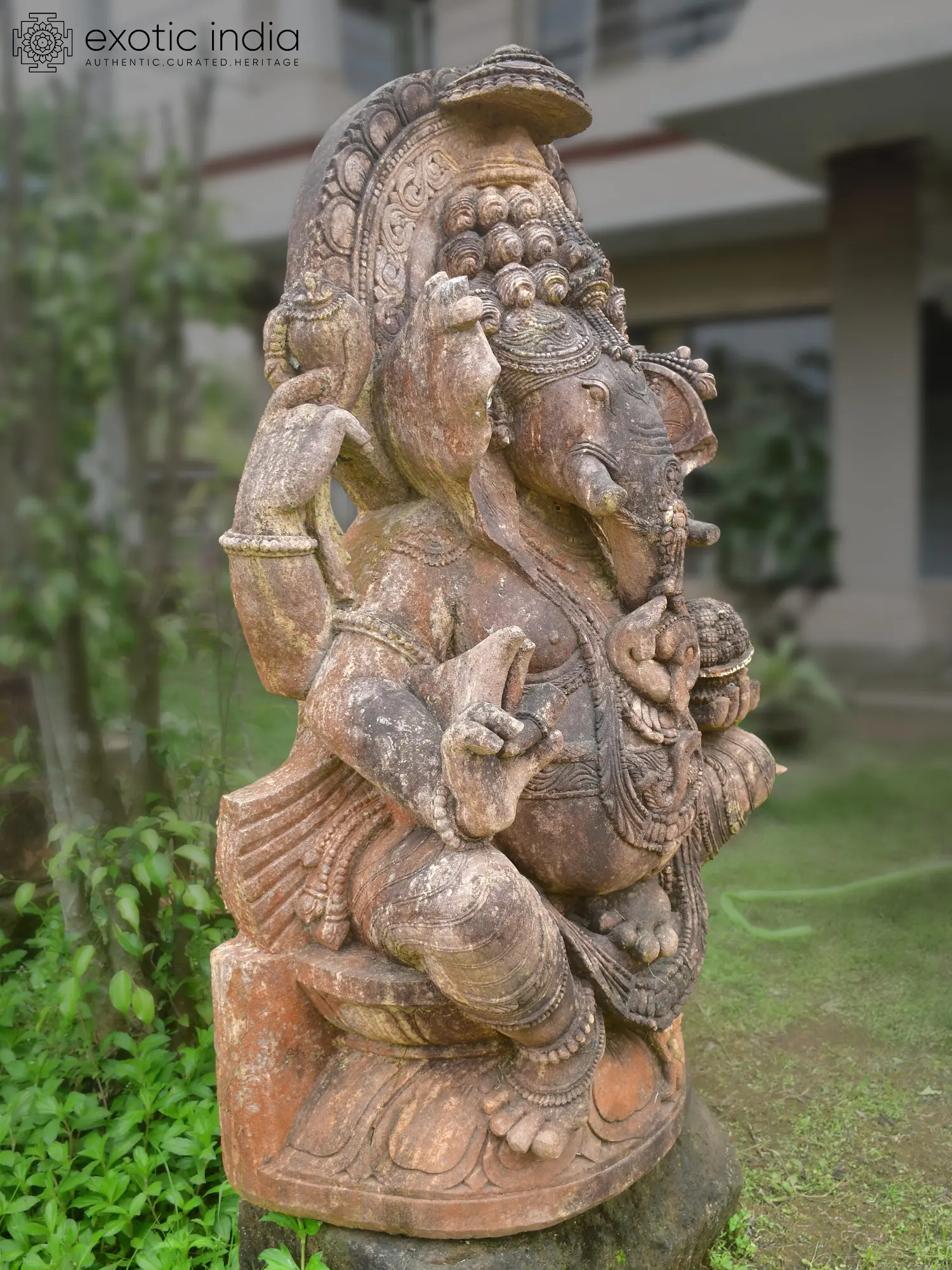 85" Seated Lord Ganesha | Sandstone Statue | Exquisite Handmade Indian Art