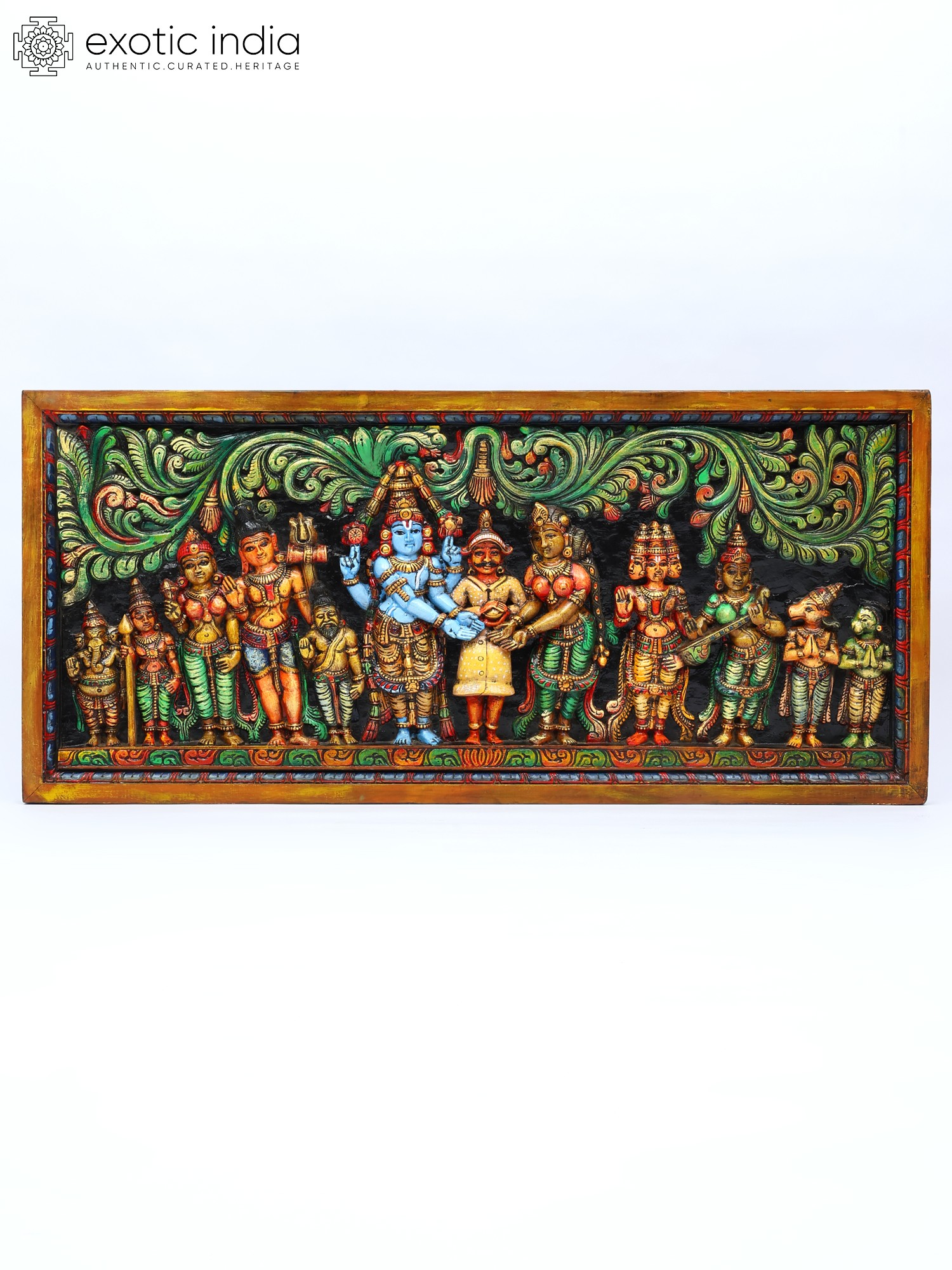Radha Krishna Tanjore Painting | Traditional Colors With 24K Gold | Teakwood Frame | Gold & Wood | Handmade