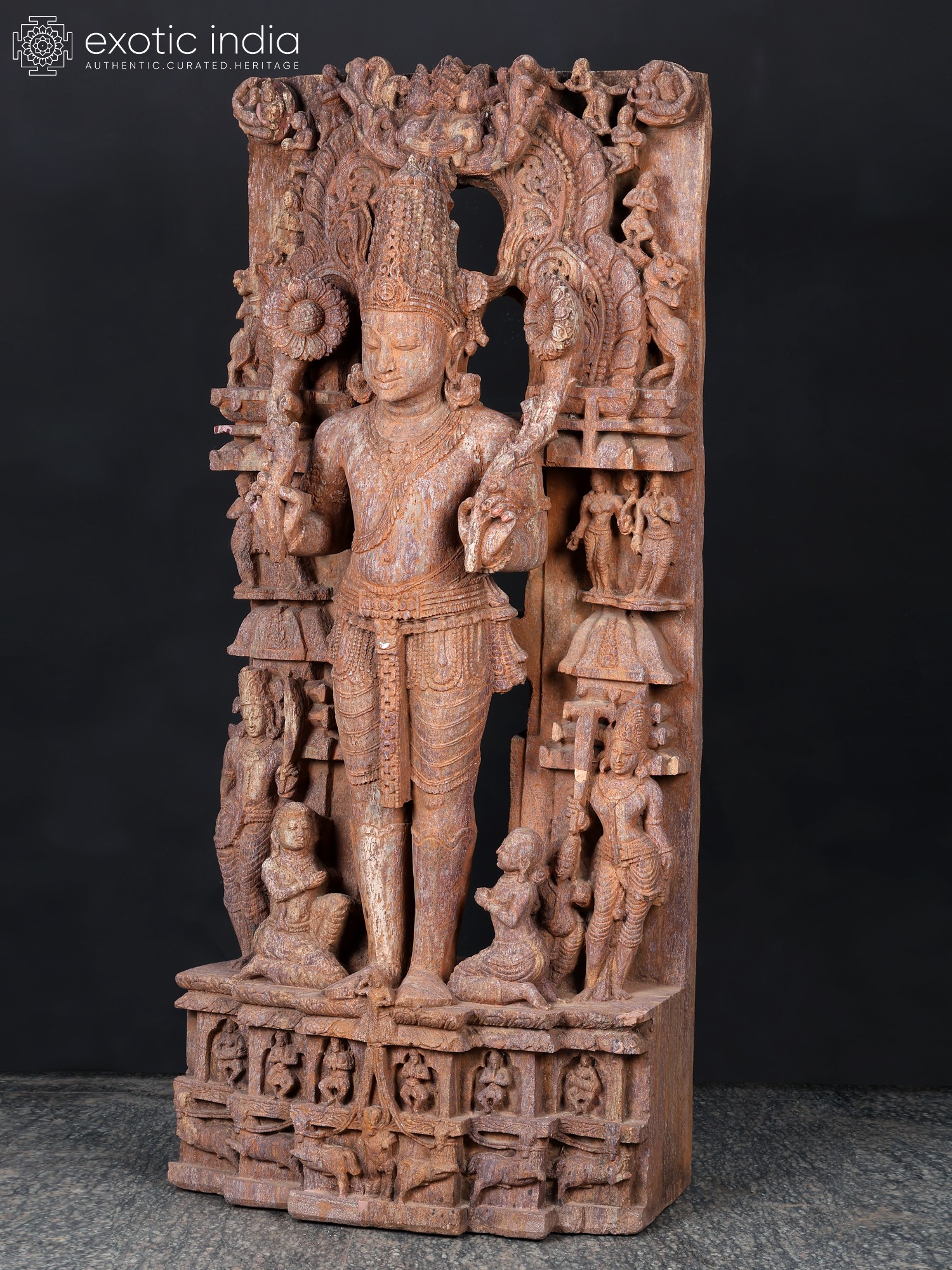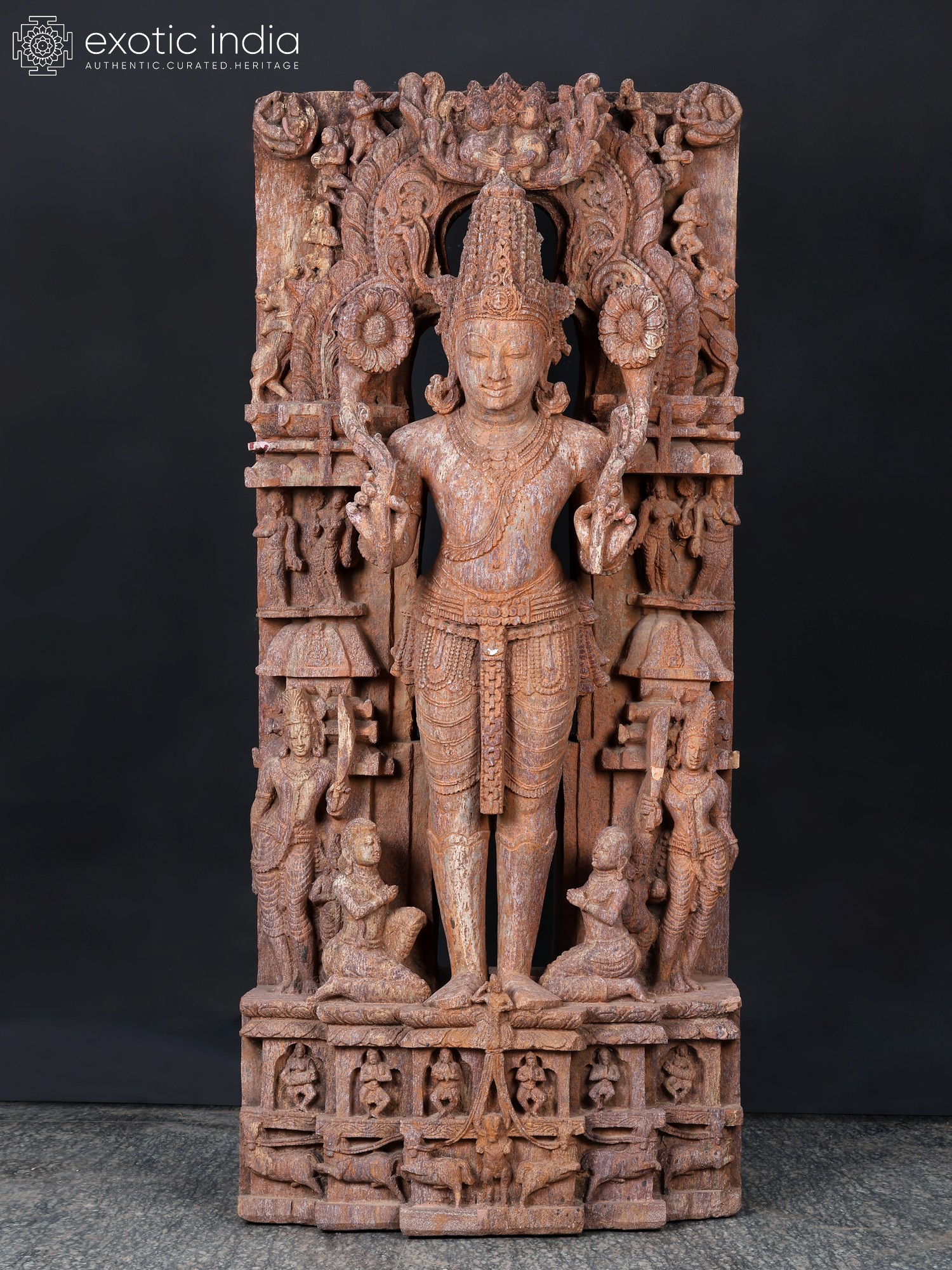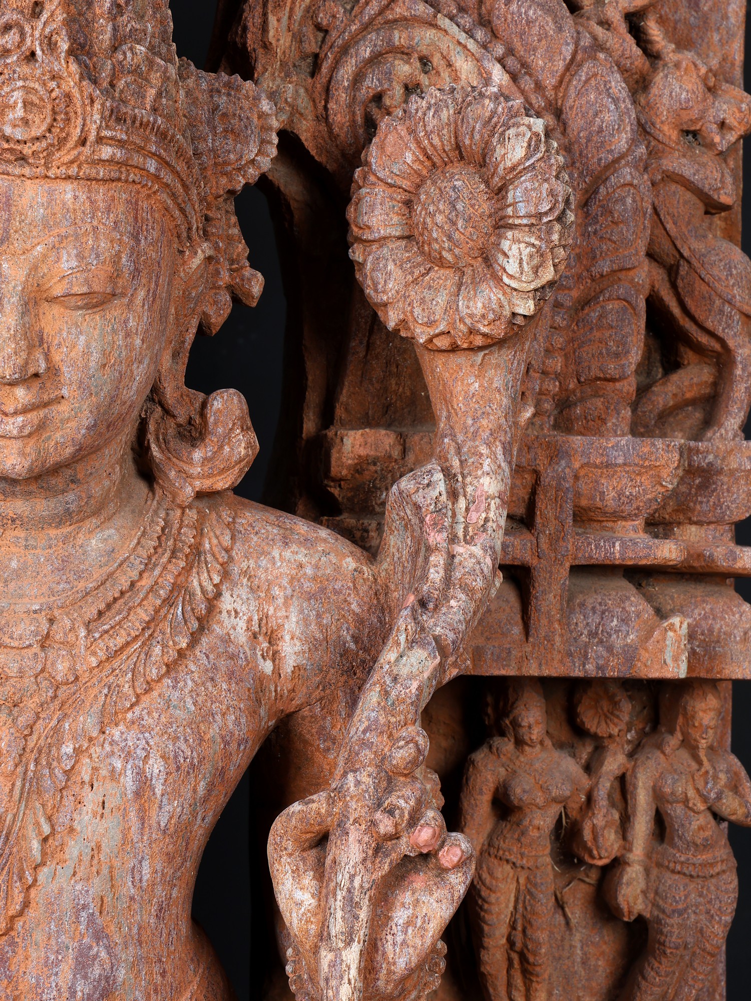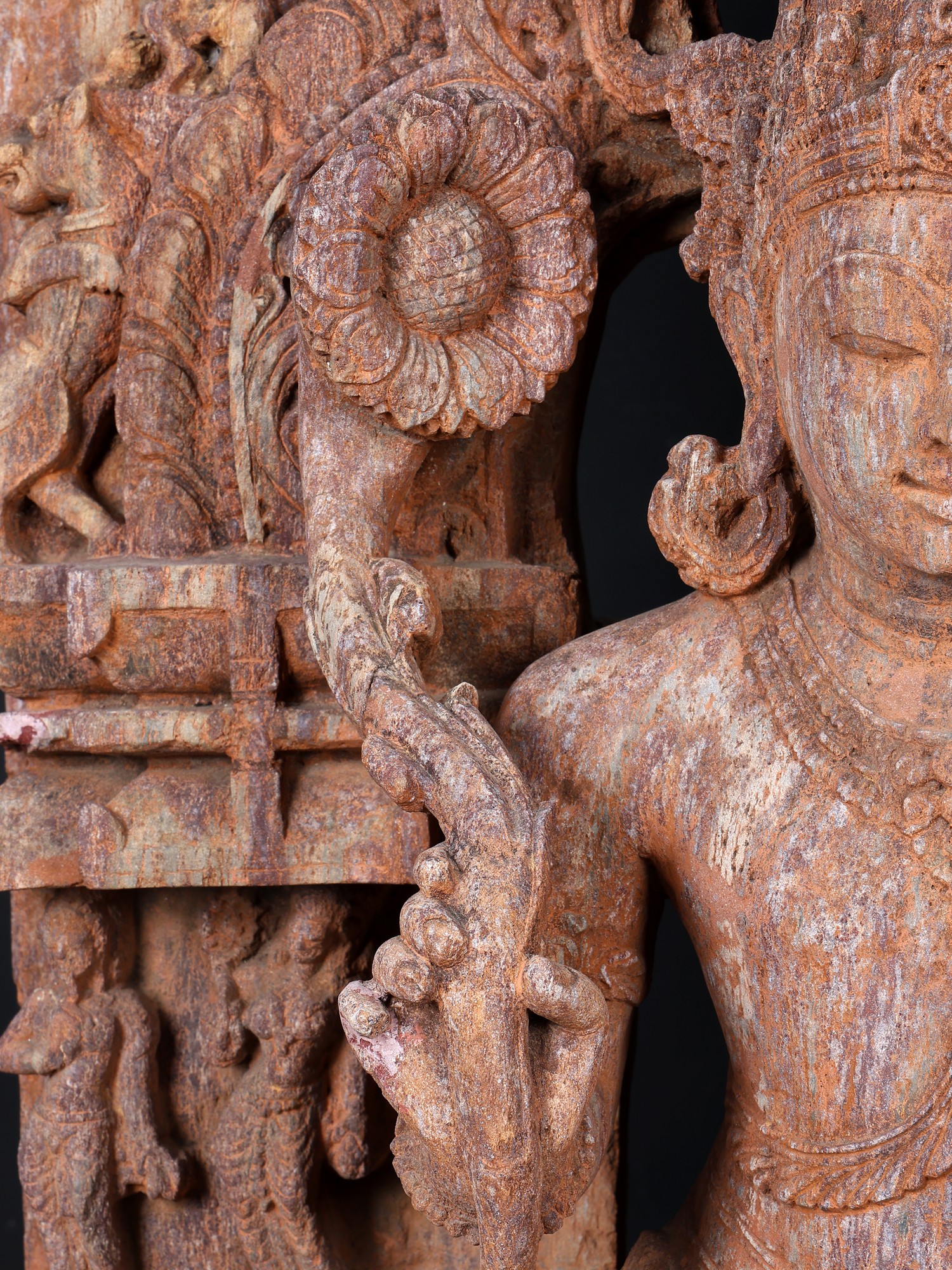 32" Large Standing Goddess Saraswati Playing Veena | Sand Stone Statue from the land of Lord Jagannath, Orissa