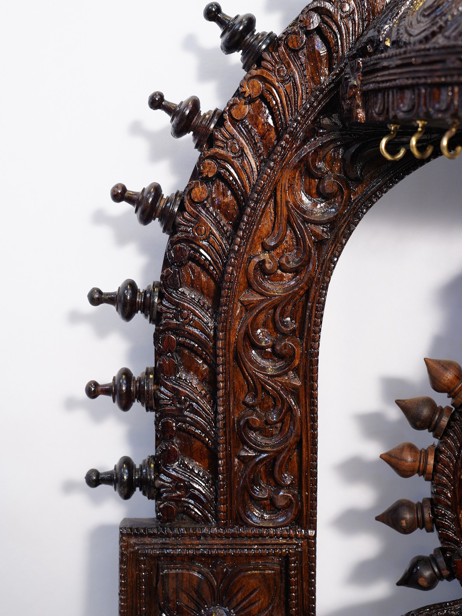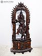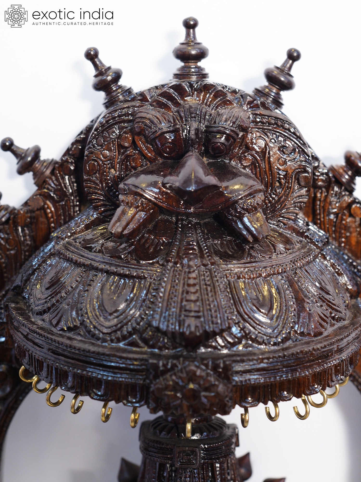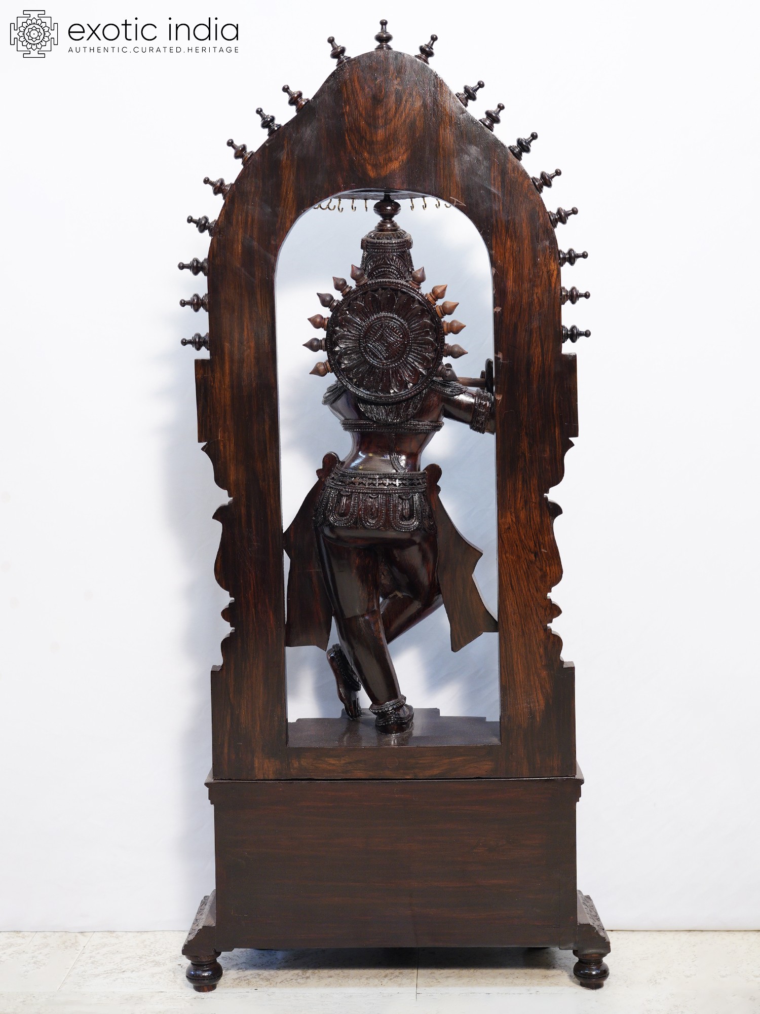 31" Large Fluting Lord Krishna Standing on Kirtimukha Throne | Wood Carved Statue