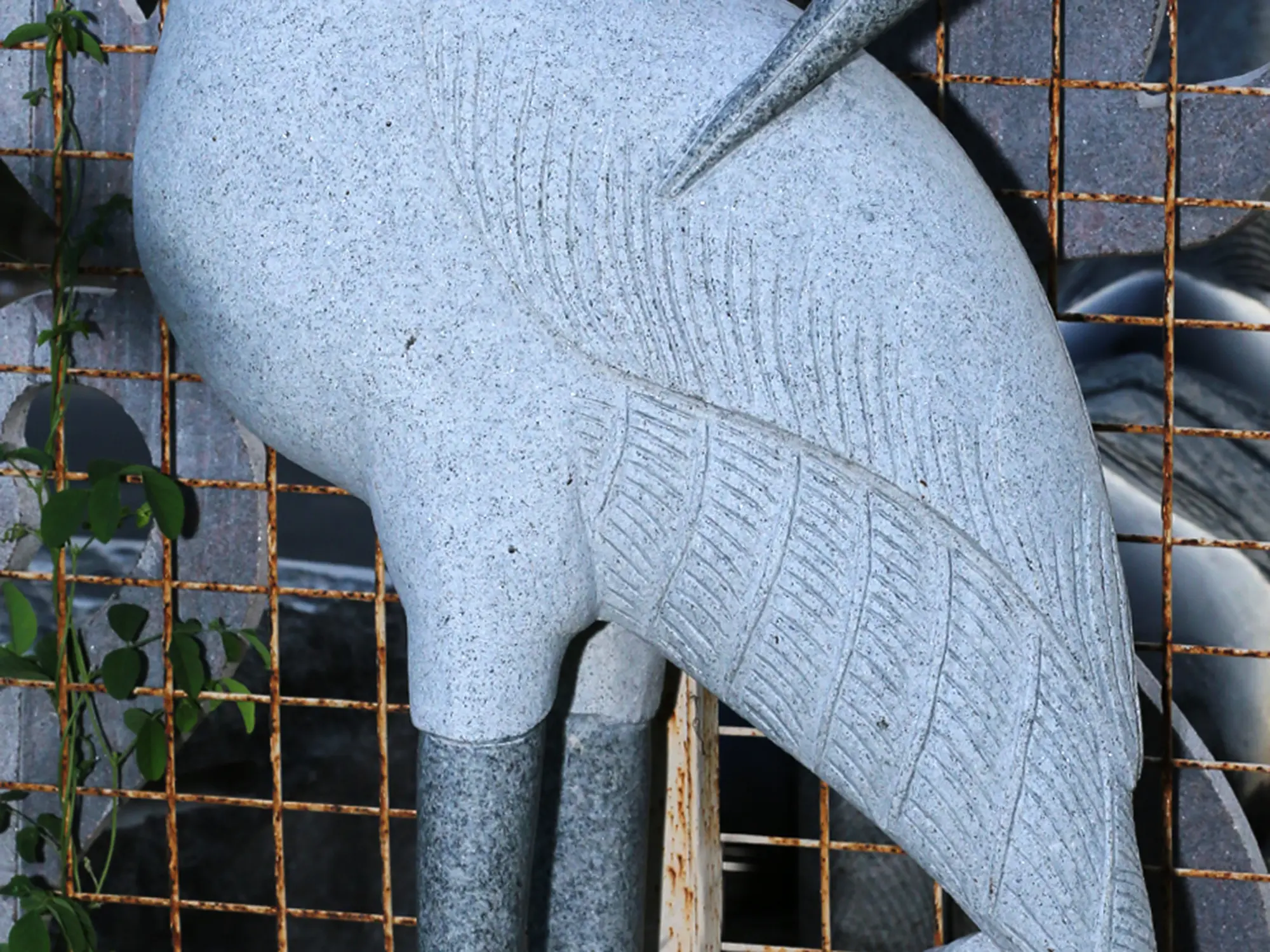 The crane bird, meticulously carved in granite stone, is a magnificent artwork that captures the grace and elegance of this majestic creature. Crafted with intricate details, the statue portrays the crane with its slender body, long neck, and powerful wings, frozen in a moment of serenity. The natural texture of the granite adds depth and character to the sculpture, while its sturdy presence signifies resilience and strength. Symbolically, the crane is associated with longevity, wisdom, and tranquillity in many cultures, making this sculpture a timeless representation of these virtues. It stands as a captivating testament to the beauty of nature and the artistry of stone craftsmanship.