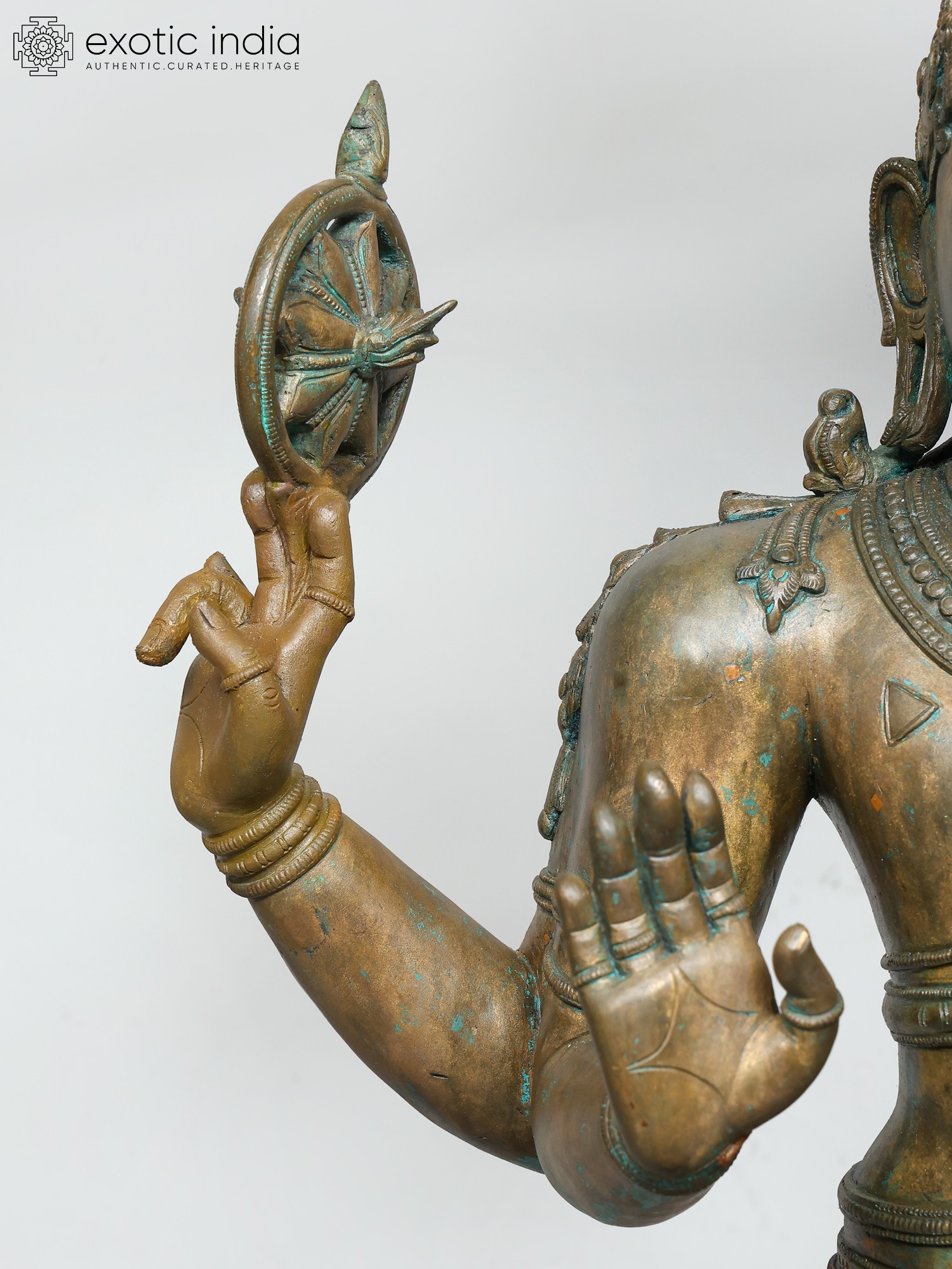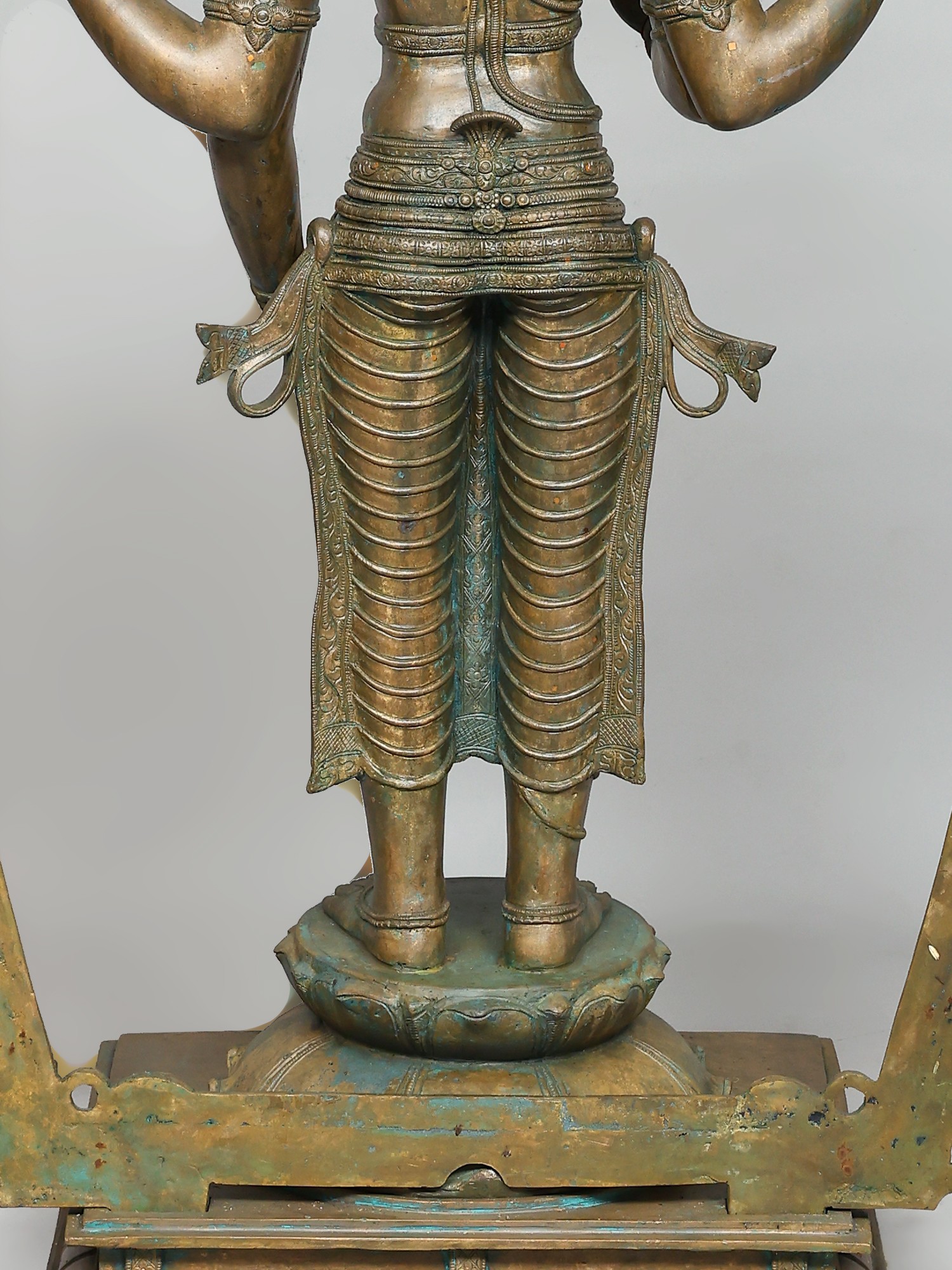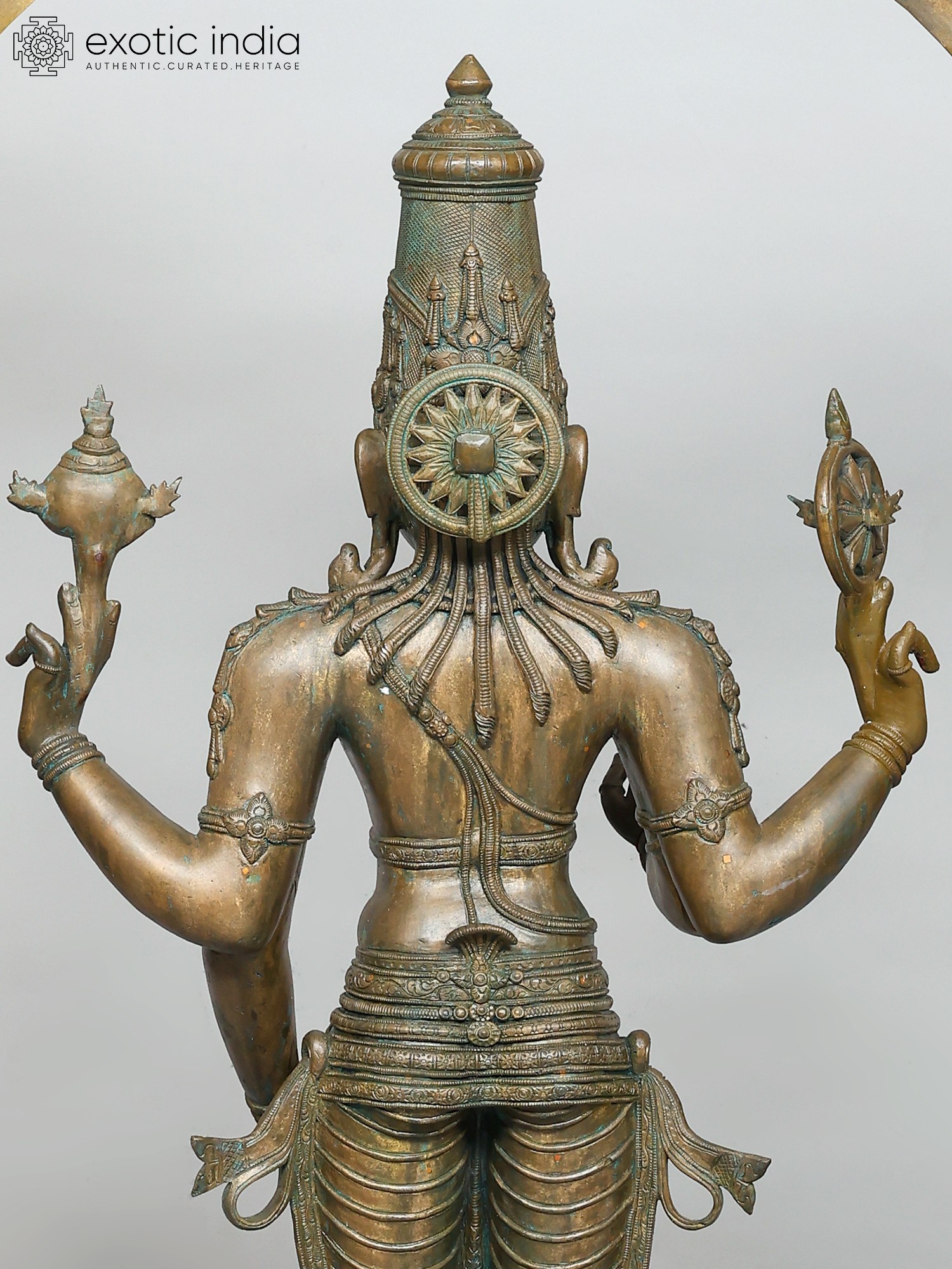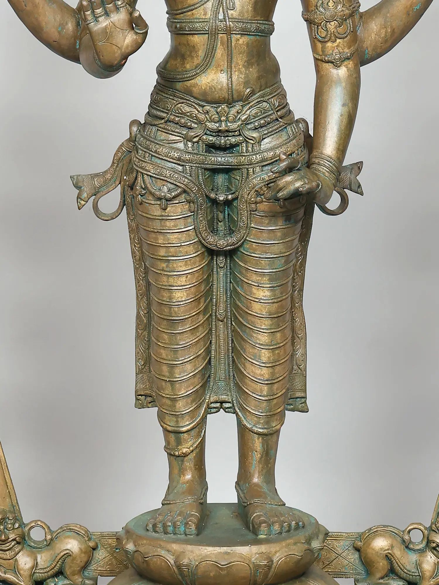 36" Large Four Armed Standing Lord Vishnu (Perumal) | Madhuchista Vidhana (Lost-Wax) | Panchaloha Bronze from Swamimalai