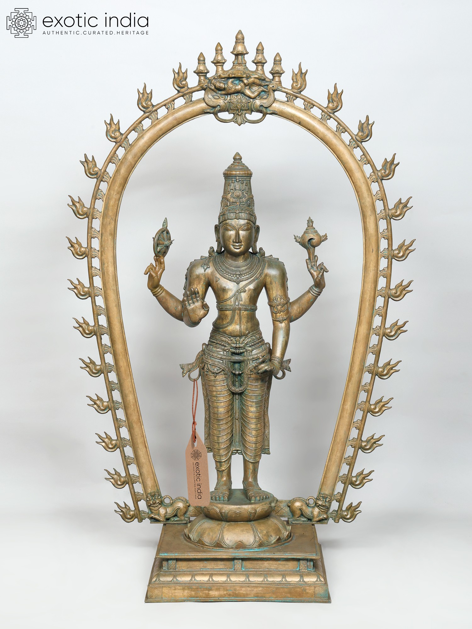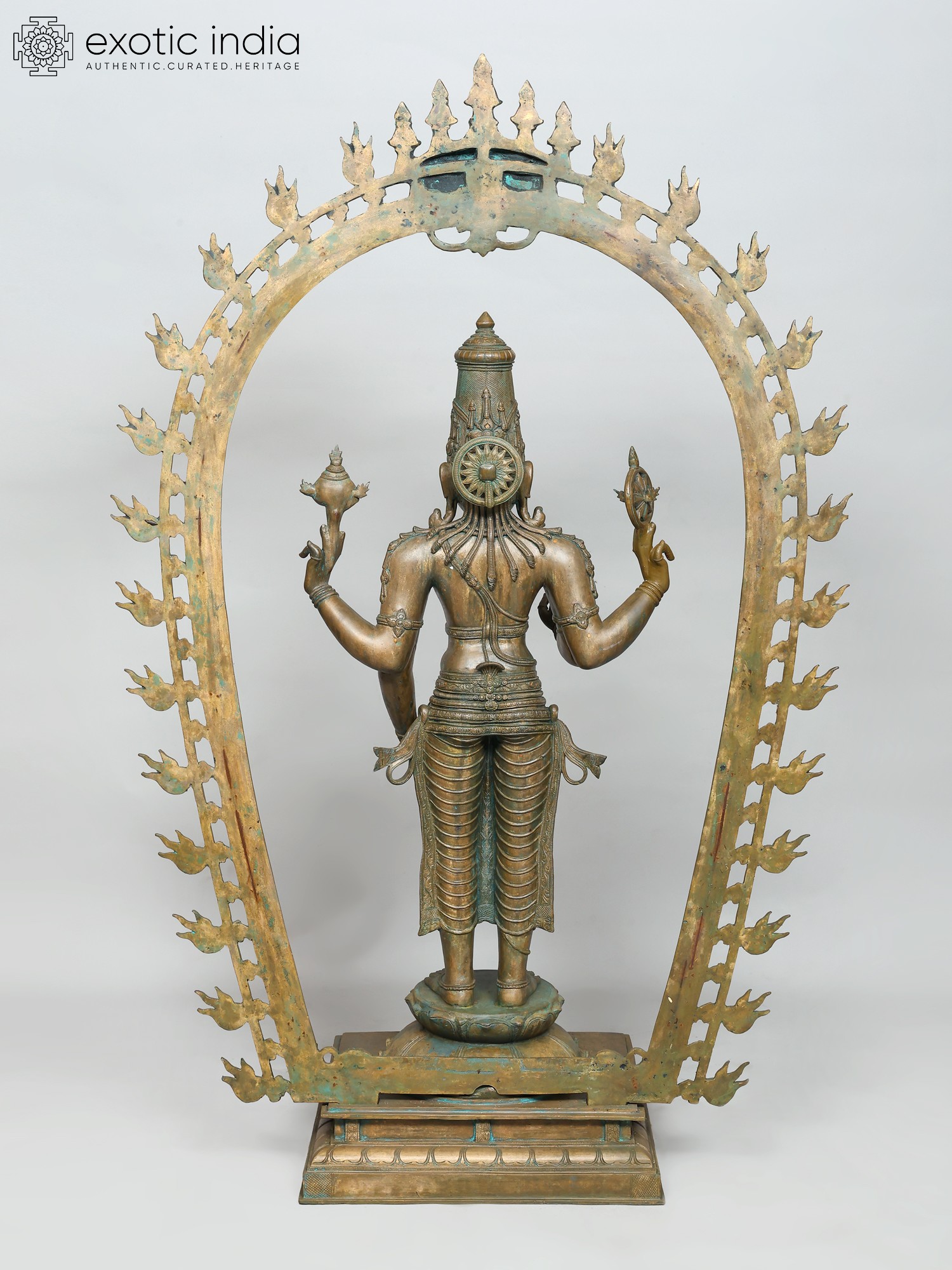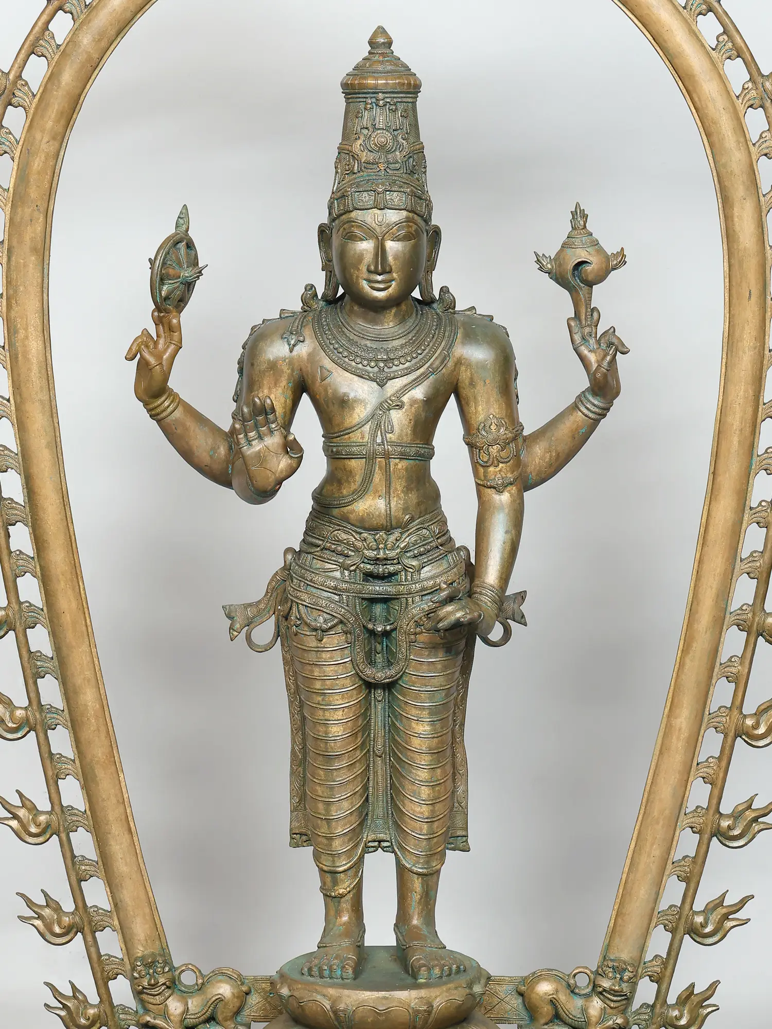 36" Large Four Armed Standing Lord Vishnu (Perumal) | Madhuchista Vidhana (Lost-Wax) | Panchaloha Bronze from Swamimalai