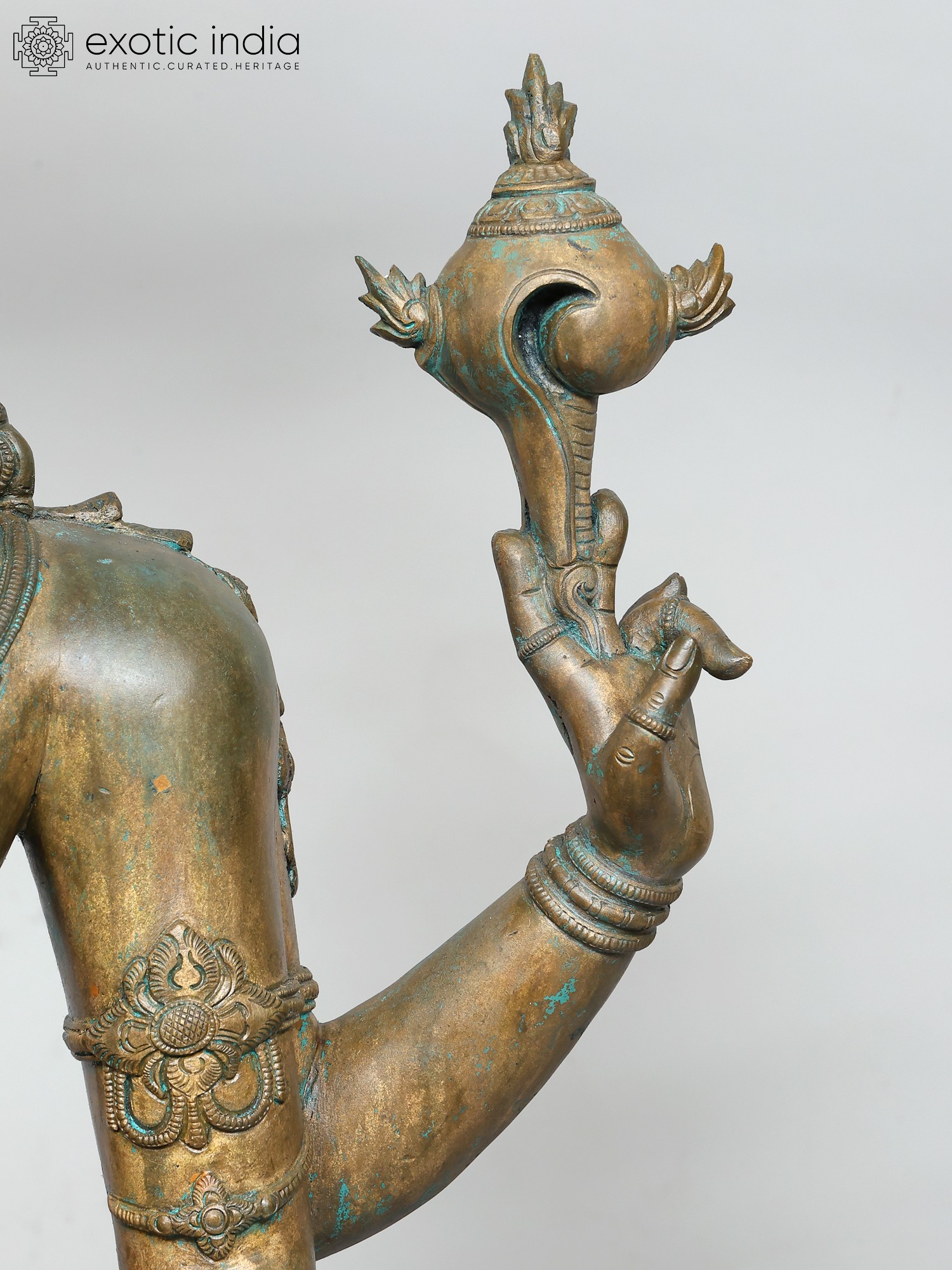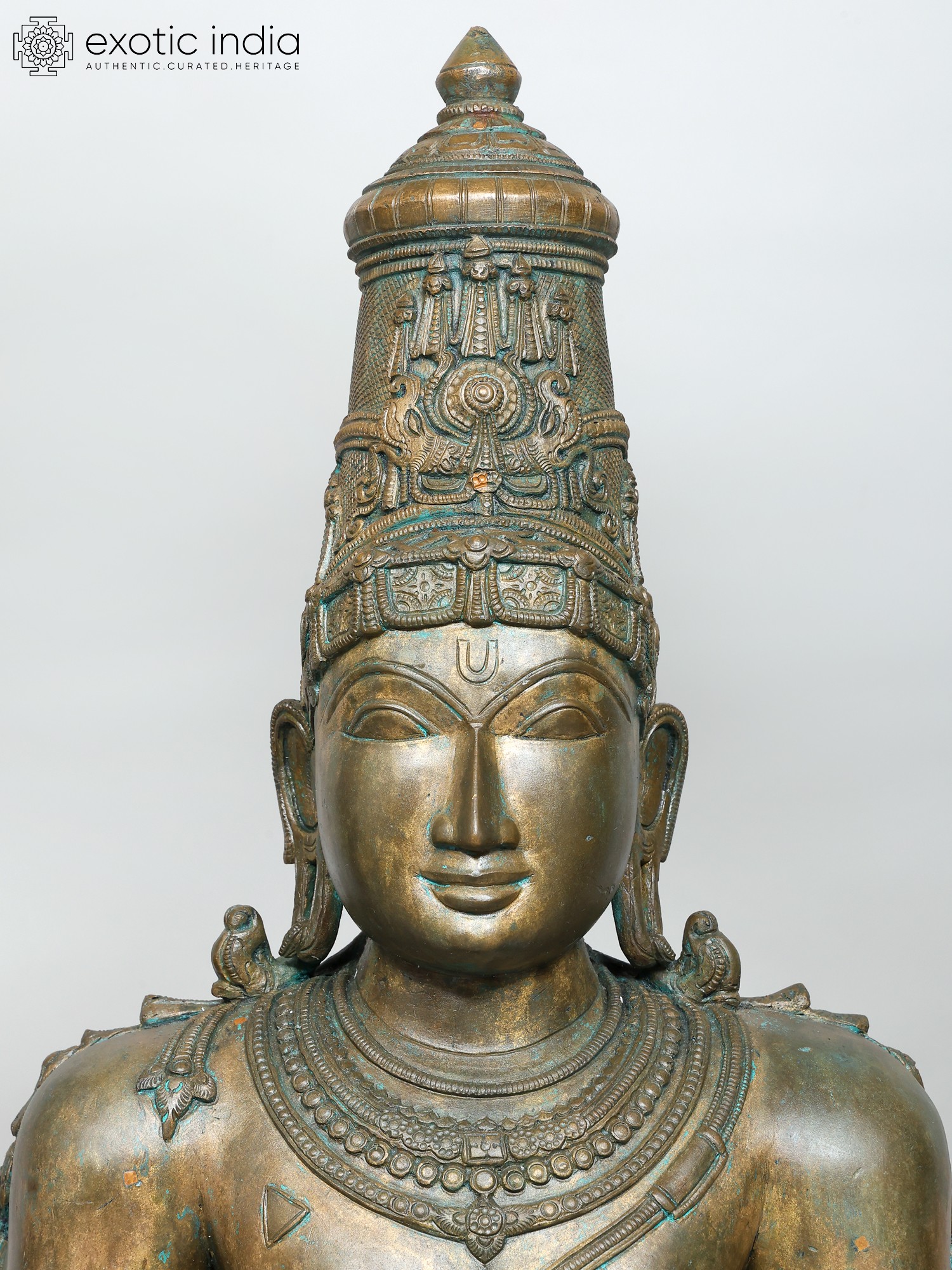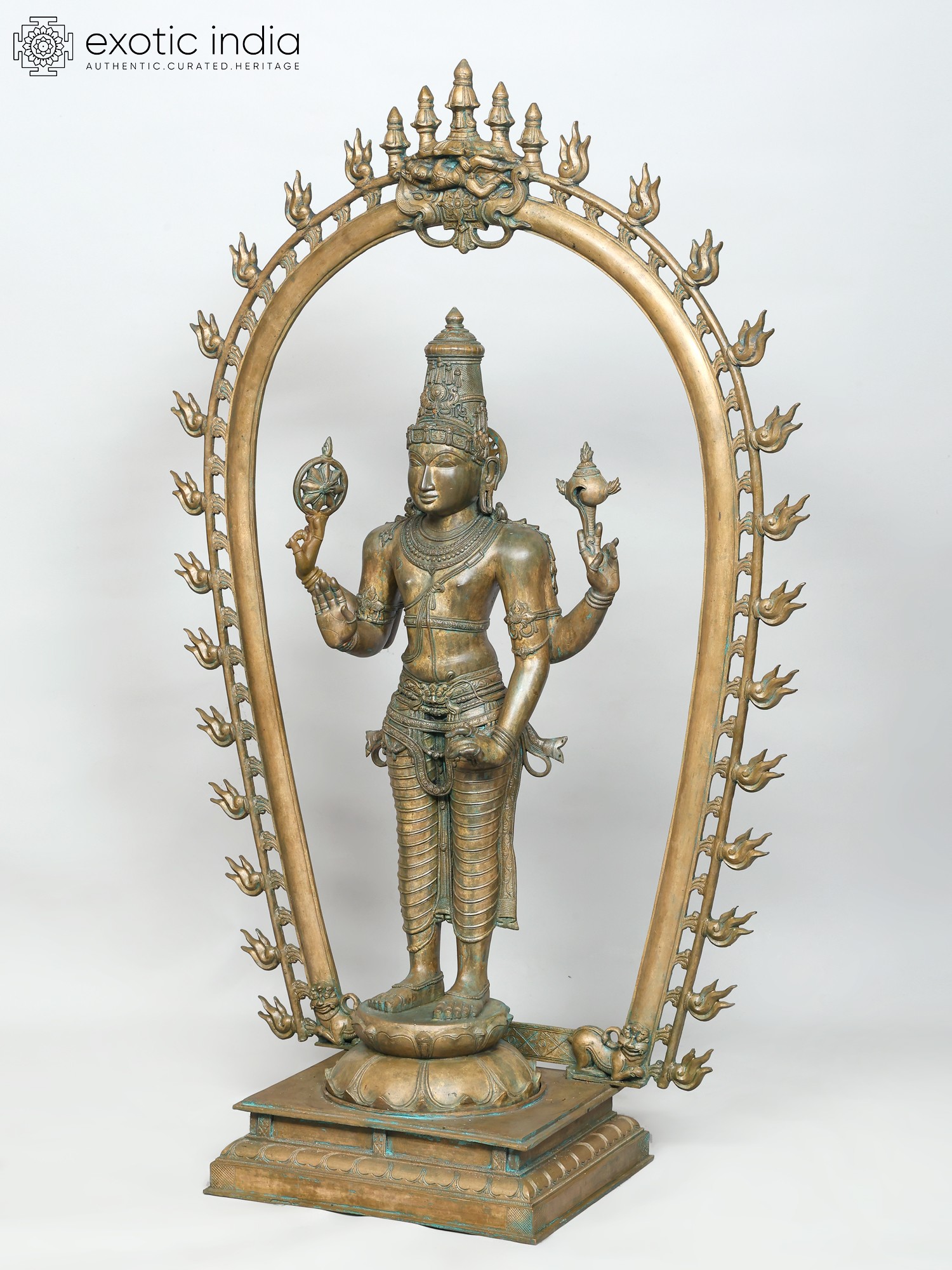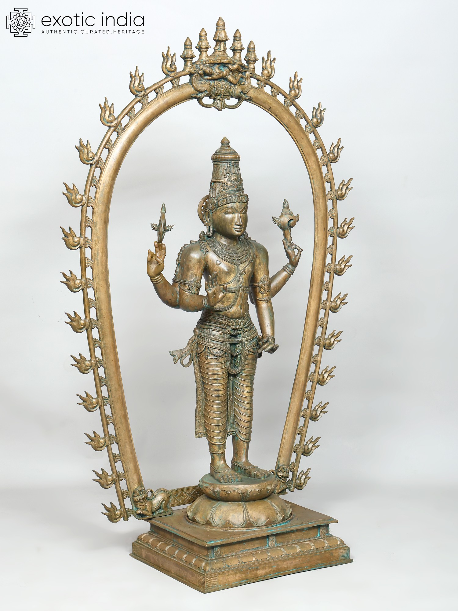 36" Large Four Armed Standing Lord Vishnu (Perumal) | Madhuchista Vidhana (Lost-Wax) | Panchaloha Bronze from Swamimalai