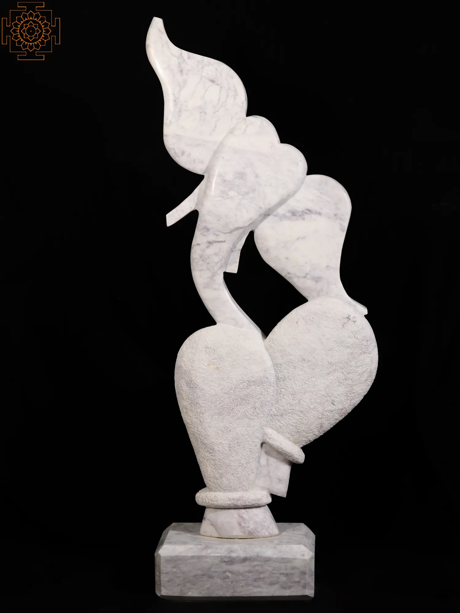 The Dancing Ganesha Idol in Statuario Marble from Italy is a magnificent modern art sculpture that exemplifies the grace and joy of Lord Ganesha. Carved from exquisite Statuario Marble sourced from Italy, this sculpture showcases a unique interpretation of Ganesha with a head featuring big ears and two hips. The large ears symbolize attentiveness and the ability to listen deeply, while the two hips accentuate Ganesha's playful dance form. The smooth and lustrous marble enhances the intricate details and adds a touch of elegance to the sculpture. With its contemporary design and impeccable craftsmanship, this Dancing Ganesha Idol embodies both divine presence and artistic excellence, serving as a mesmerizing centrepiece for any space.