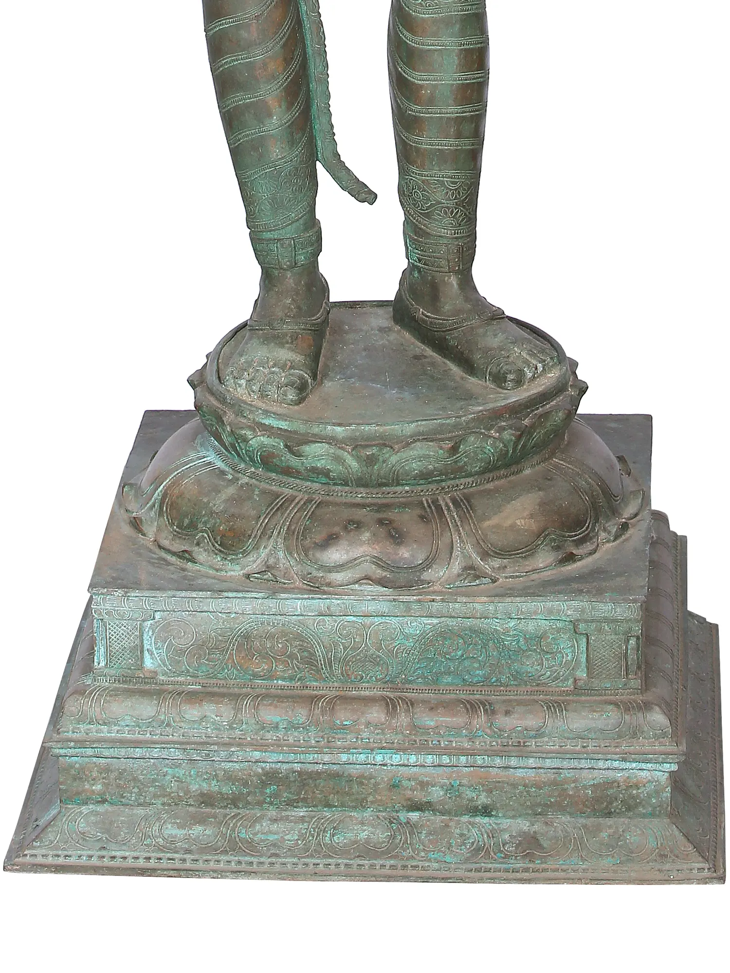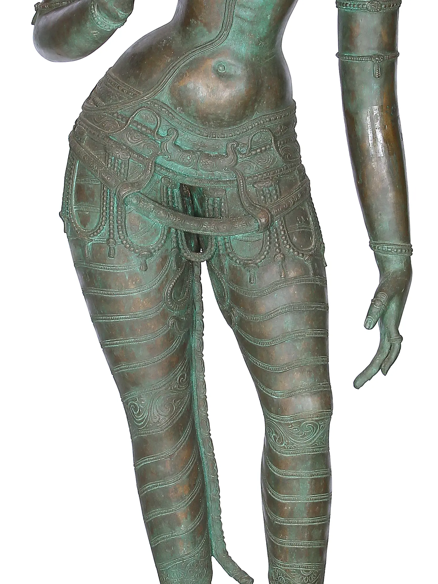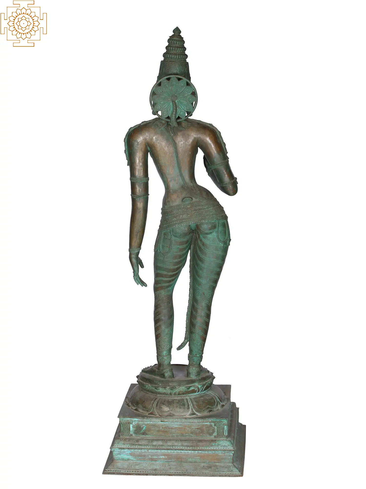 The tall and stately Uma or Parvati. Daughter of the mountains, wife of Lord Shiva. On a multi-tiered plinth She stands, Her delicately shaped feet cradled on the pistil of an upturned lotus. Her ample hips are jutting laterally outwards, accentuating the fecund shape of the feminine form.