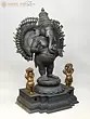 Exotic India has a vast collection of not just the four-armed Ganesha, but also the sixteen-armed and the dancing Ganesha. There are many sides to His personality, each to bring out a different facet of the devotee's spiritual makeup. The son of Ma Durga, Ganeshaji is a ferocious warrior and boasts of invincible skill that conquers the adharmi. With Shiv ji His father, He breaks into a divine dance routine that becomes His child's limbs and demeanour. An important aspect of Ganesha ji is the trident mark on His forehead, indicative of His father in Whose iconography the trident is indispensable. In some portrayals, He sits with His plump form hunched up over the Mahabharata, the very picture of singular focus.