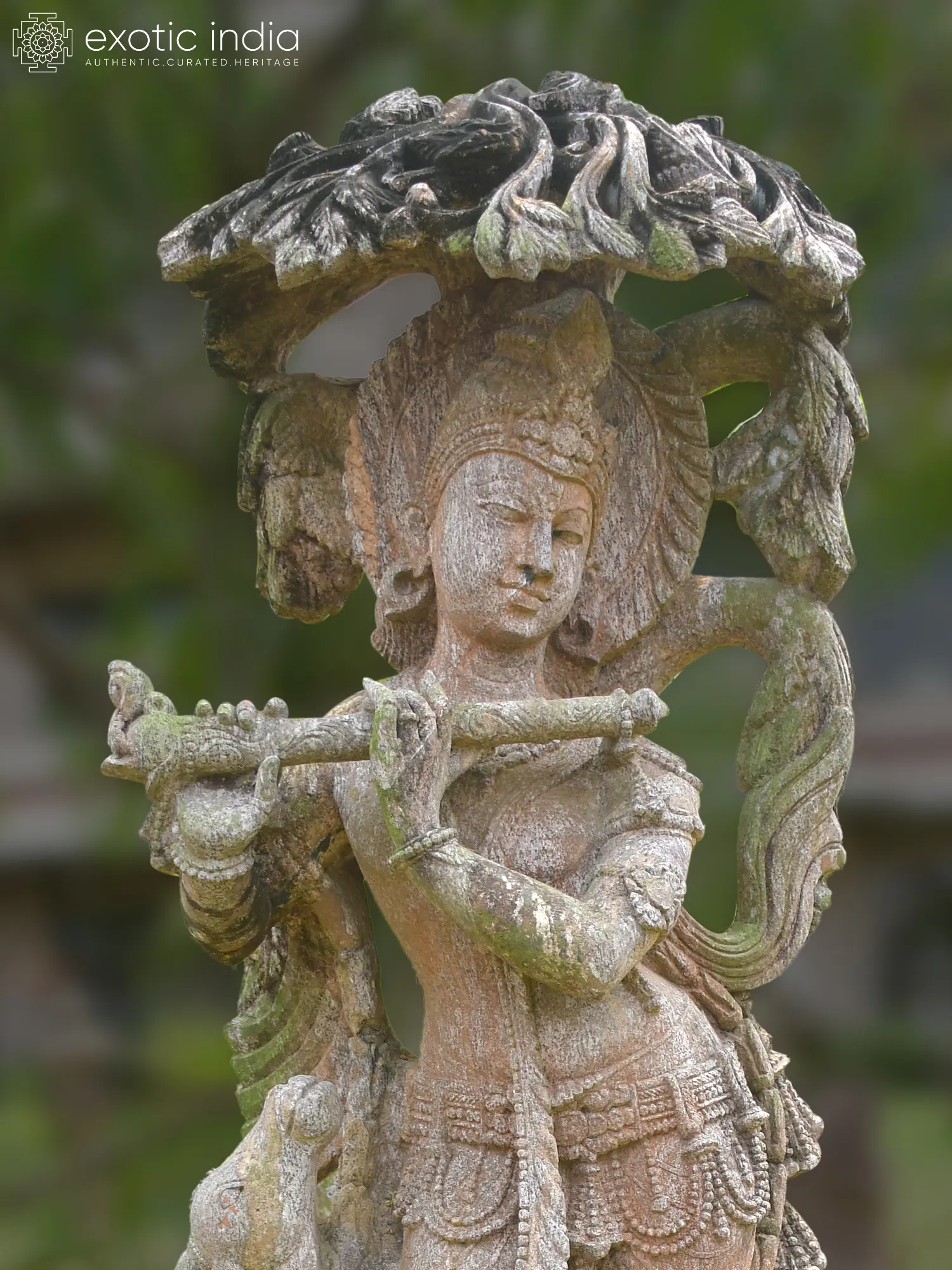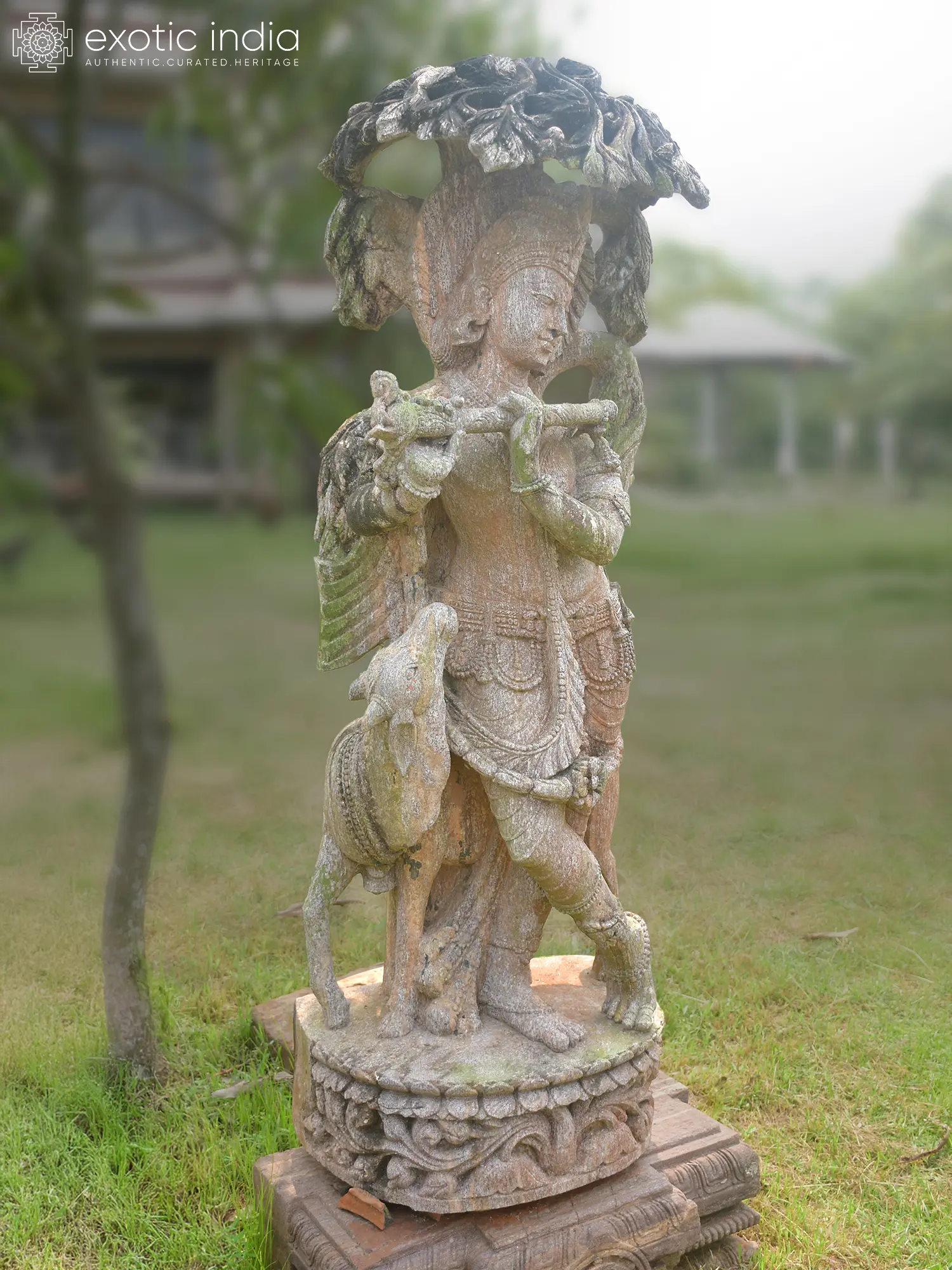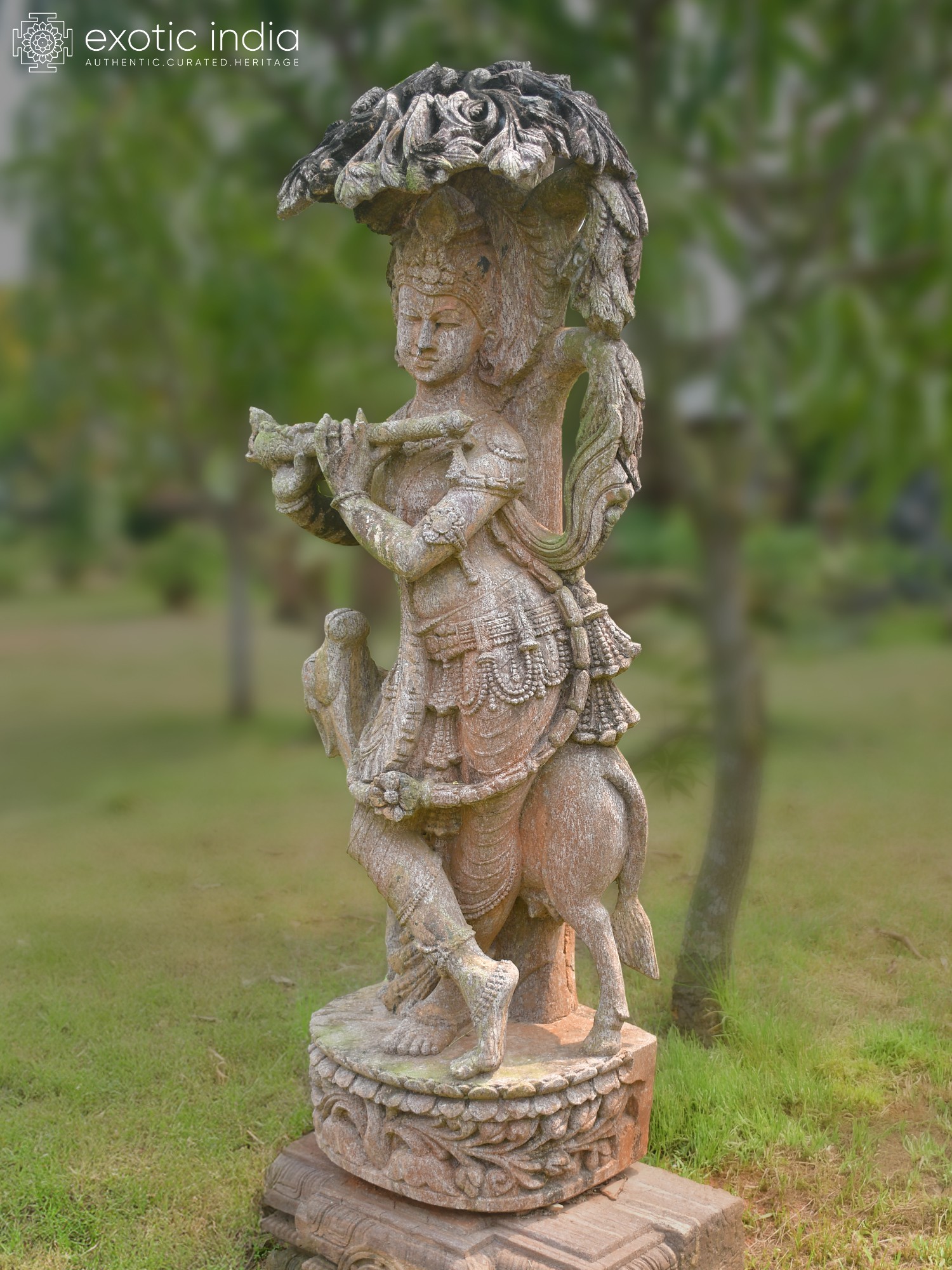 75" Lord Krishna Playing Flute | Sandstone Statue | Exquisite Handmade Indian Art