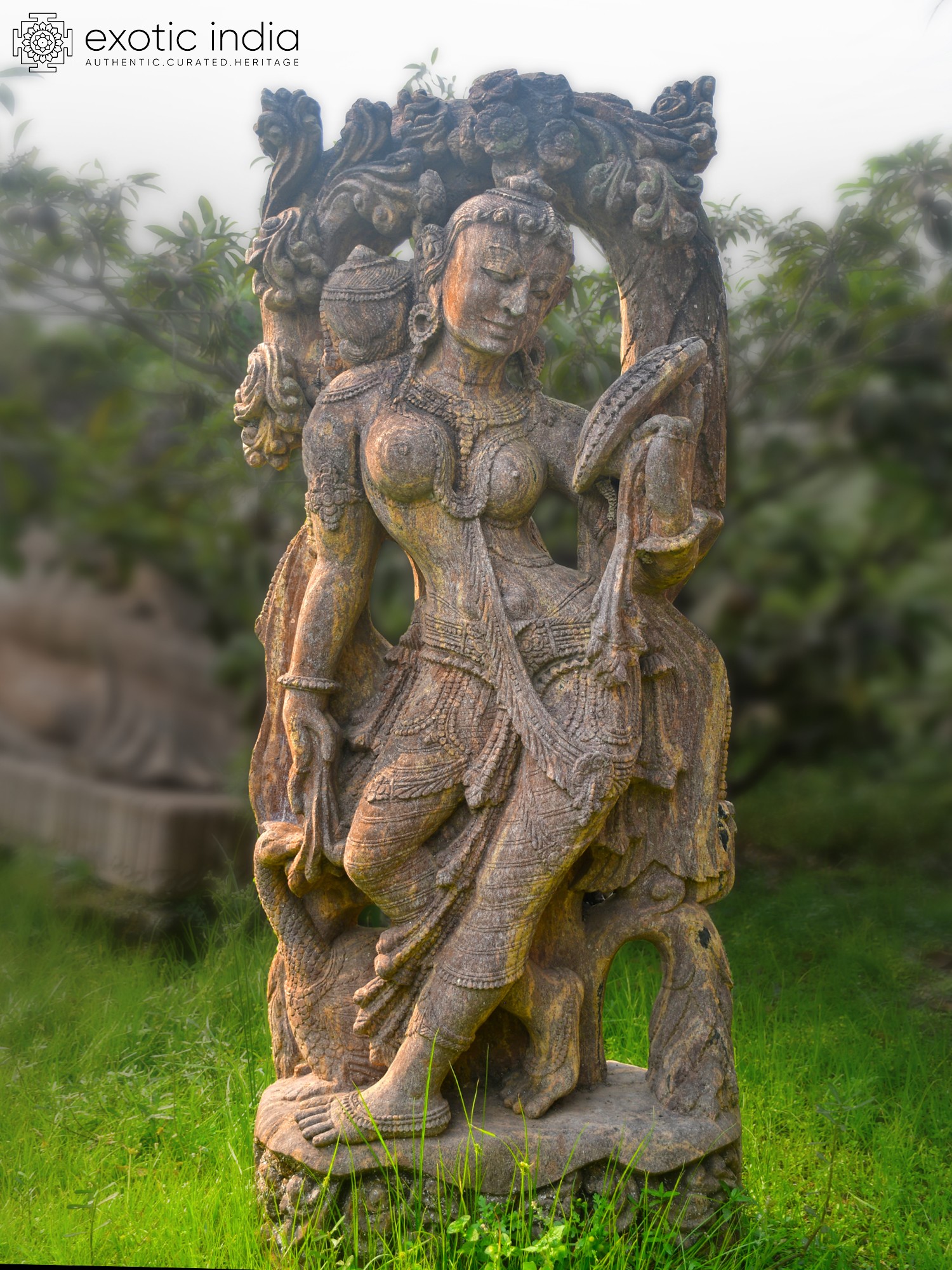 Carved from the heart of Orissa sandstone, this creation is a testament to generations of artisanal mastery. Each detail, from the delicate draping of fabric to the subtle contours of the figure, is meticulously shaped by skilled hands. The inherent quality of the sandstone, known for its rich texture and enduring nature, ensures that this piece is not merely decorative but a durable work of art, meant to be cherished.