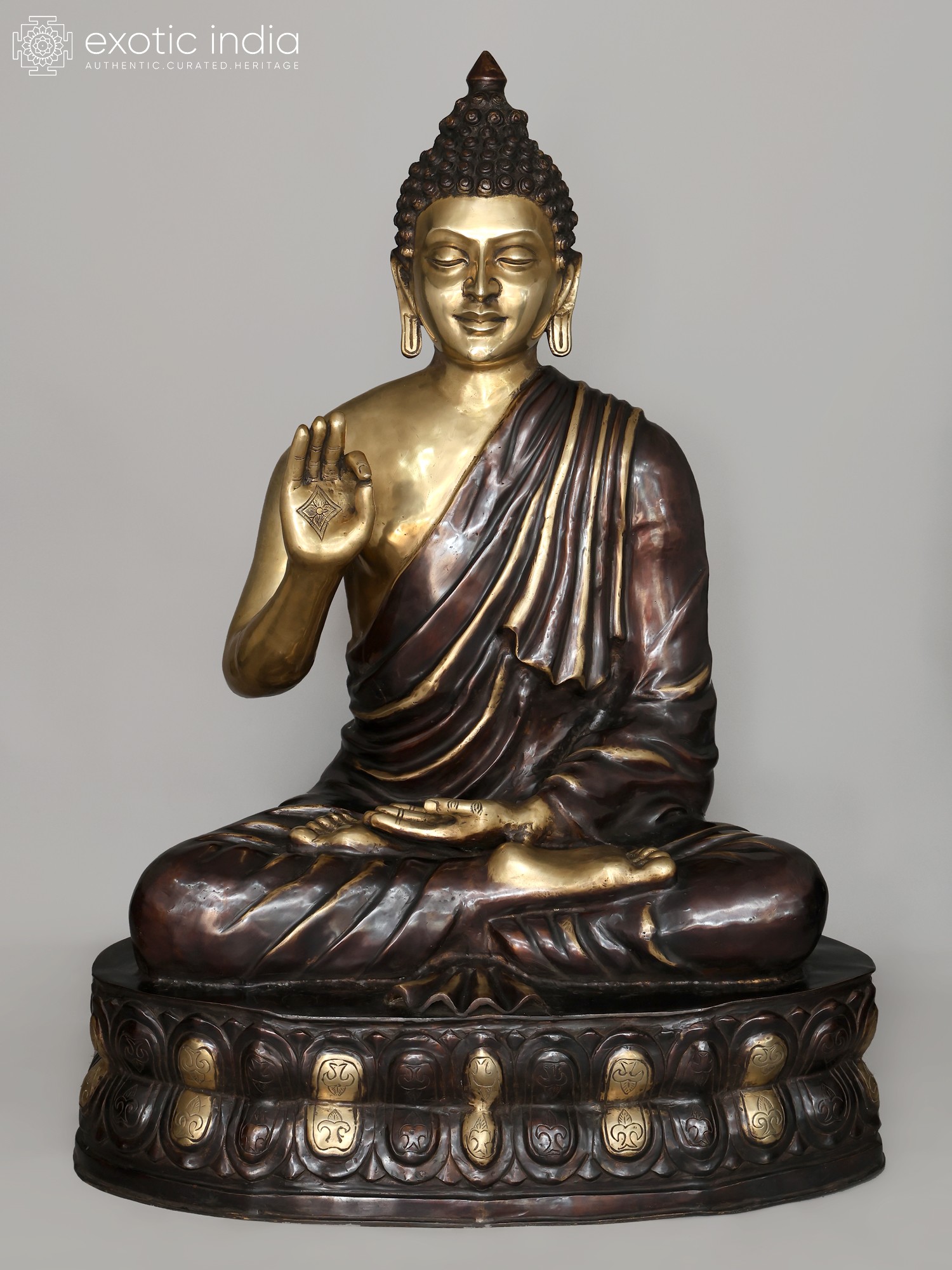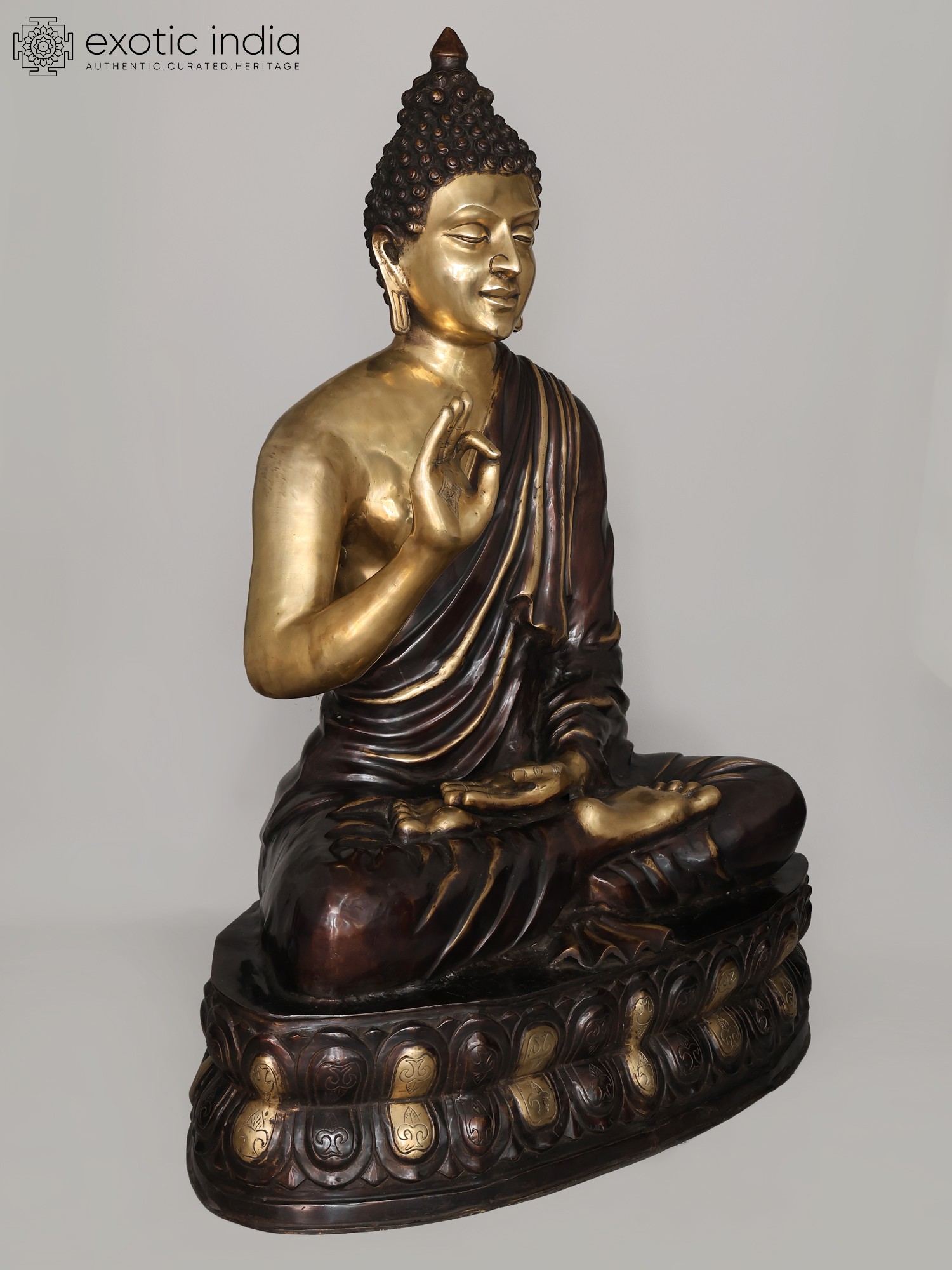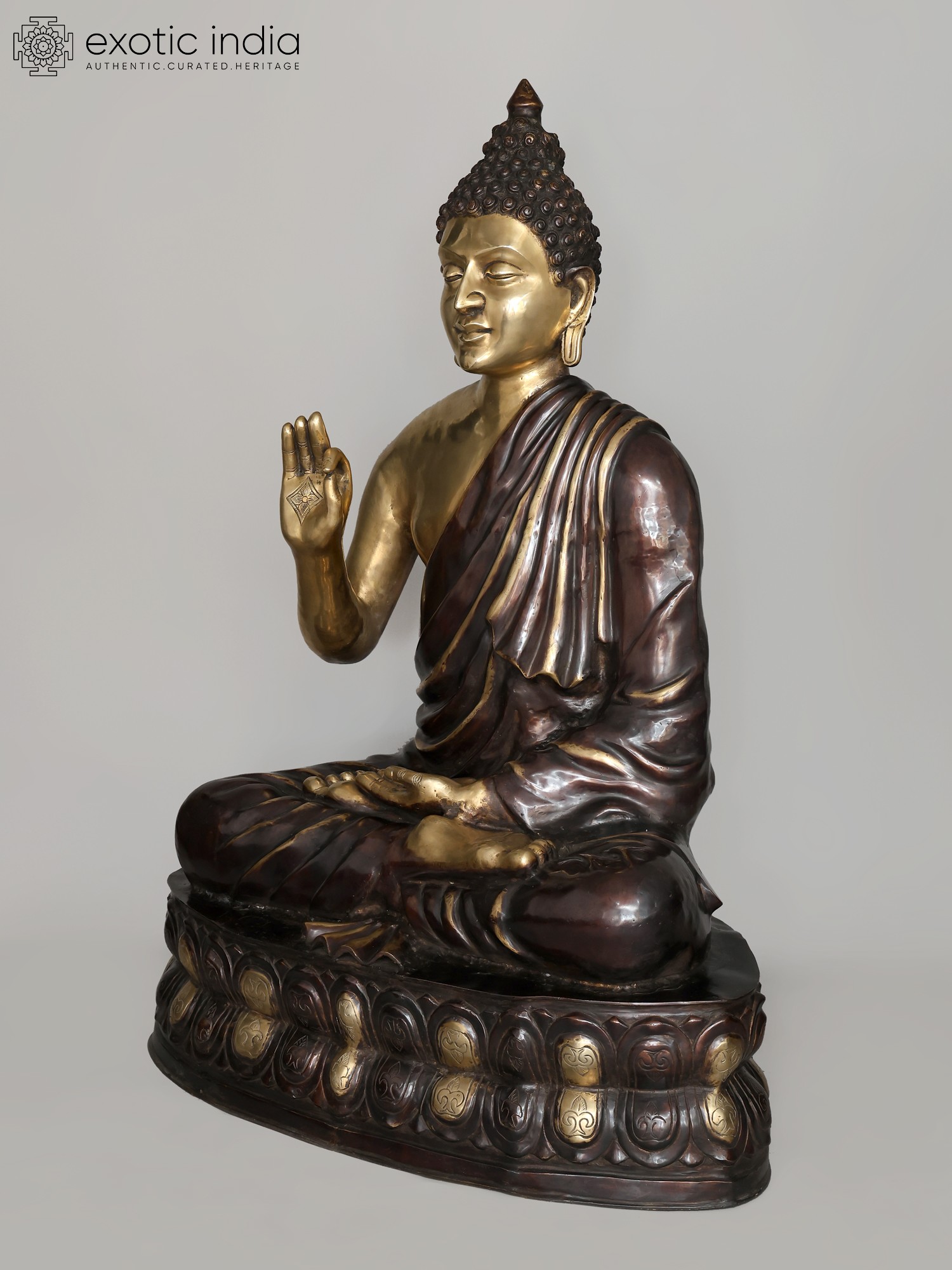 Buddha is the foremost Tibetan deity who has achieved enlightenment and guides people to walk on the same path. This magnified Buddha statue sits in his dhyana in Padmasana posture with the left hand resting on his lap, facing upwards and right hand is in vitarka mudra forming the ‘wheel of law’ of intellectual discussions and arguments.