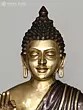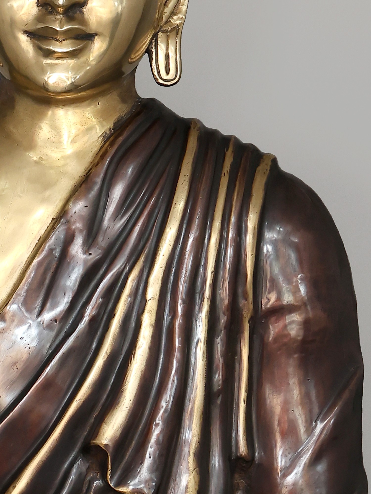 The delicate glow on this statue makes it even more devotional. A striking likeness can be found in its composure of countenance and its extreme largeness. The striking yellow-gold color acts as a major contribution to the holiness and winsomeness of this sculpture.