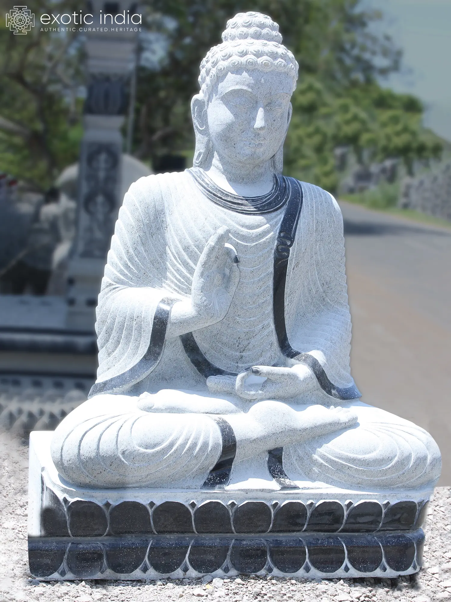 This statue of Lord Buddha is a representation of peace and enlightenment, crafted from durable black granite stone.