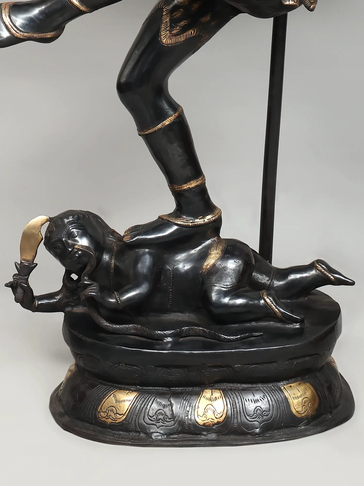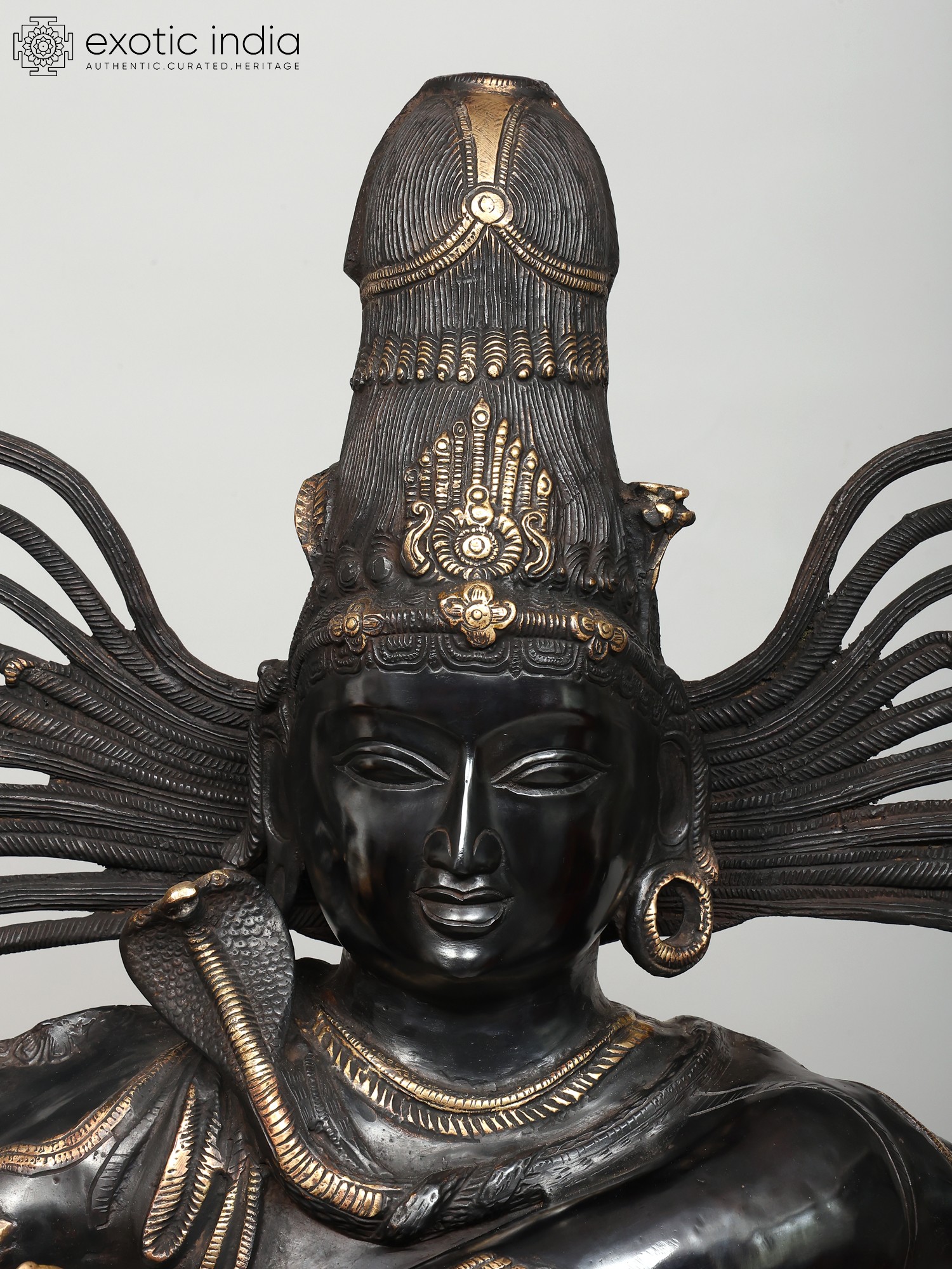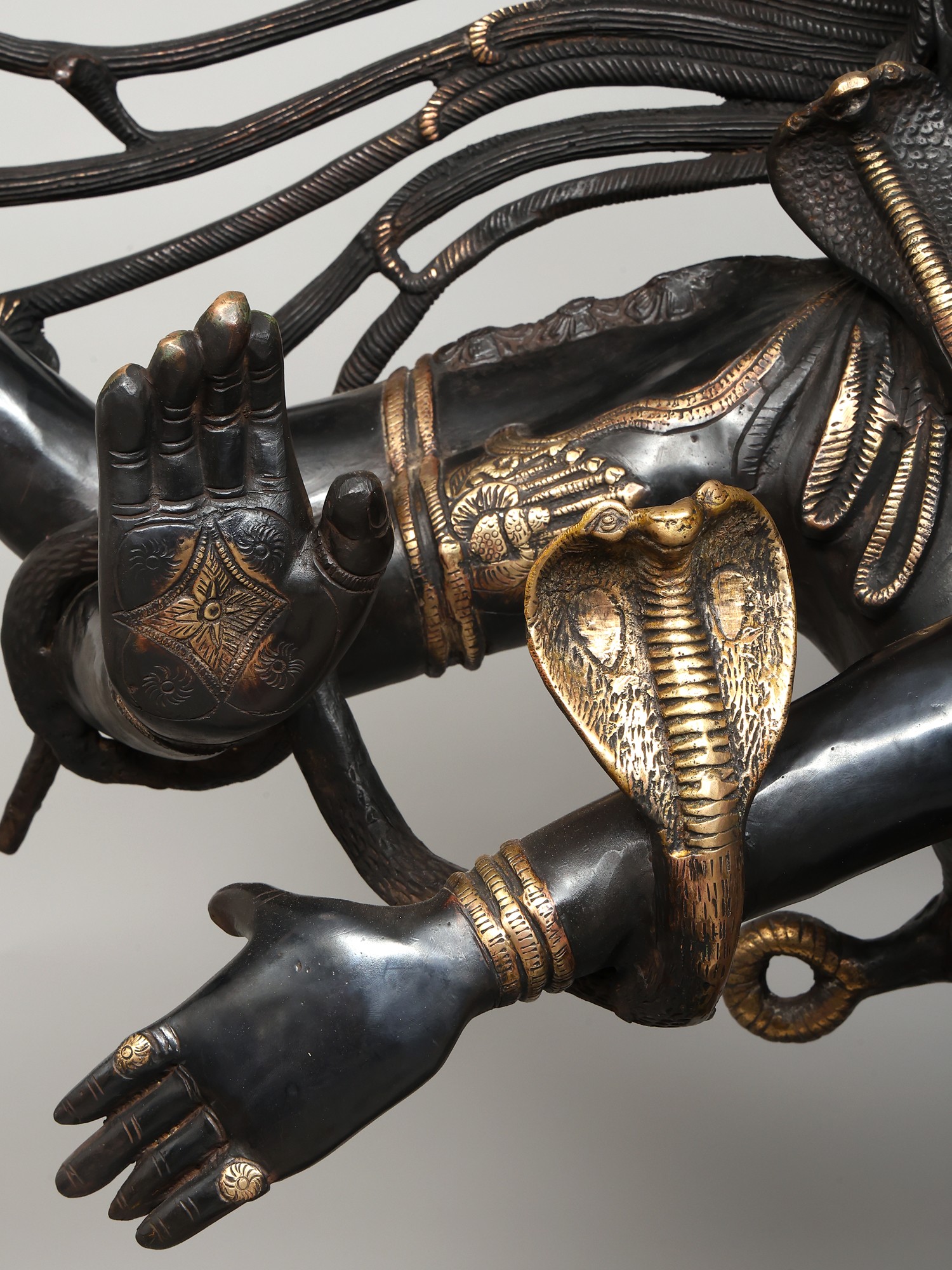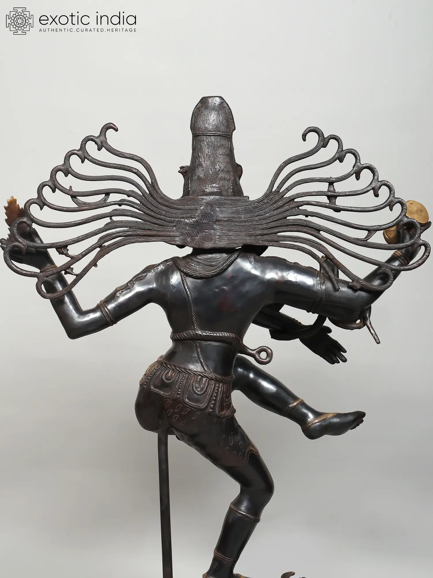 In the cosmic dance of creation and destruction, Nataraja Shiva reigns, eternally in motion. This handmade brass statue depicts Shiva, the Lord of the Dance, captivating the universe with his celestial Tandava. The flames surrounding him symbolize the cyclical nature of existence, while his powerful gestures represent the cosmic rhythm. As he dances, he liberates souls from illusion and ignorance, guiding them toward enlightenment. This masterpiece works like a reflection of life's changes and embraces the flow of time. The spirit of Nataraja Shiva ignites your soul and encourages you to dance fearlessly through the ever-changing symphony of life.