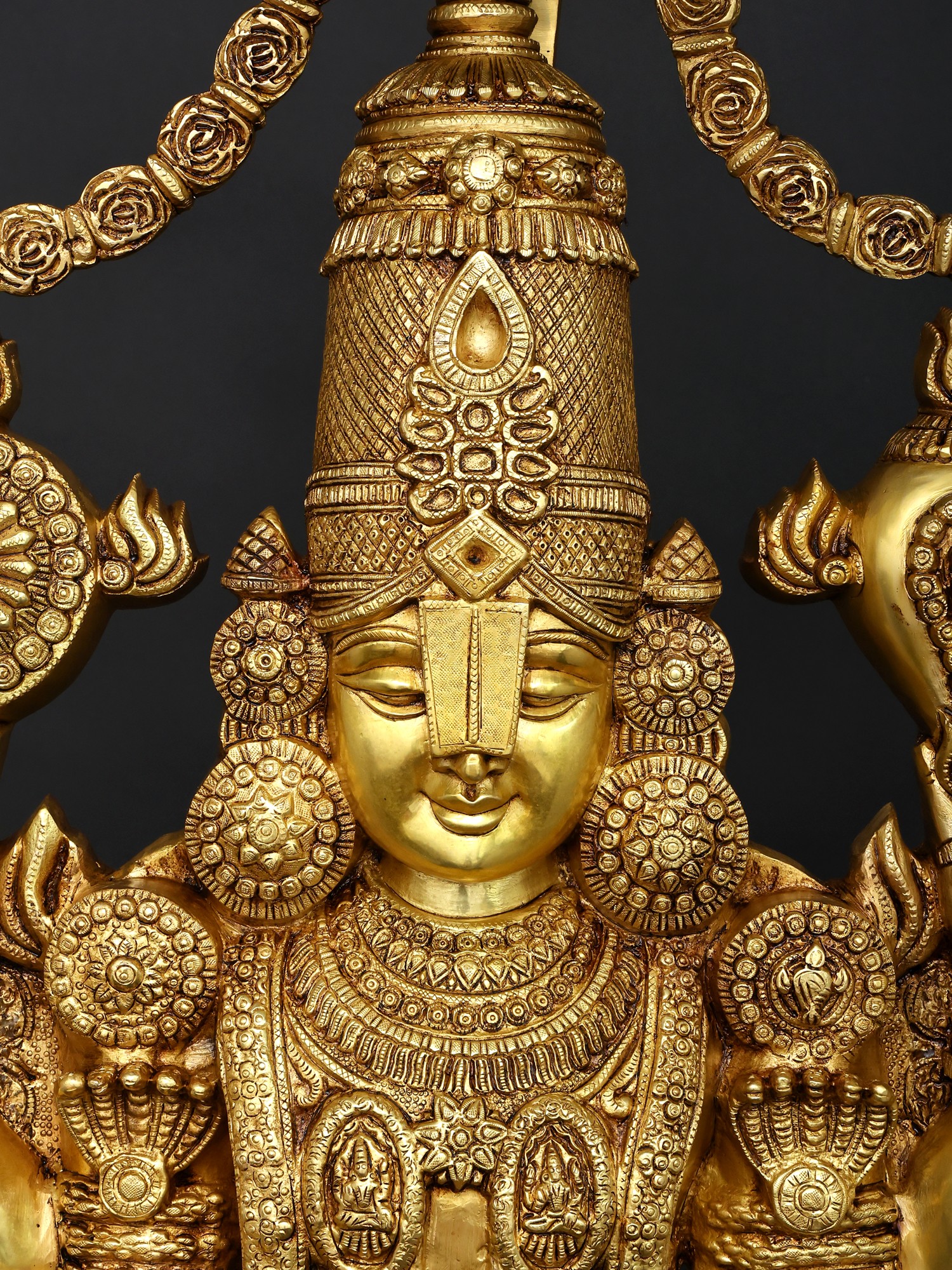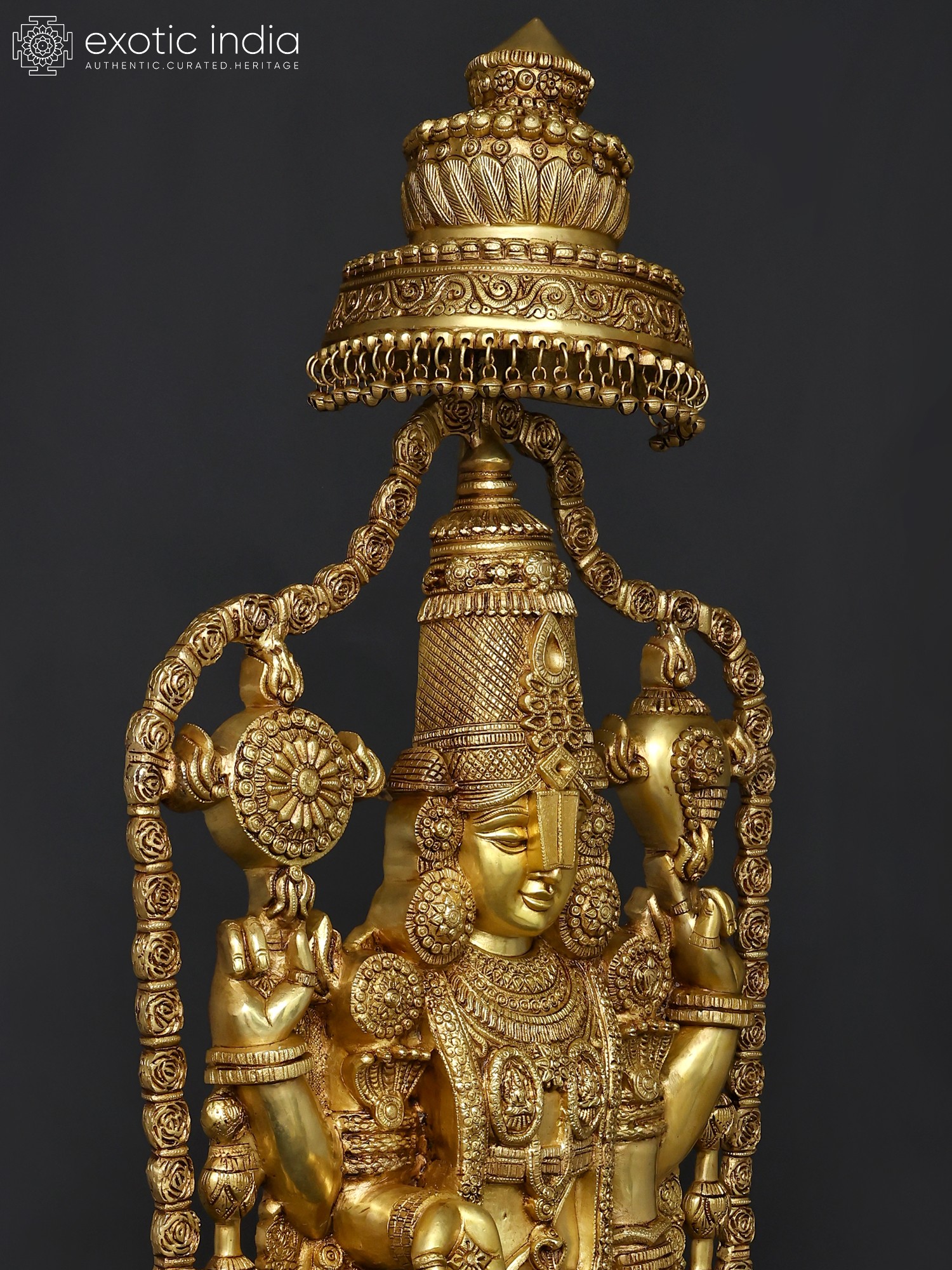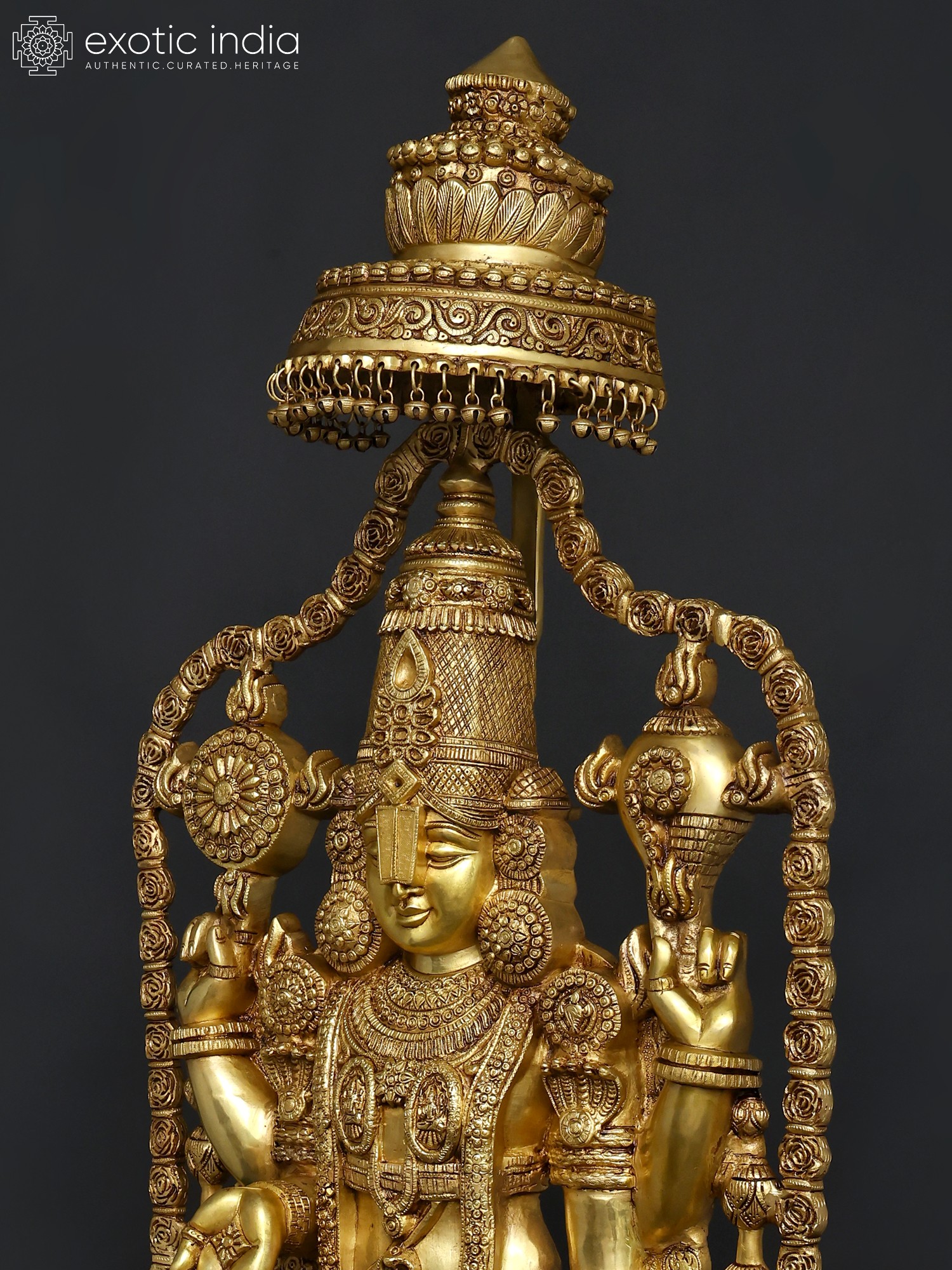 57" Large Size Lord Tirupati Balaji (Venkateshvara) Standing on Lotus | Brass Statue