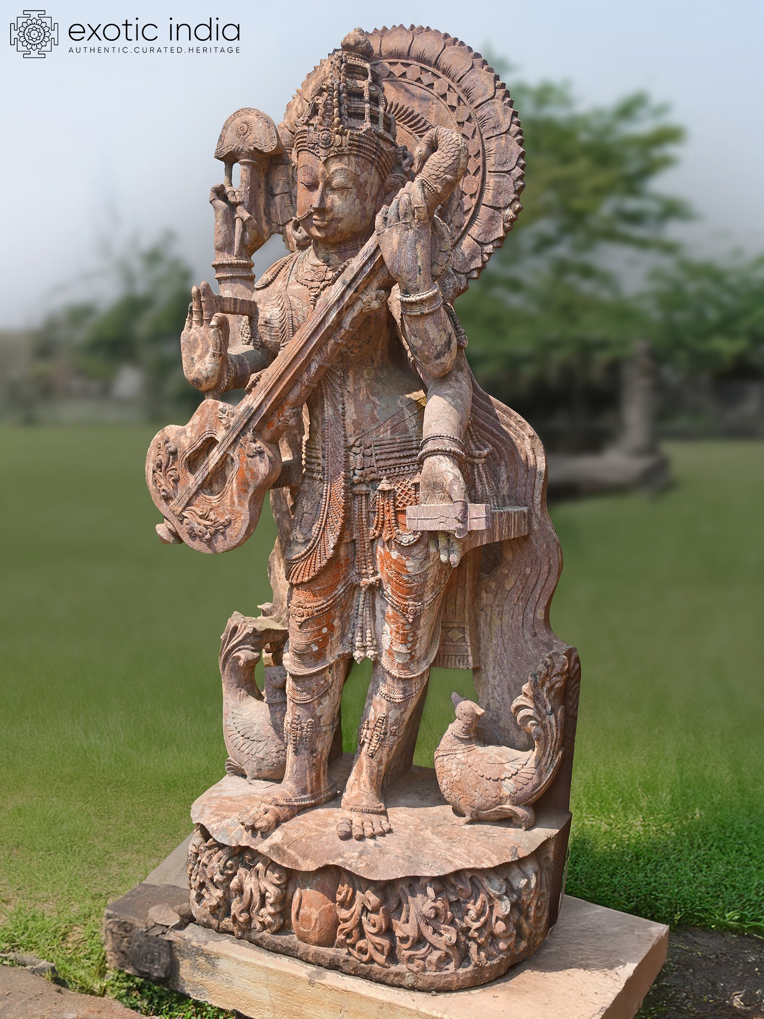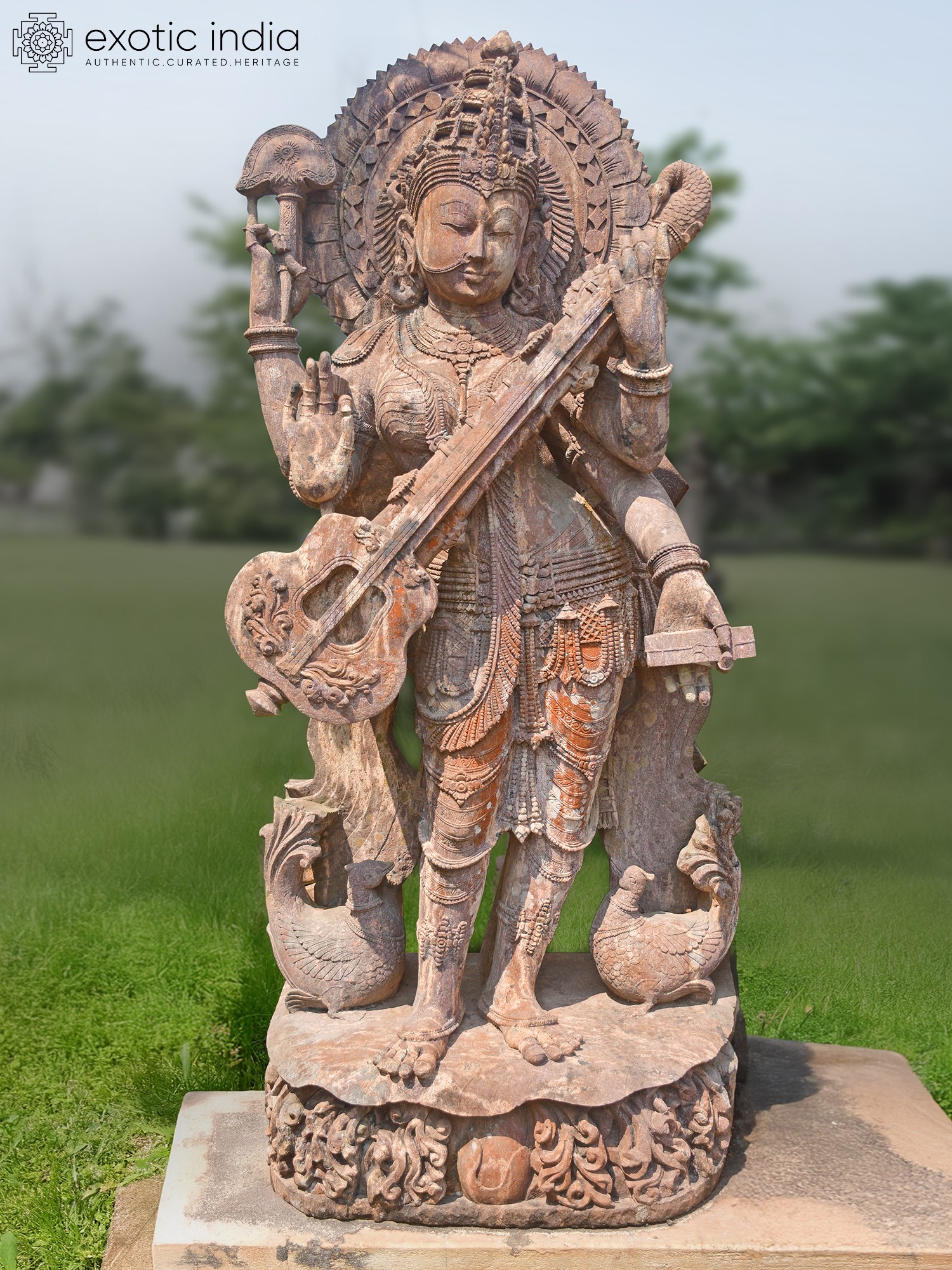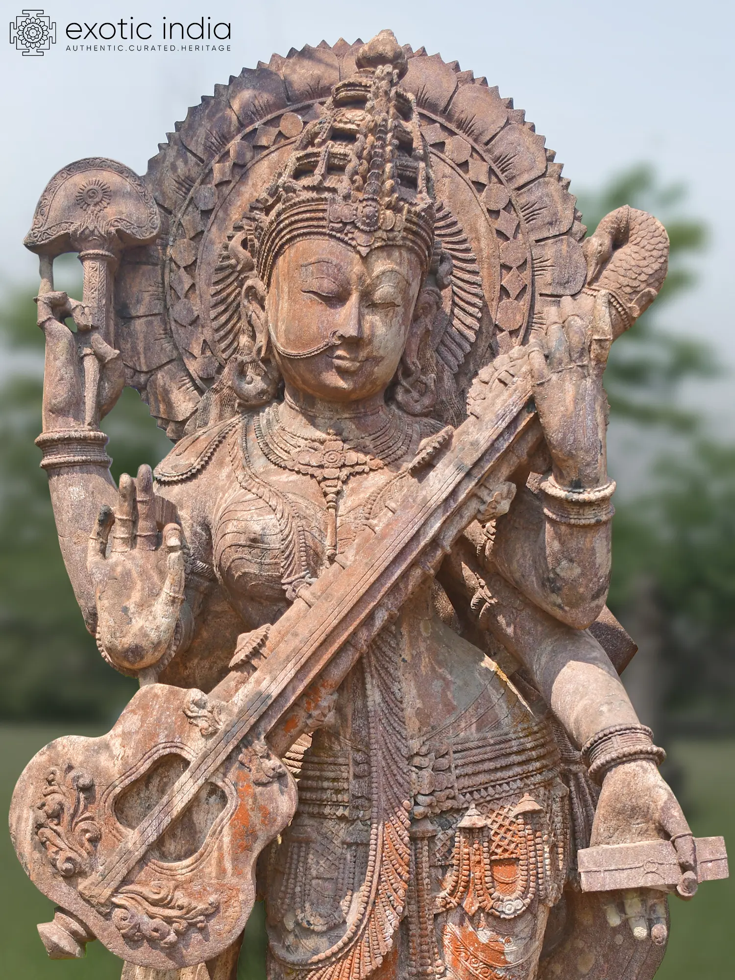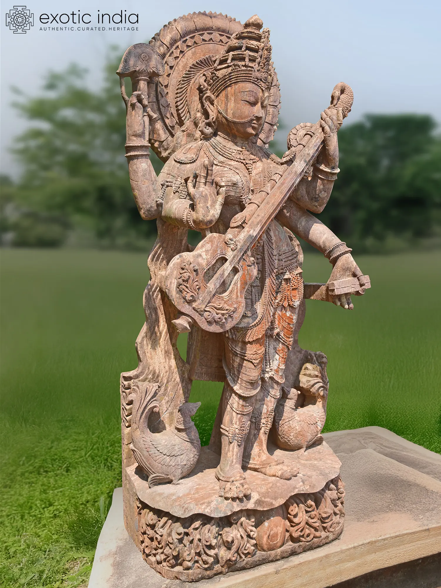 48" Goddess Saraswati | Sandstone Statue | Exquisite Handmade Indian Art
