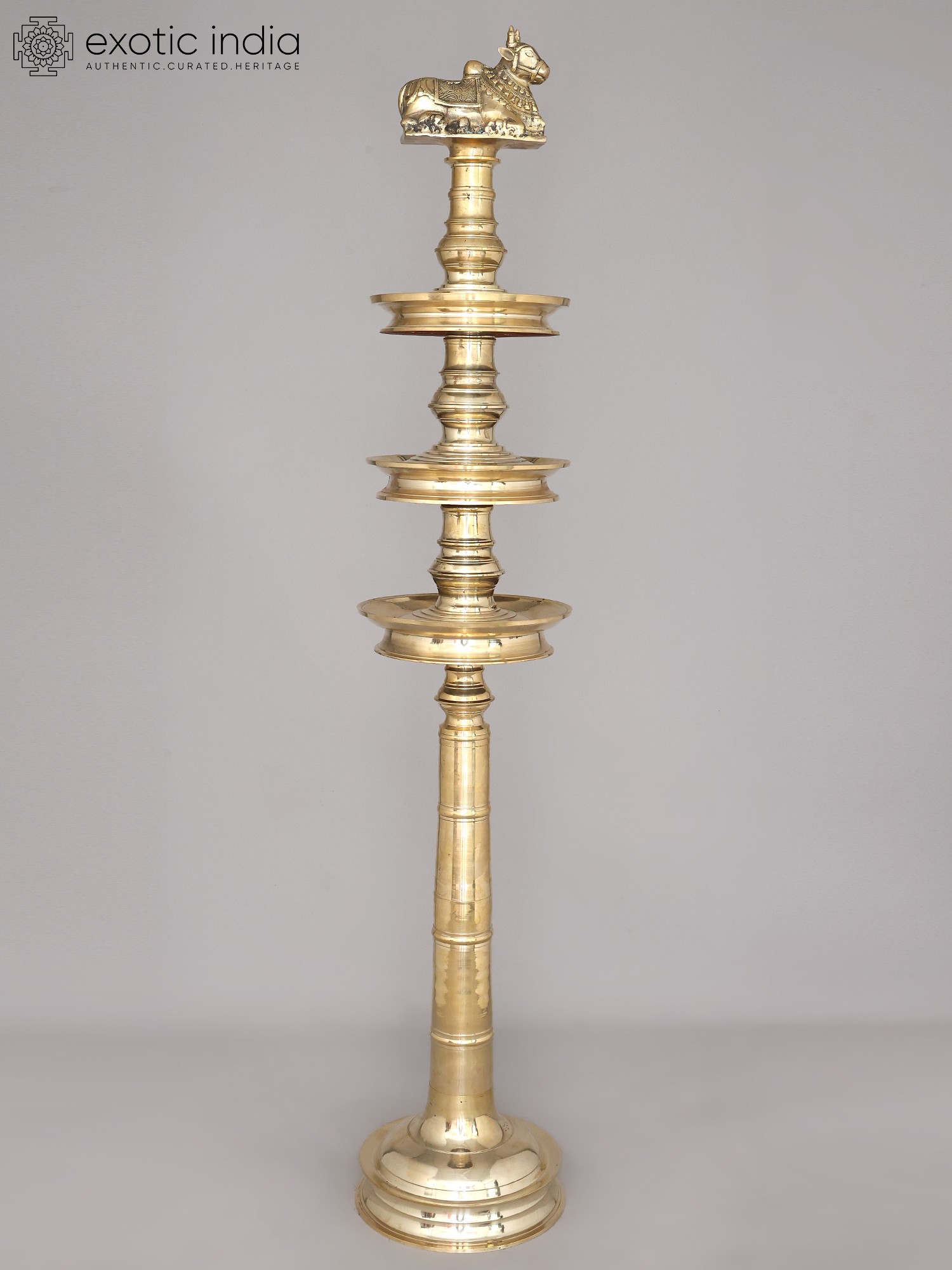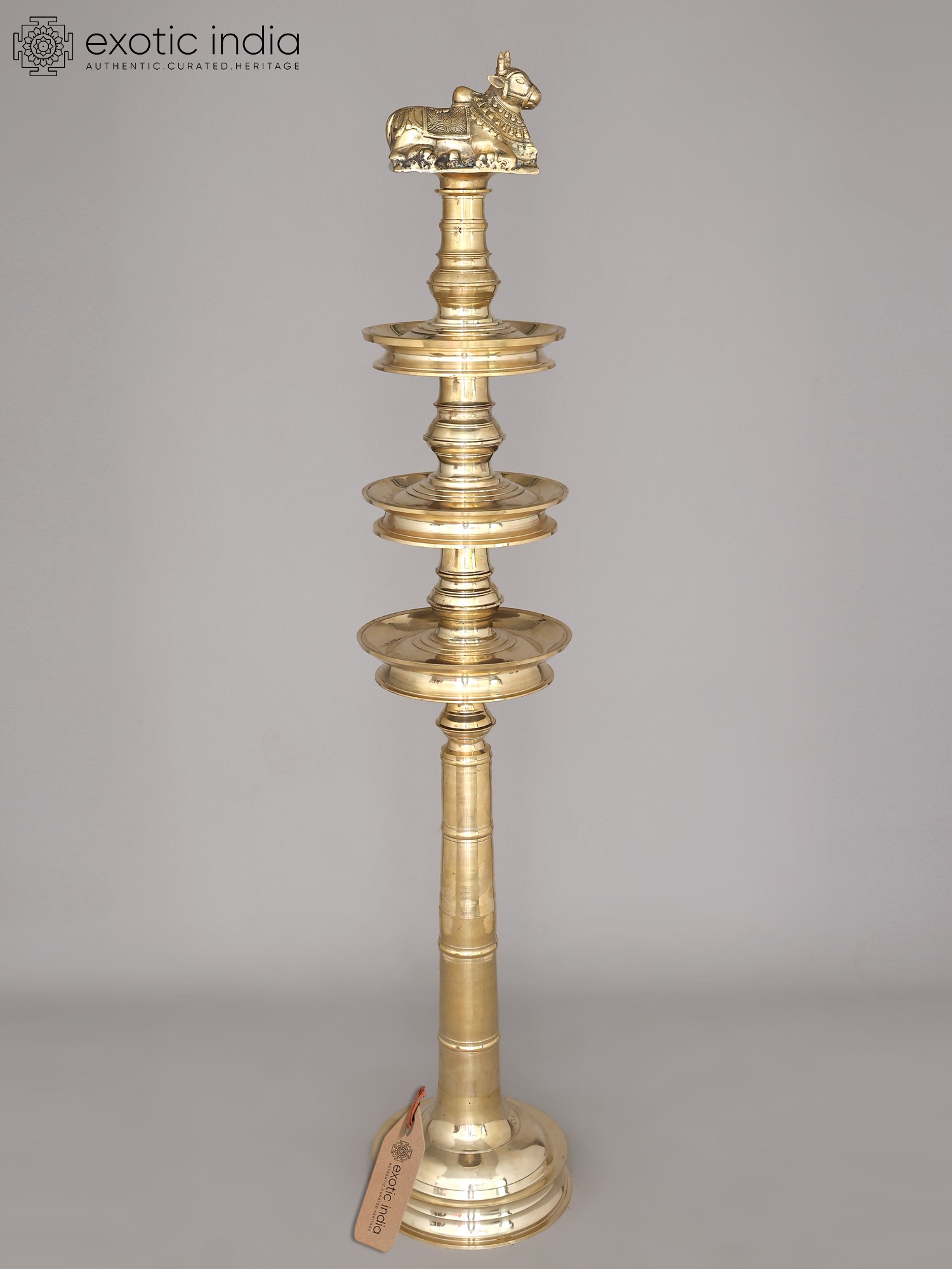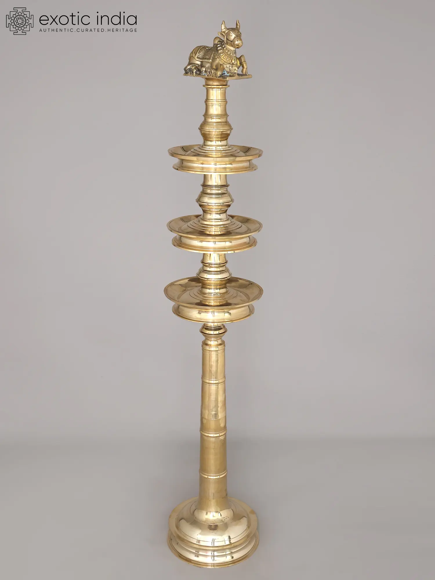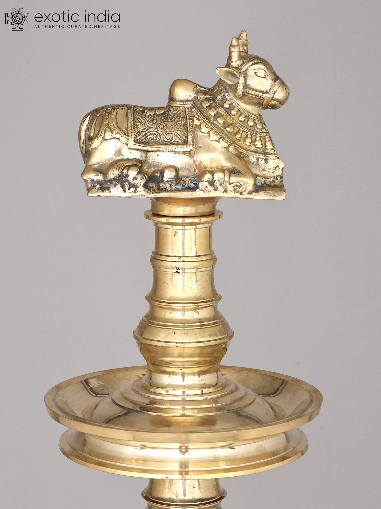 30" Five Wicks Peacock Lamp with Base | Handmade Brass Lamp | Made in India