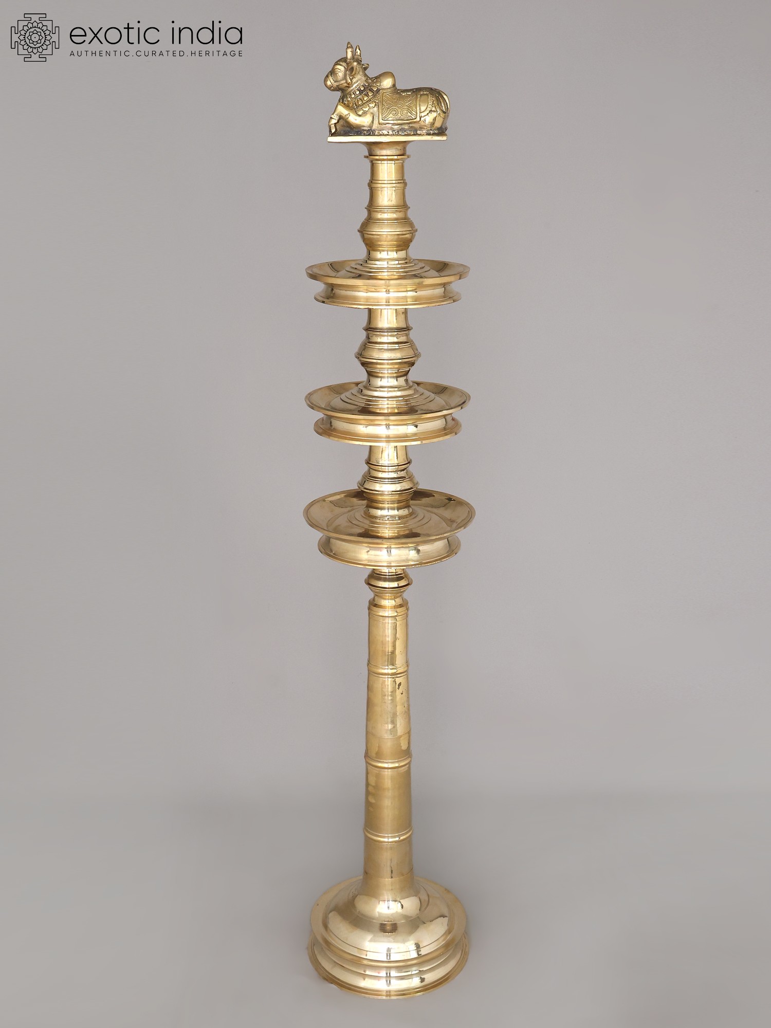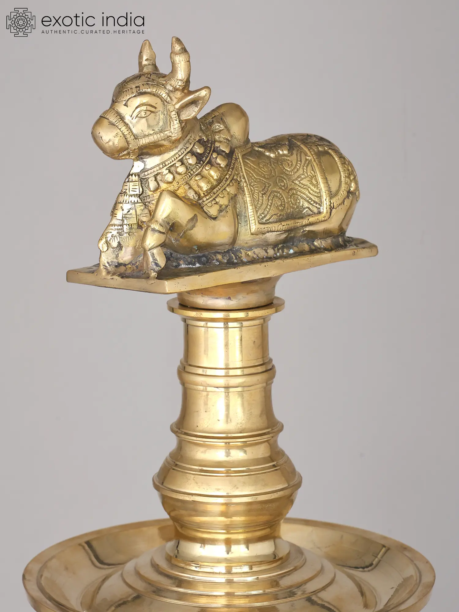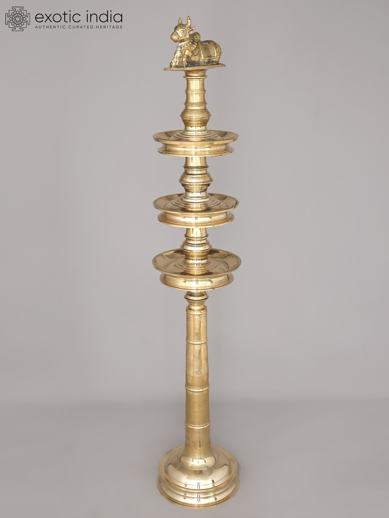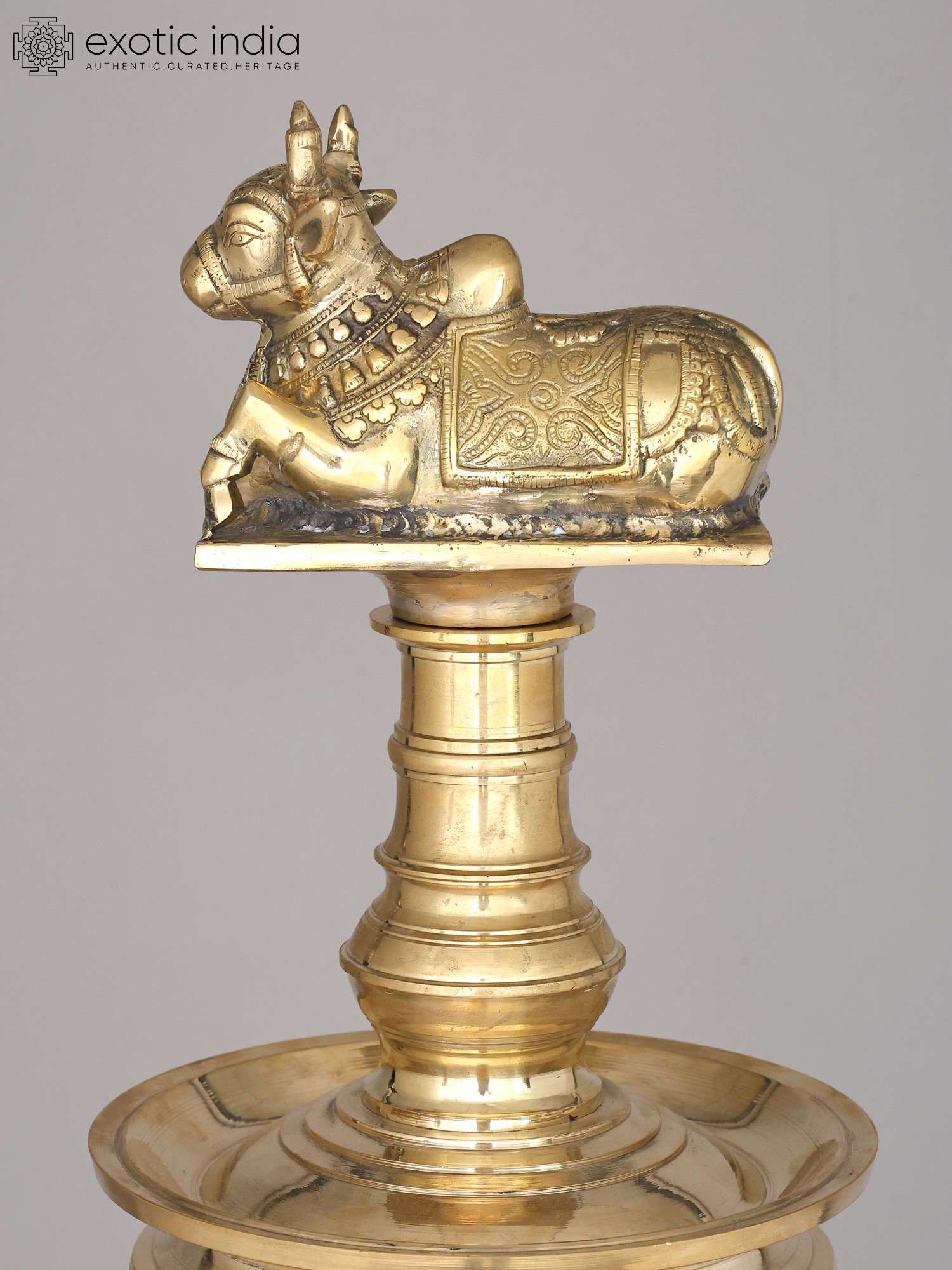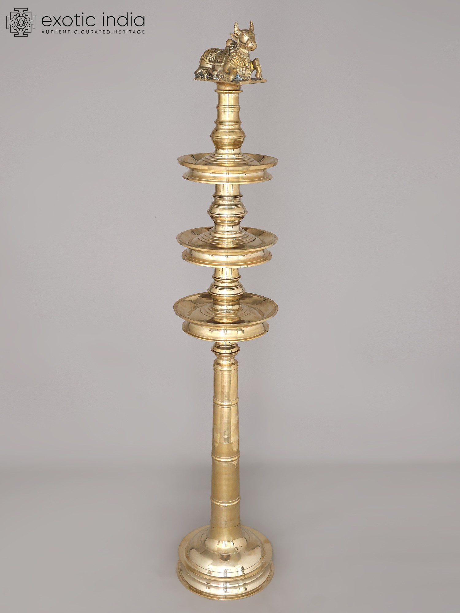 30" Five Wicks Peacock Lamp with Base | Handmade Brass Lamp | Made in India