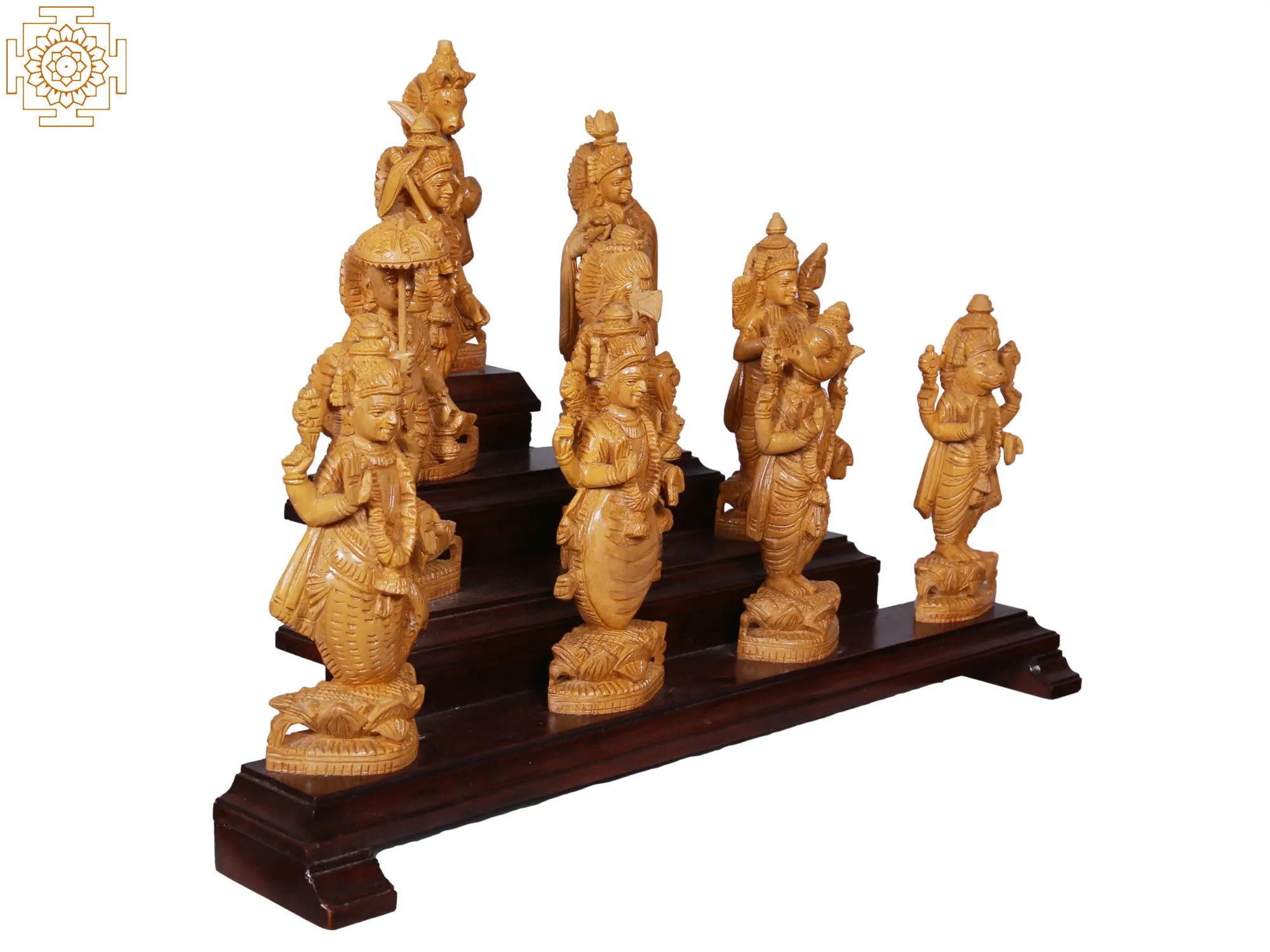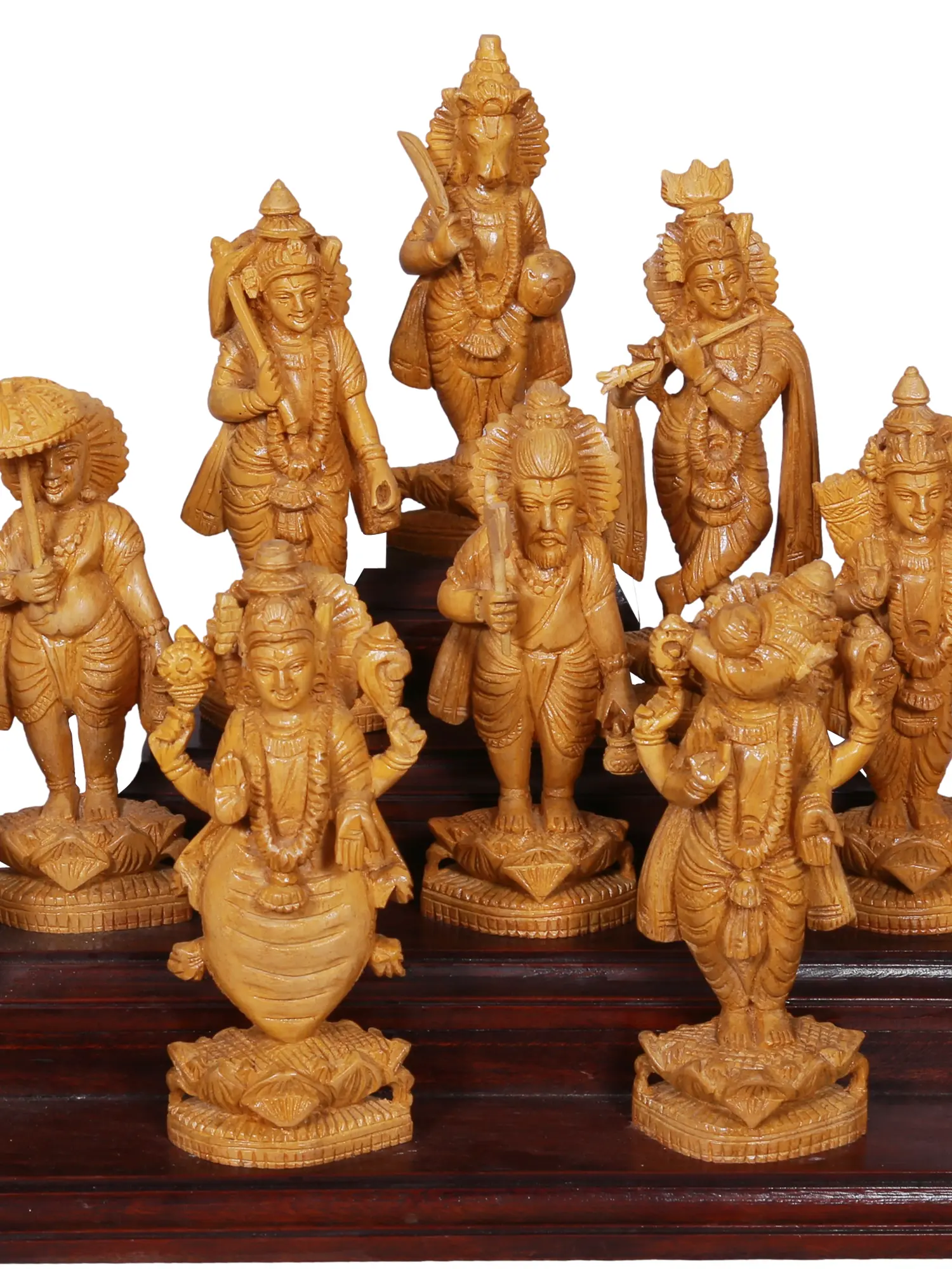 6'' Almighty Dashavatara Of Vishnu | Wooden Statue