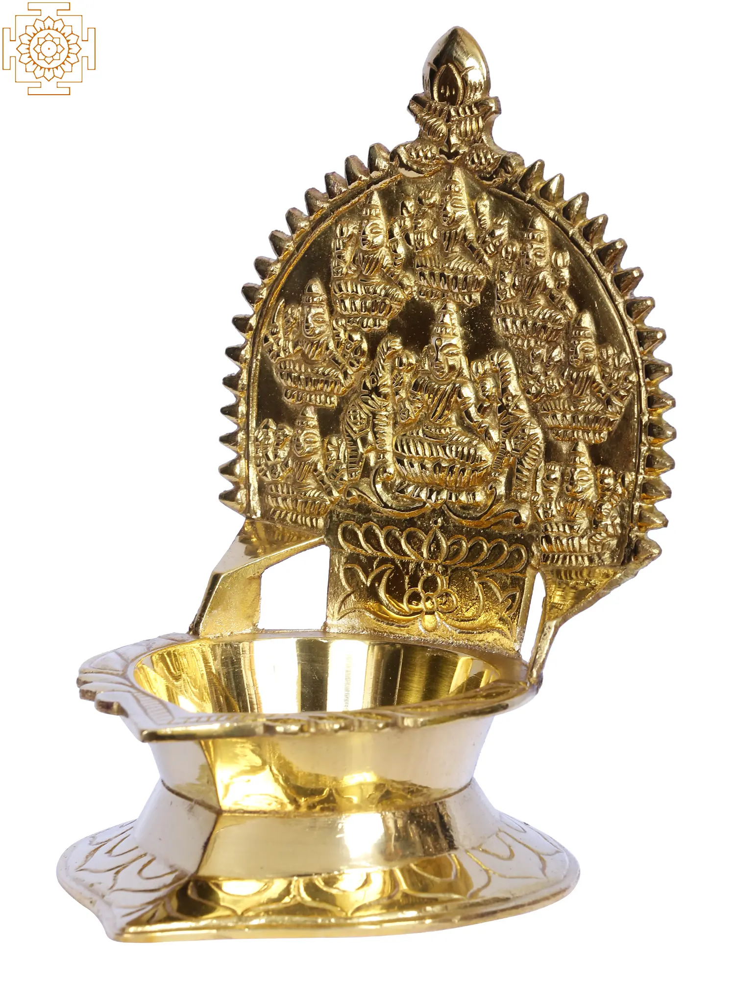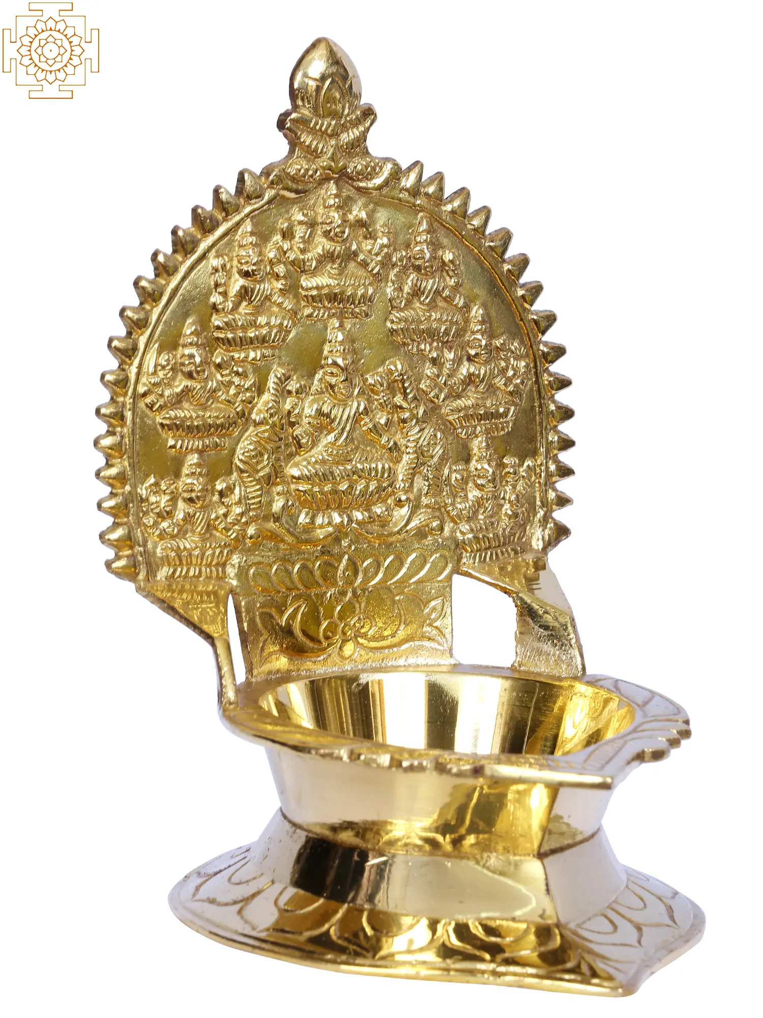 This Ashtalakshmi Lamp is fashioned of high-quality brass and has all of the elements that Kerala artisans are known for. The lamp is gold-colored and wonderfully made, with Sri Mahalakshmi in the center of the crown and flanked by seven other Lakshmis (Santhana Lakshmi, Veera Lakshmi, Vijaya Lakshmi, Ishwarya Lakshmi, Dhana Lakshmi, Dhanya Lakshmi, Gaja Lakshmi). The Deepa is said to contain Sri Mahalakshmi. It may be given to friends, neighbors, and family members on any significant occasion while praying for their well-being.
