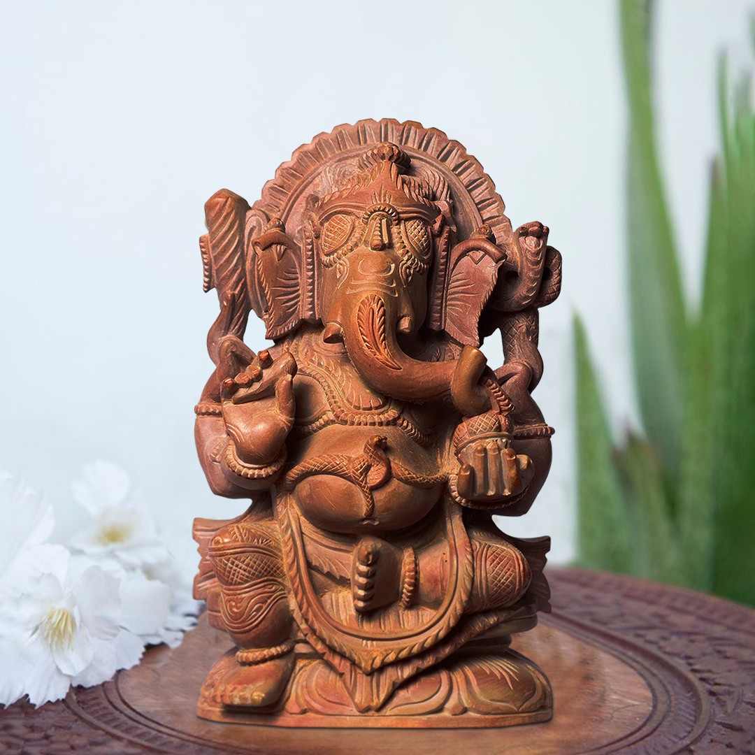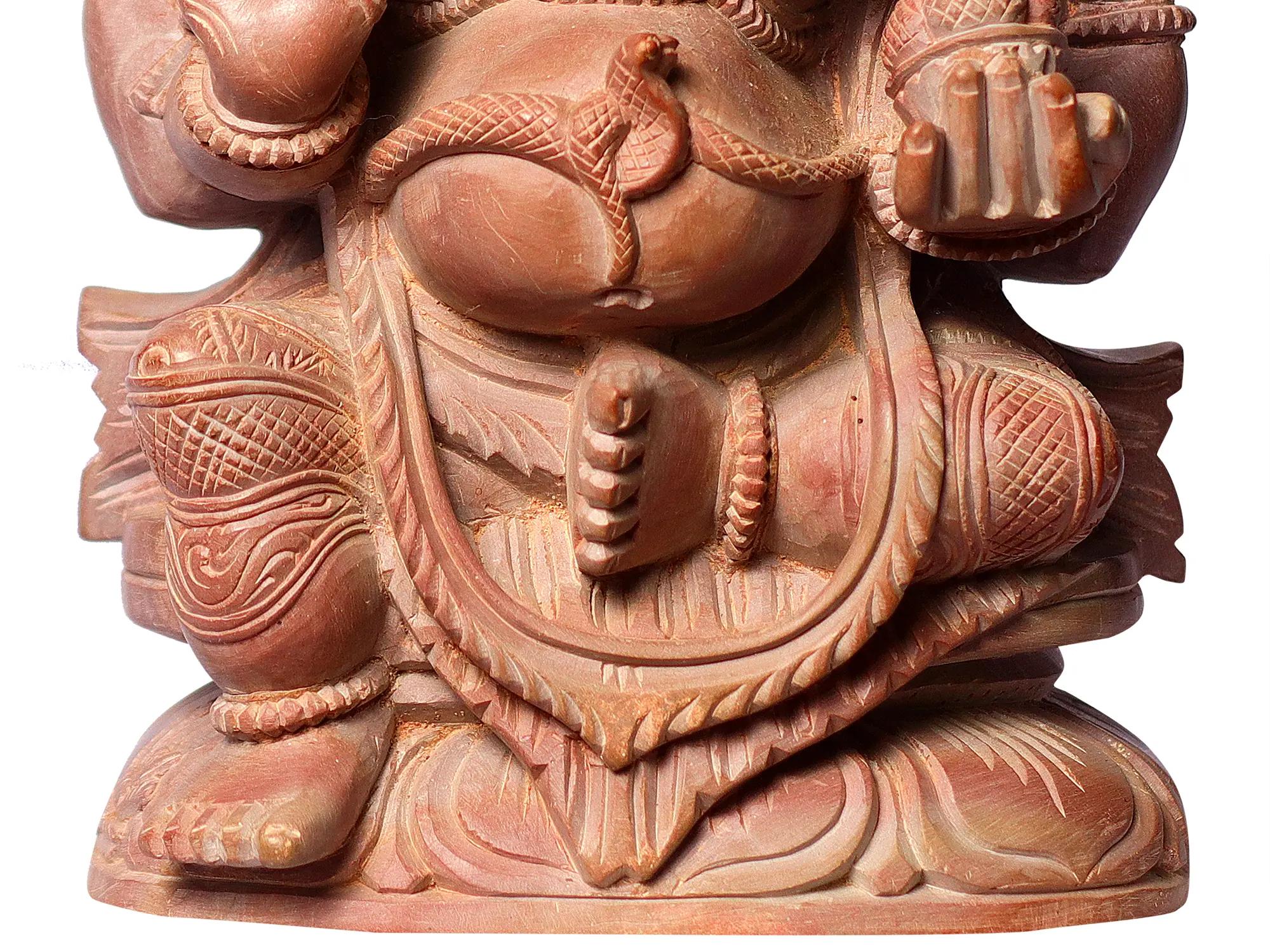 Each curve and detail of this sculpture has been meticulously carved, showcasing the artistry and dedication poured into its creation. From the wise, compassionate gaze of Ganesha to the delicate rendering of his many attributes – the lotus throne, the ankus (goad), the laddoo (sweet), and the blessings in his hands – every element speaks of reverence and artistic skill. The subtle variations in the pink stone’s natural grain further enhance the uniqueness of this piece, ensuring that no two sculptures are exactly alike. Place this radiant Ganesha on your desk, bookshelf, or entryway to be a constant reminder of the power of perseverance and the sweet rewards of wisdom. Let his divine presence inspire you to approach life’s challenges with courage and a spirit of optimism.
