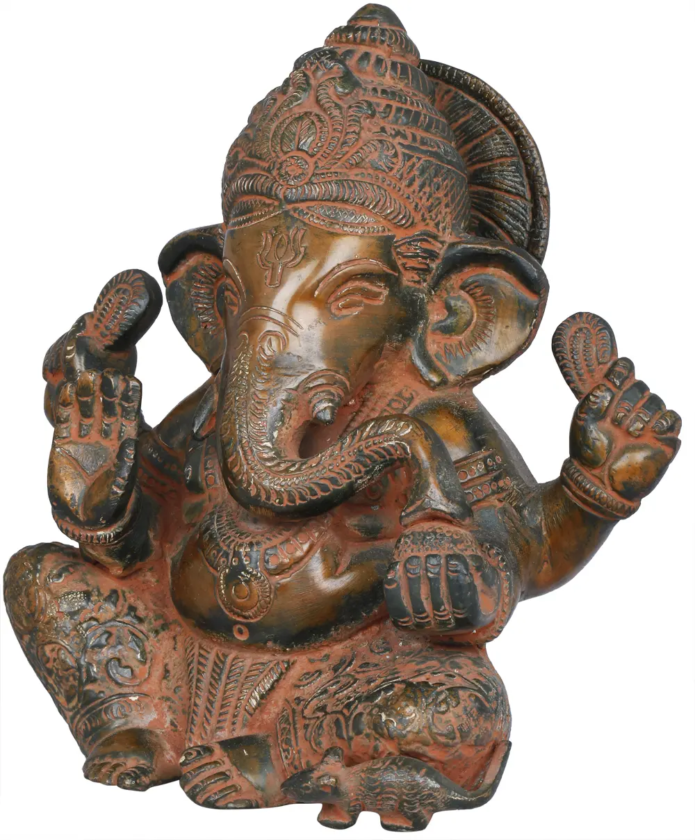 Lord Ganesha, also known as “Vighnaharta” (the remover of obstacles), embodies wisdom, intellect, and auspiciousness. In this portrayal, He sits majestically, radiating a sense of divine presence. In his upper two hands, Ganesha holds a noose, representing the power to bind desires and attachments, while his lower right hand is raised in the “Ashirwad Mudra” (gesture of benediction), symbolising fearlessness and protection. His left hand holds a “Sweet Modak”, a favourite treat that signifies the sweetness of spiritual knowledge. As the remover of obstacles, Lord Ganesha’s benevolent presence brings harmony and prosperity, making this brass creation a cherished centrepiece in homes and places of worship.