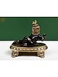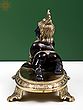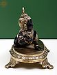 Krishna in such representation can be seen as a crawling child, with a laddu in his hand, looking at the devotee adorably, his form so endearing that the worshippers forget he is an incarnation of Vishnu himself, and treat the childhood form of the slayer of great demons as if he is a newborn baby, the center of unbridled affection from the whole family. This brass Laddu Gopala murti comes with a chowki attached to Krishna’s image, on which sits Kanha, dressed in fineries, his hair in a pleasing top-knot on which he wears a peacock feather. The simplicity and cuteness in Krishna’s manner arrest our gaze, filling it with love and devotion for this charming god. Laddu Gopala as you see here is perfect to be placed in your worship home (pooja ghar), from where the loving Krishna will devour laddus as well as your worries.