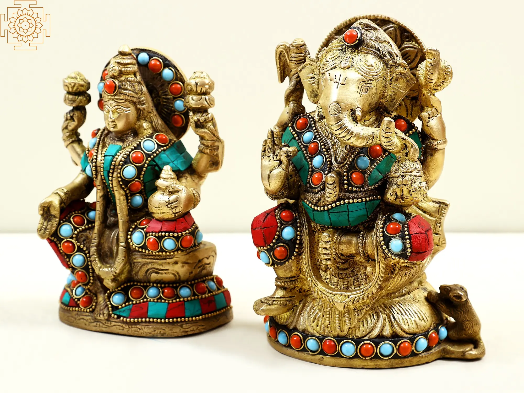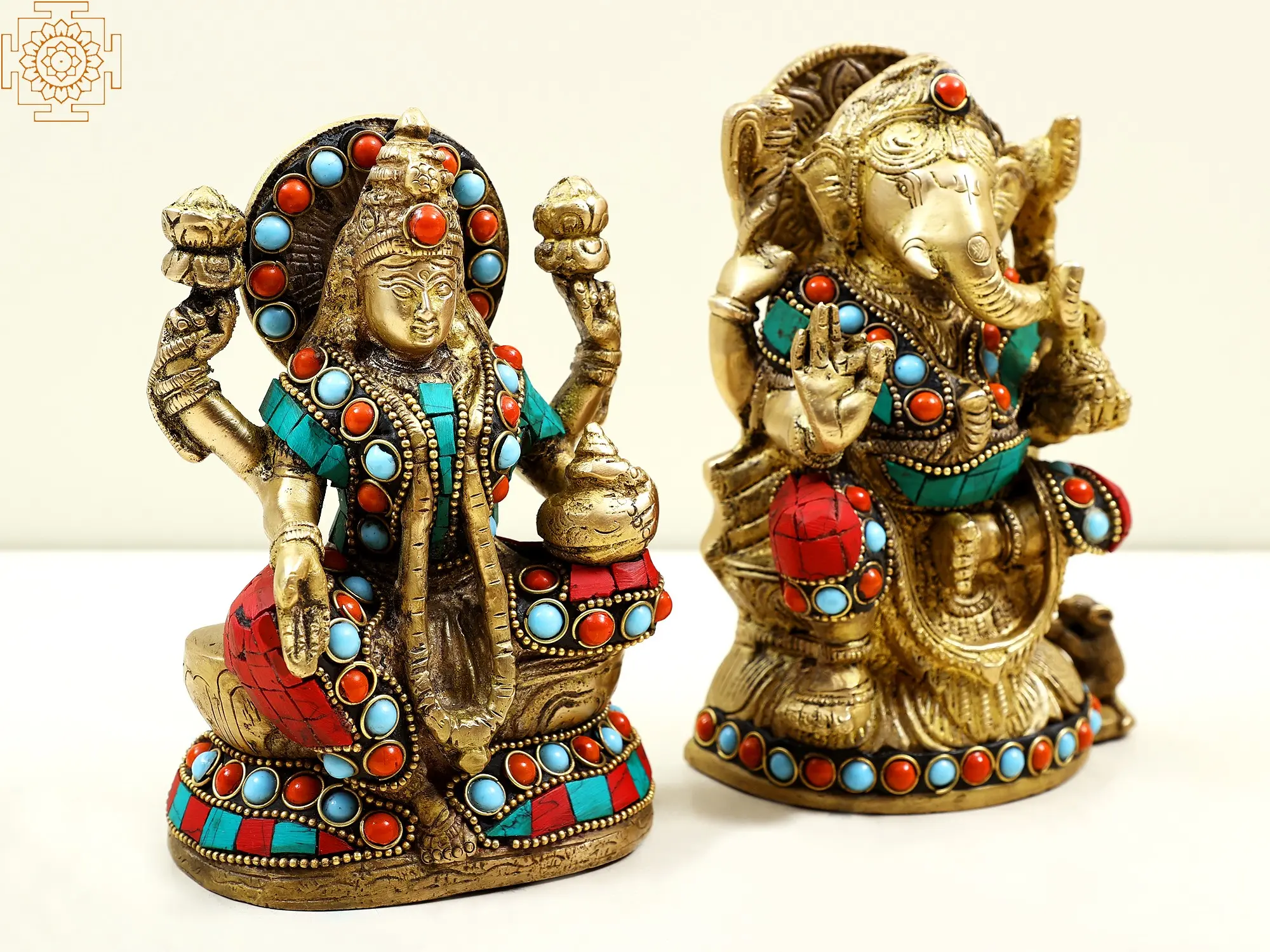 With Lord Ganesha and Goddess Lakshmi together in this fine brass set, you're not just acquiring another showpiece; rather the divine harmony into your lives. Let their presence inspire you, empower you, and guide you on a path of prosperity, wisdom, and spiritual fulfilment. Allow their presence to enrich your spirit, empower your journey, and illuminate your life with prosperity, wisdom, and the removal of obstacles.