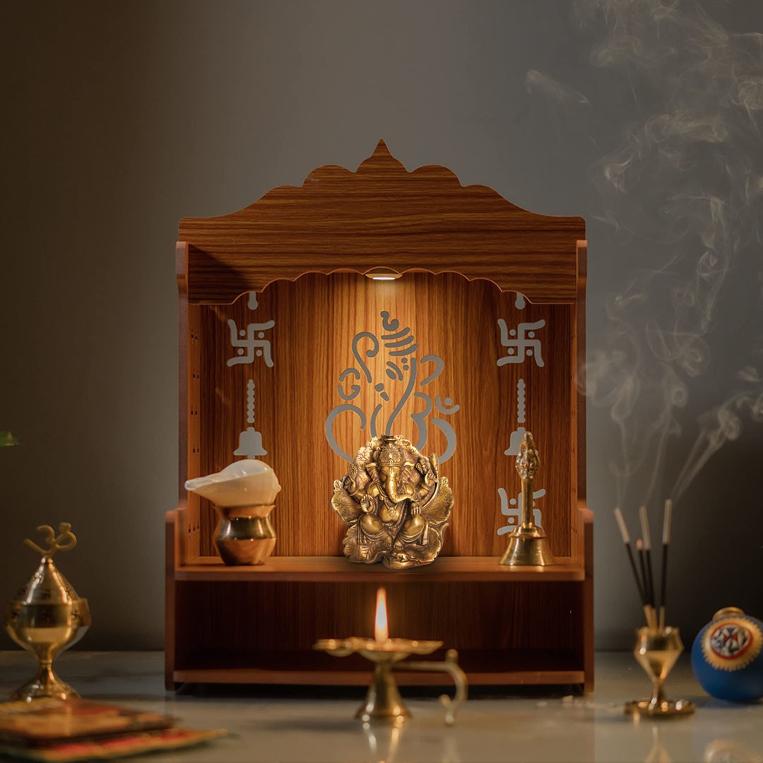 Lord Ganesha, seated on a leaf couch, symbolises his adaptability and his ability to find comfort in simple and natural settings. The portrayal becomes a beautiful blend of spirituality and nature's beauty, reflecting Ganesha's close connection to the world around him. As light dances upon its surface, the Brass Lord Ganesha seated on a leaf couch emanates a soft, golden glow, inviting you to meditate upon the teachings of adaptability and the joy that Ganesha brings.