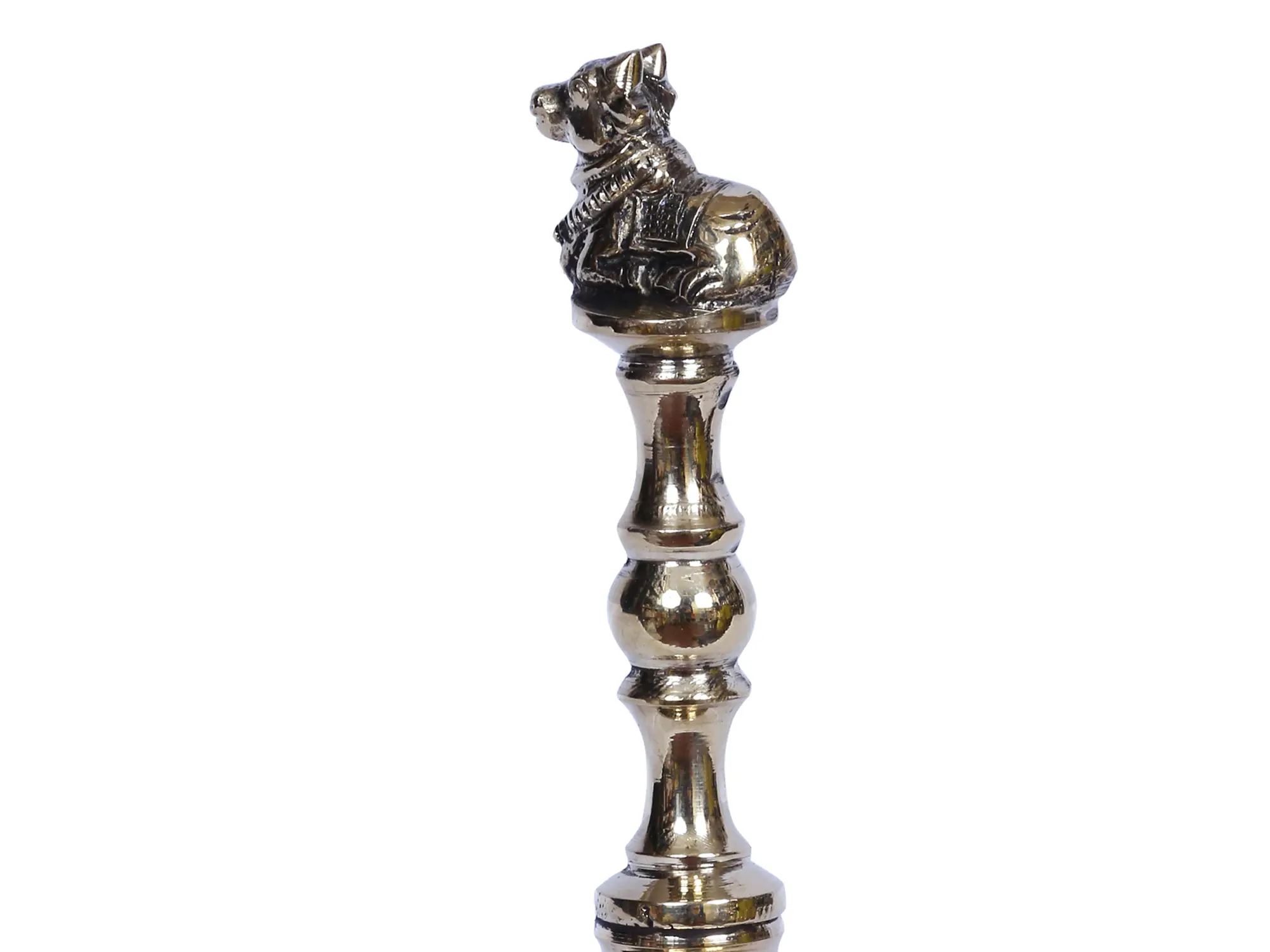 The ghanti is considered a sacred object and is used in Hindu rites. Each intricately made component of the handbell is said to represent a different deity. Sarasvati, the Goddess of Wisdom, is symbolized by the bell's mouth or clapper, Brahma by its face, Rudra by its belly, and Vasuki by its stem, while time is represented by the bell's entire body. The installation of a bull on top of the bell represents Lord Shiva's blessings on the ceremonial instrument.