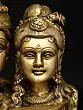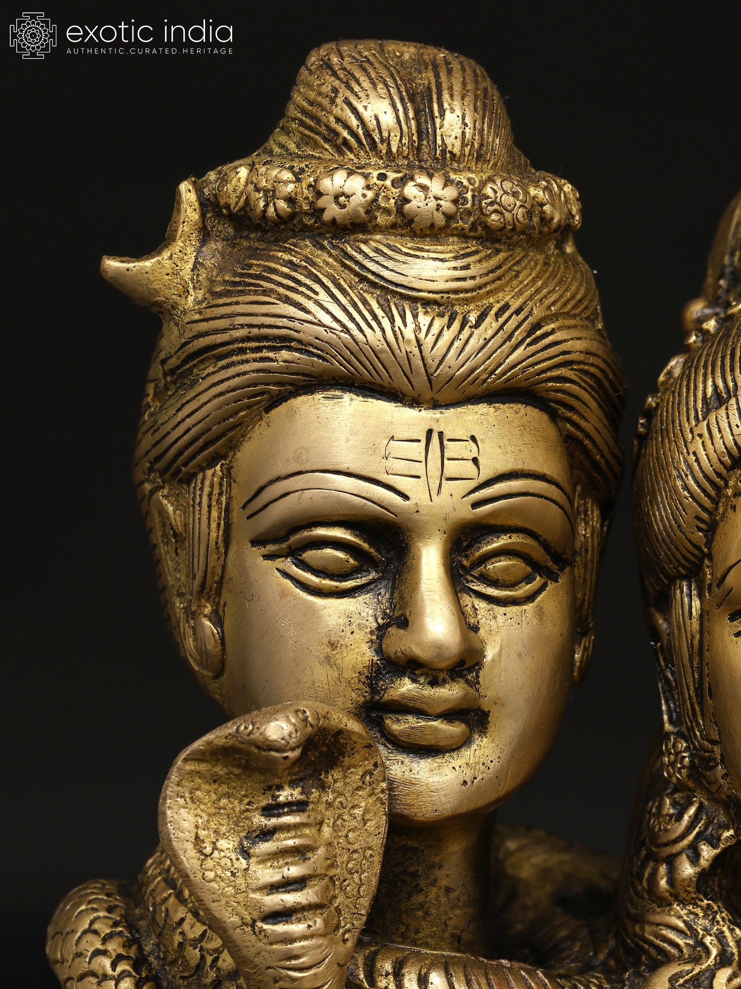 The brass sculpture of Shiva and Parvati signifies the cosmic union of masculine and feminine energies. Shiva, with ash smeared on his body, signifies the ascetic, while Parvati, adorned with jewels, embodies grace and beauty. Shiva's third eye represents wisdom, while Parvati's gentle smile signifies love. Their union represents the harmonious balance of opposites in the universe, a reminder that life's journey requires the fusion of strength and tenderness. This sculpture personalizes the quest for inner balance, the union of consciousness and compassion, and the realization that the divine resides within us all.