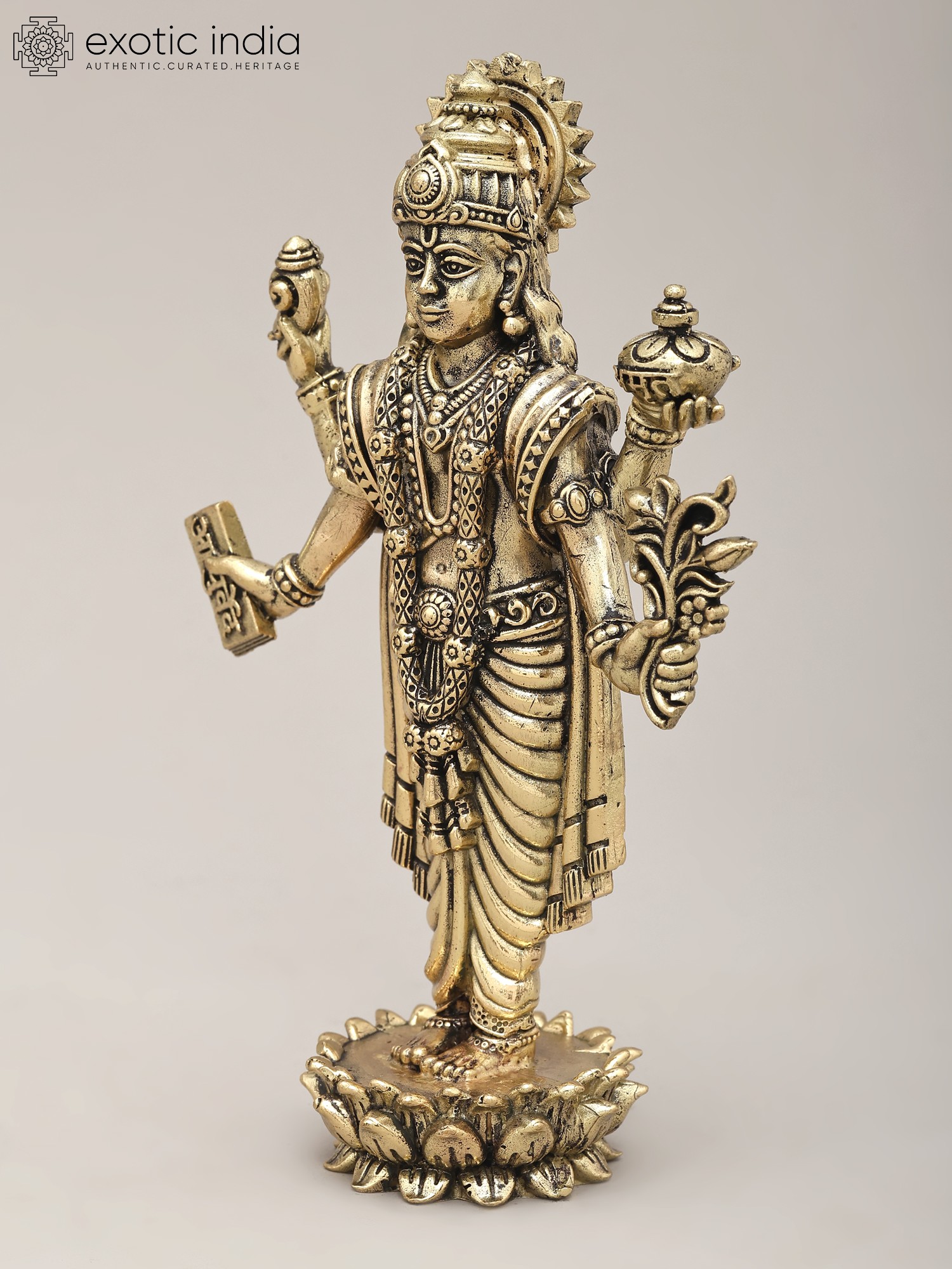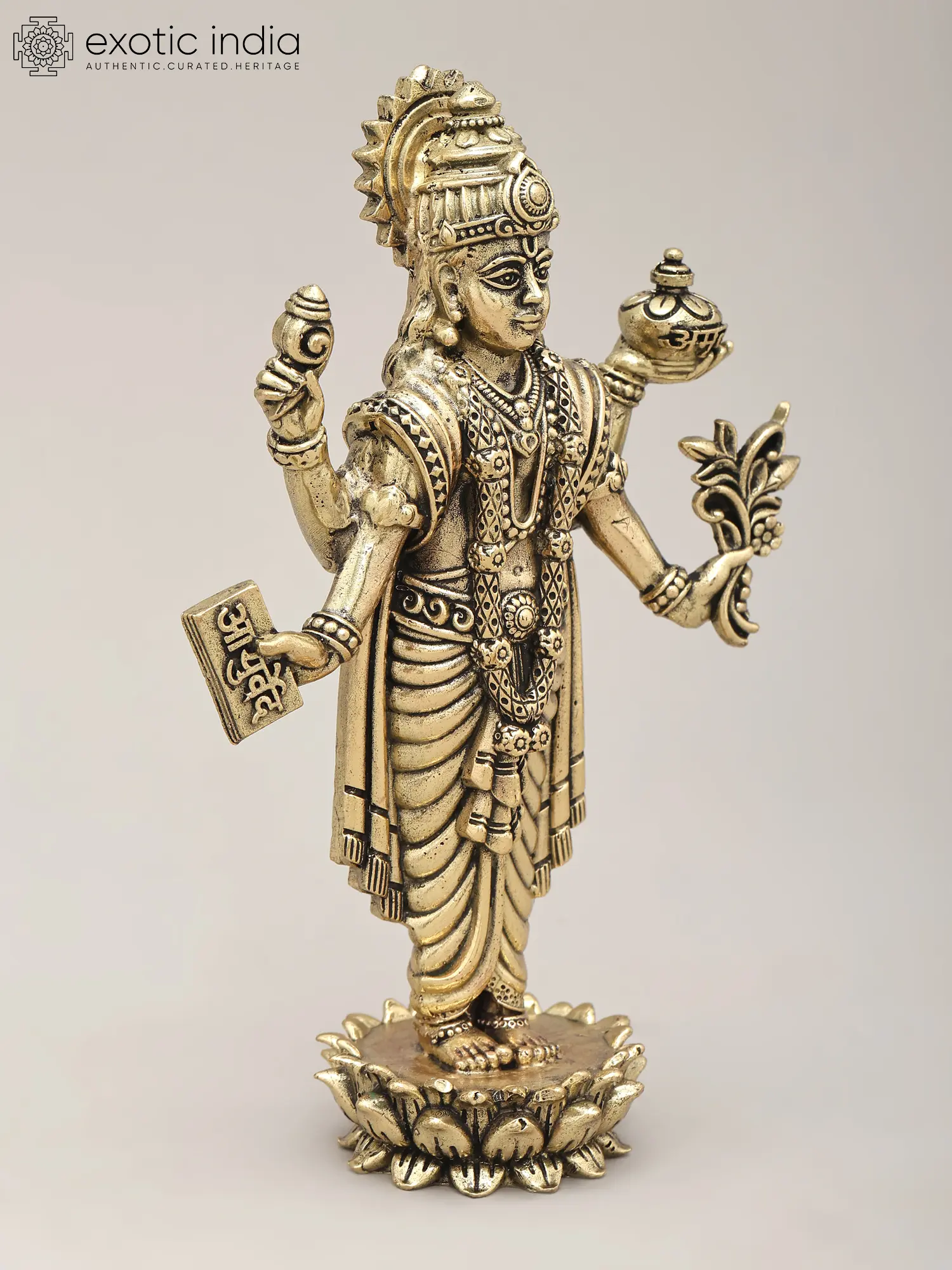 12" Beautiful Dhanvantari Brass Statue | The Physician of the Gods (Holding the Vase of Immortality)