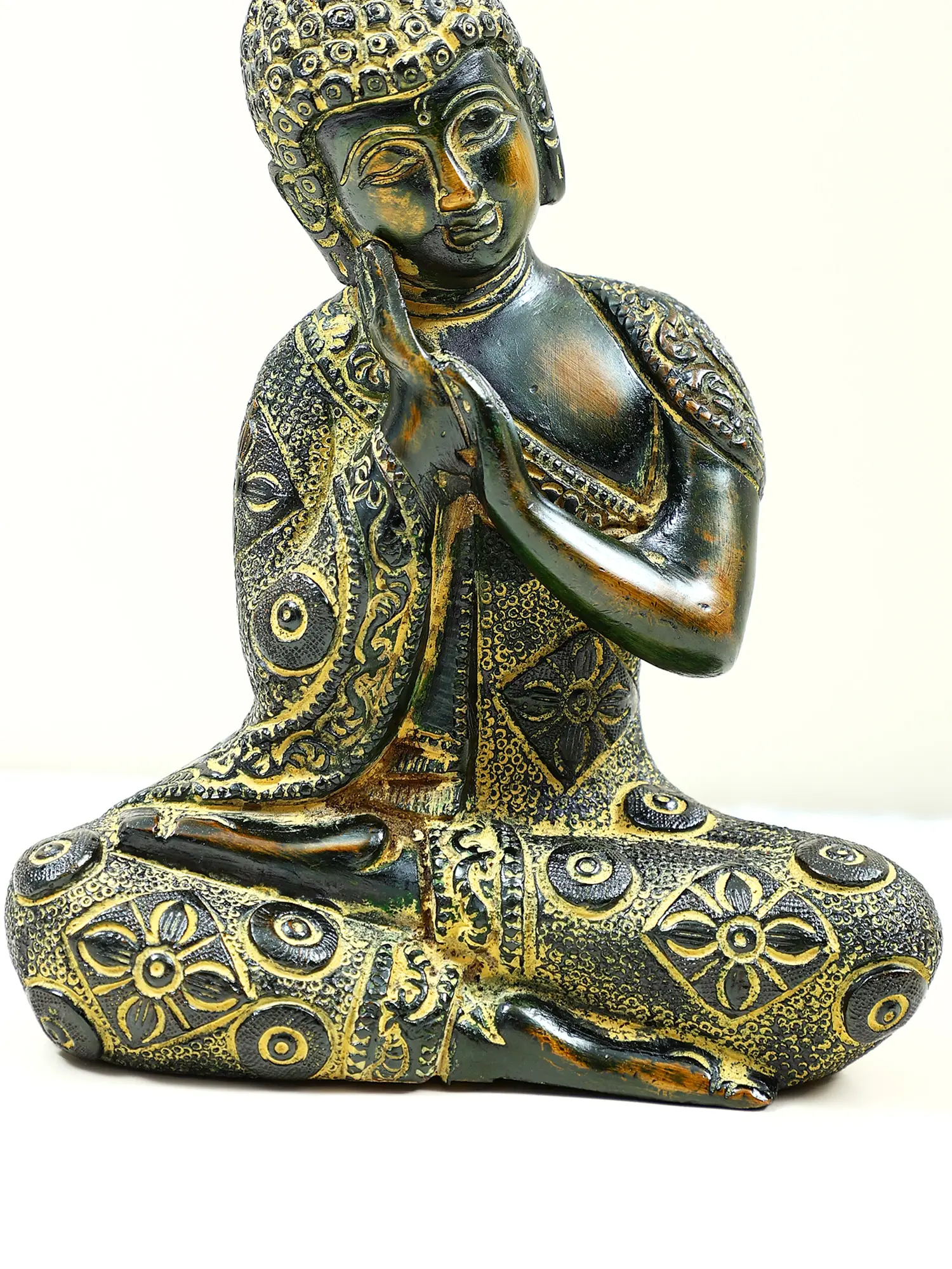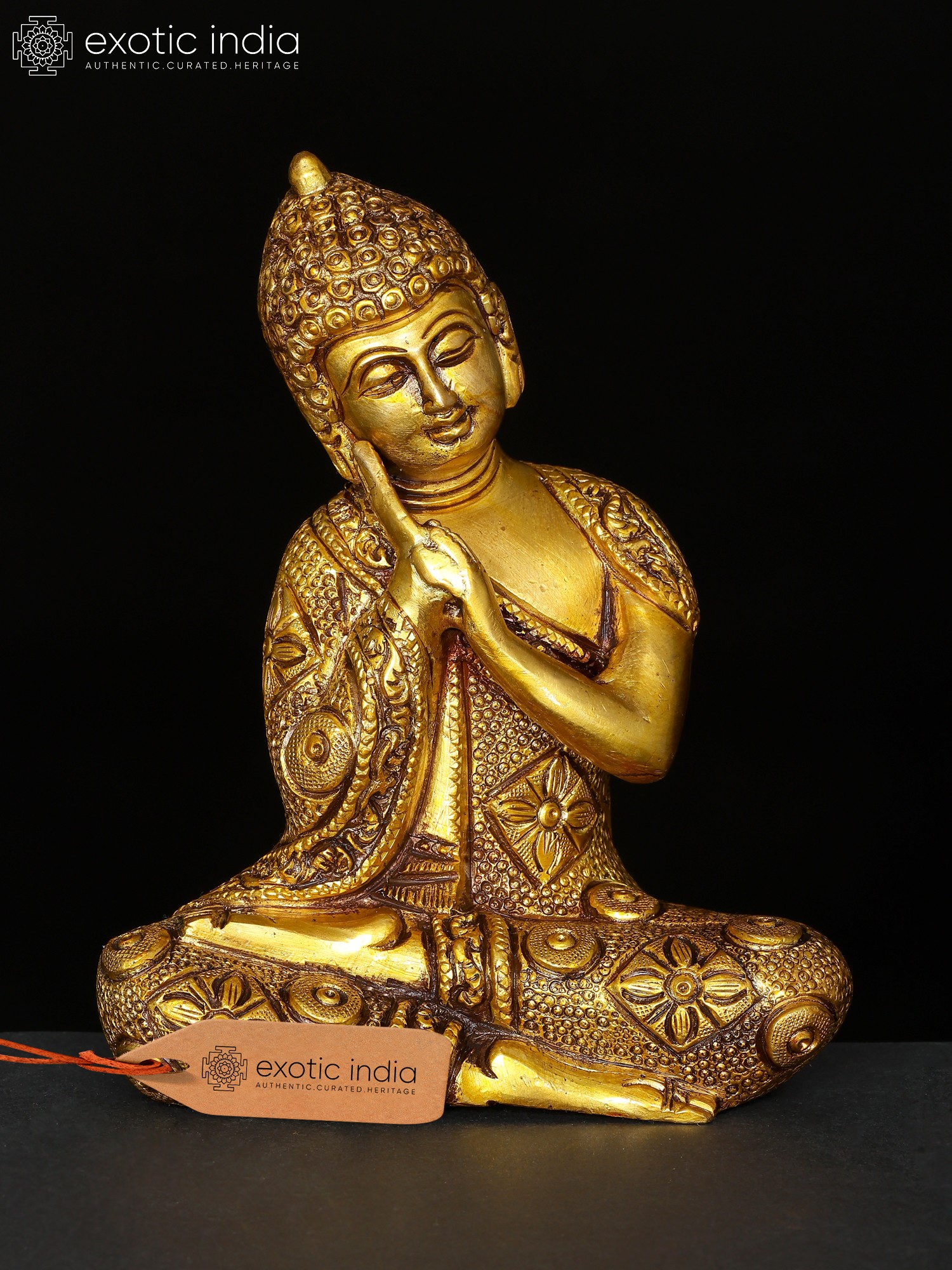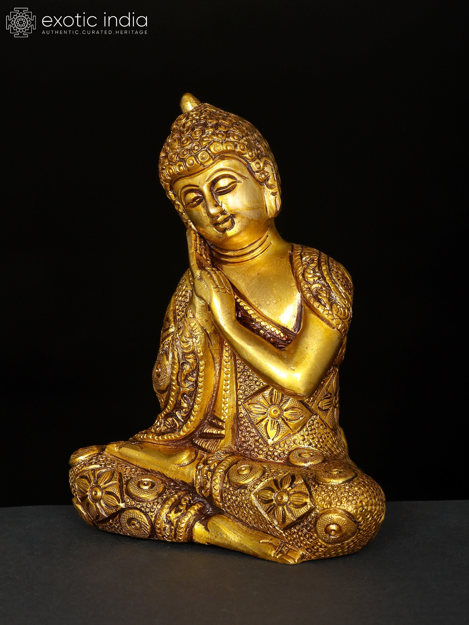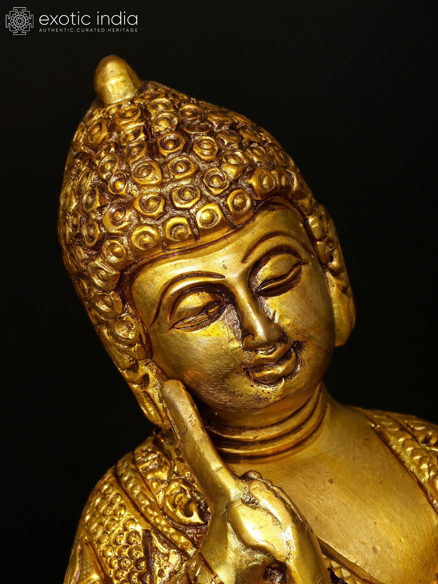 8" Thinking Buddha In Brass | Handmade | Made In India