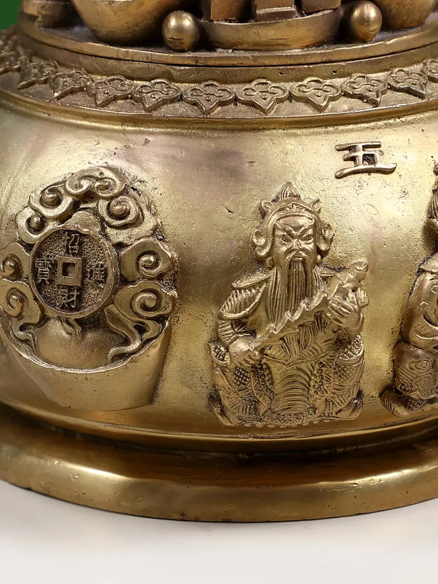 This wealth pot is a masterpiece of superfine bronze casting, showcasing the skill and dedication of master artisans. The rich, warm patina of the bronze enhances the detailed craftsmanship, bringing each symbol to life with remarkable clarity. The weight and substance of the bronze speak to its enduring quality and its ability to serve as a lasting symbol of your aspirations. Whether displayed in your home, office, or as a thoughtful gift for a loved one, this bronze wealth pot is destined to become a cherished heirloom, a constant reminder of the boundless possibilities that abundance brings. It is an object designed not just to adorn, but to inspire, to attract, and to manifest your deepest desires for prosperity and success.
