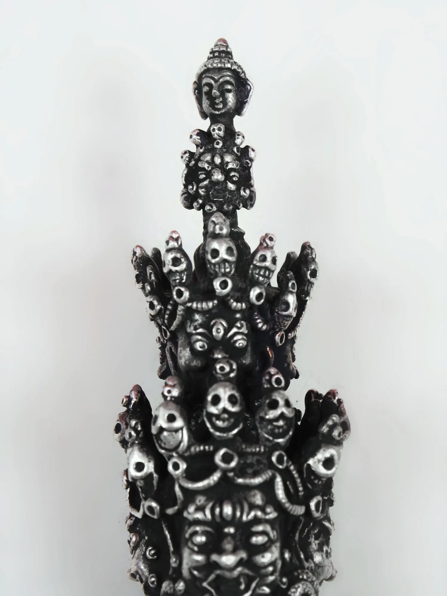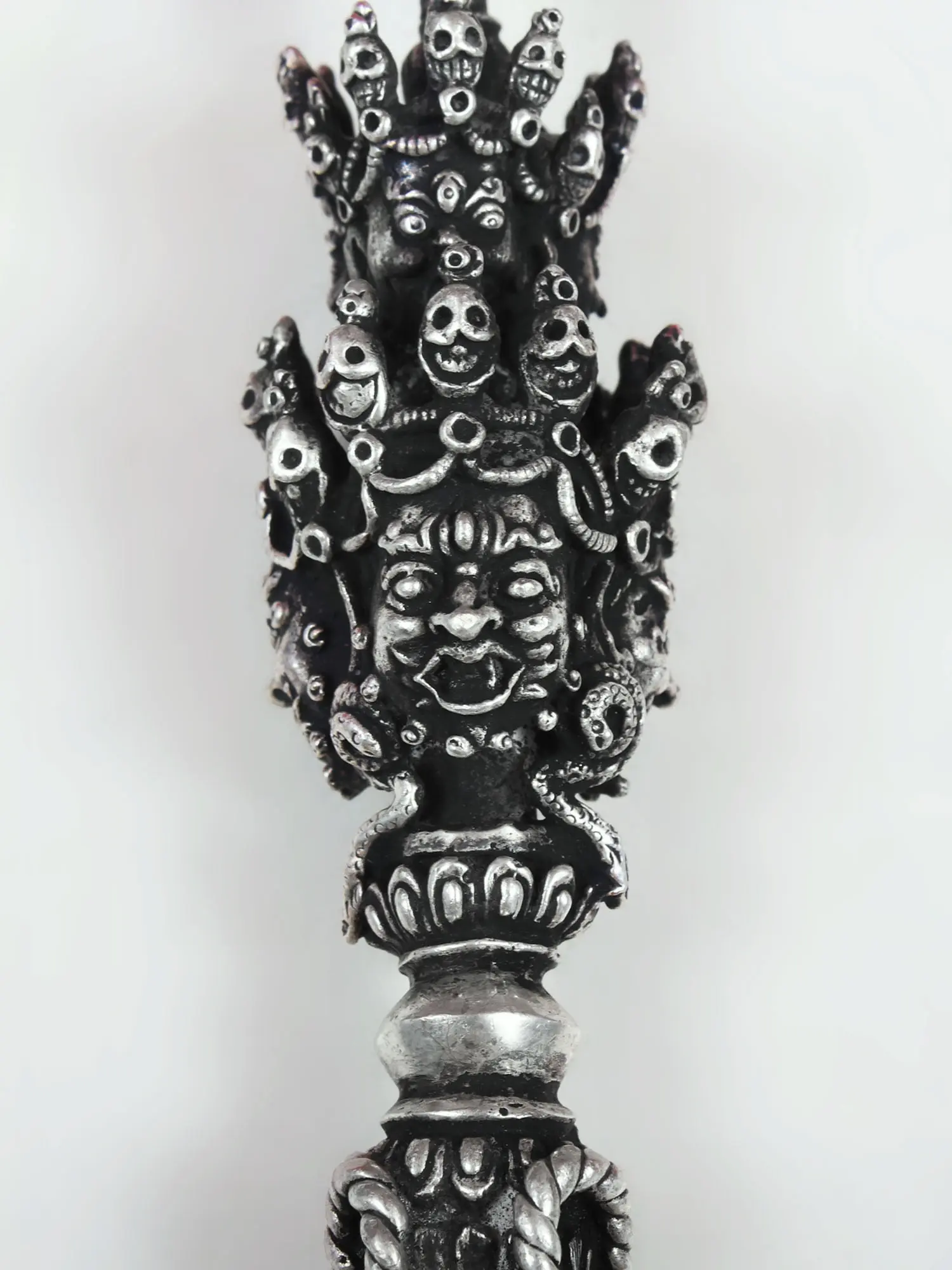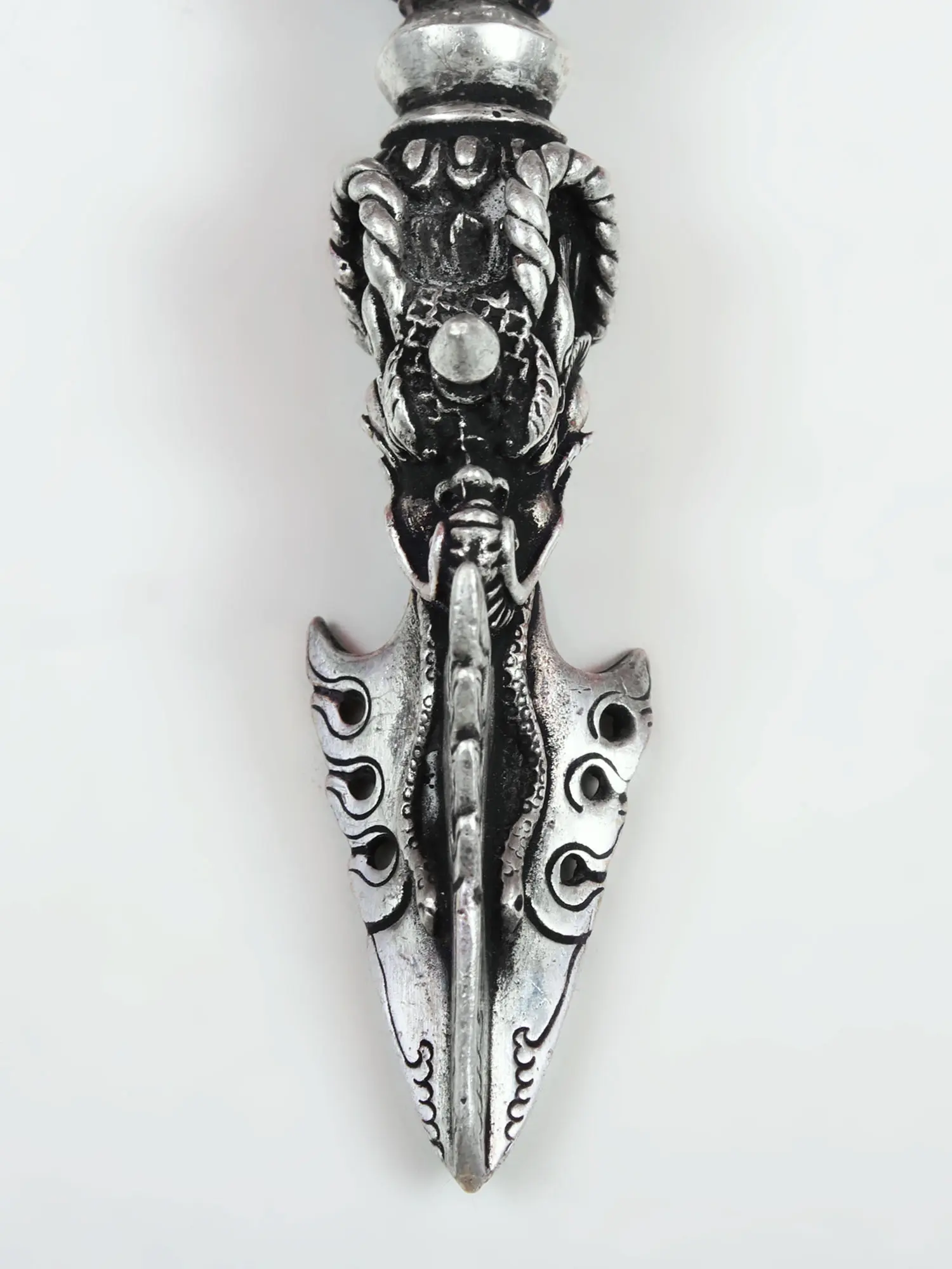 In Tibetan Buddhism, the Mahakala Phurpa is a sacred ritual knife connected to the vengeful deity Mahakala. In Vajrayana teachings, this ritual application is very important since it represents the ability to transform negative forces, safeguard practitioners, and conquer barriers. A Phurpa's three-sided blade symbolizes slicing through ignorance and hindrances. The ritual dagger is thought to be a powerful weapon for the visualization and manifestation of enlightened energy, and its handle displays complex symbolism.