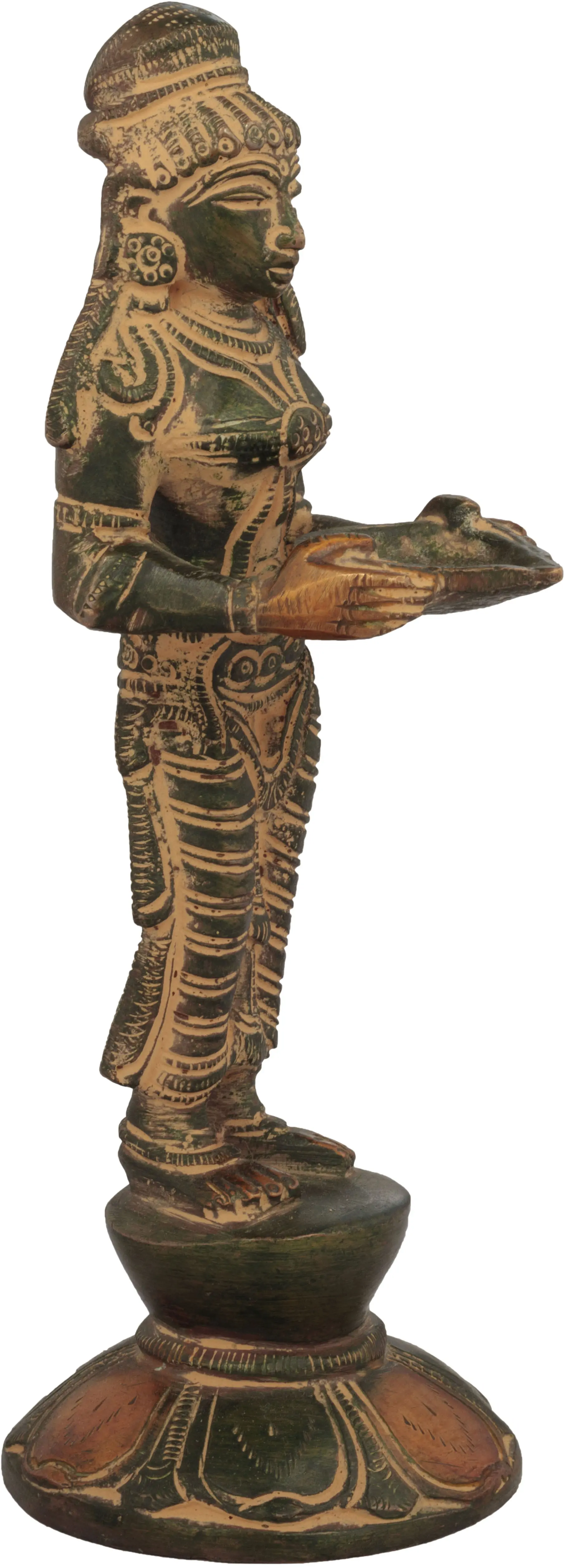 “May the light of knowledge dispel the darkness of ignorance." This saying resonates with the Deepalakshmi sculpture. Handmade in brass, it portrays the goddess of light and wisdom, holding a radiant lamp that symbolizes the removal of darkness from our lives. With a parrot perched on her shoulder, she signifies beauty, grace, and the presence of knowledge. Deepalakshmi's eyes exude compassion, reflecting her role as a guide through life's complexities. This sculpture embodies the hope that wisdom will always shine, even in the midst of challenges.