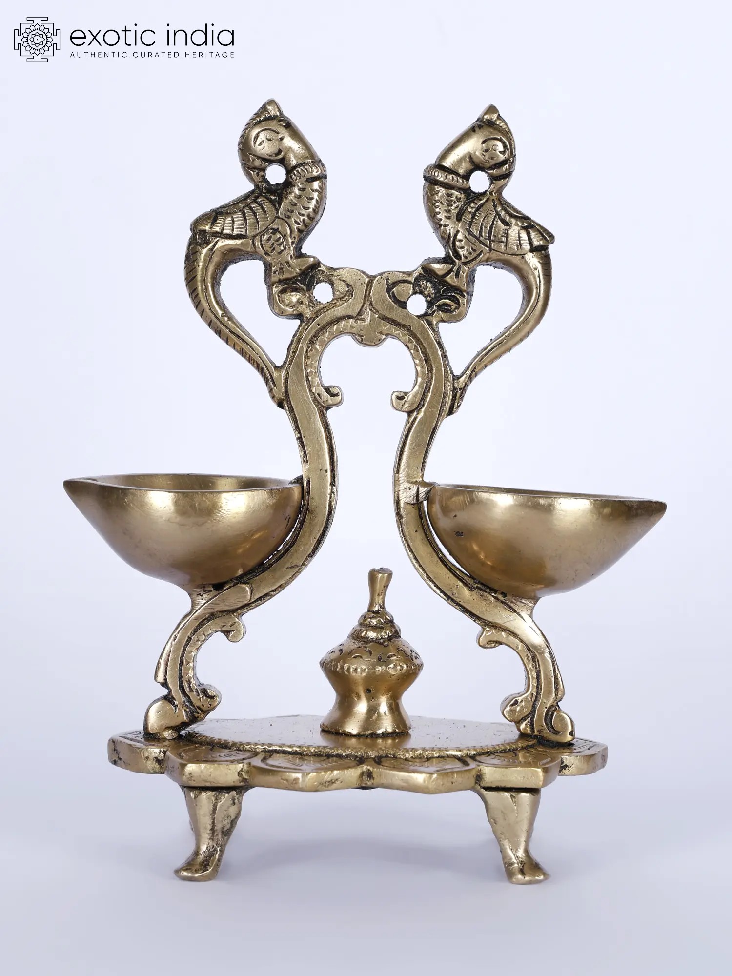 28" Multi Wicks Large Peacock Lamp In Brass | Handmade | Made In India