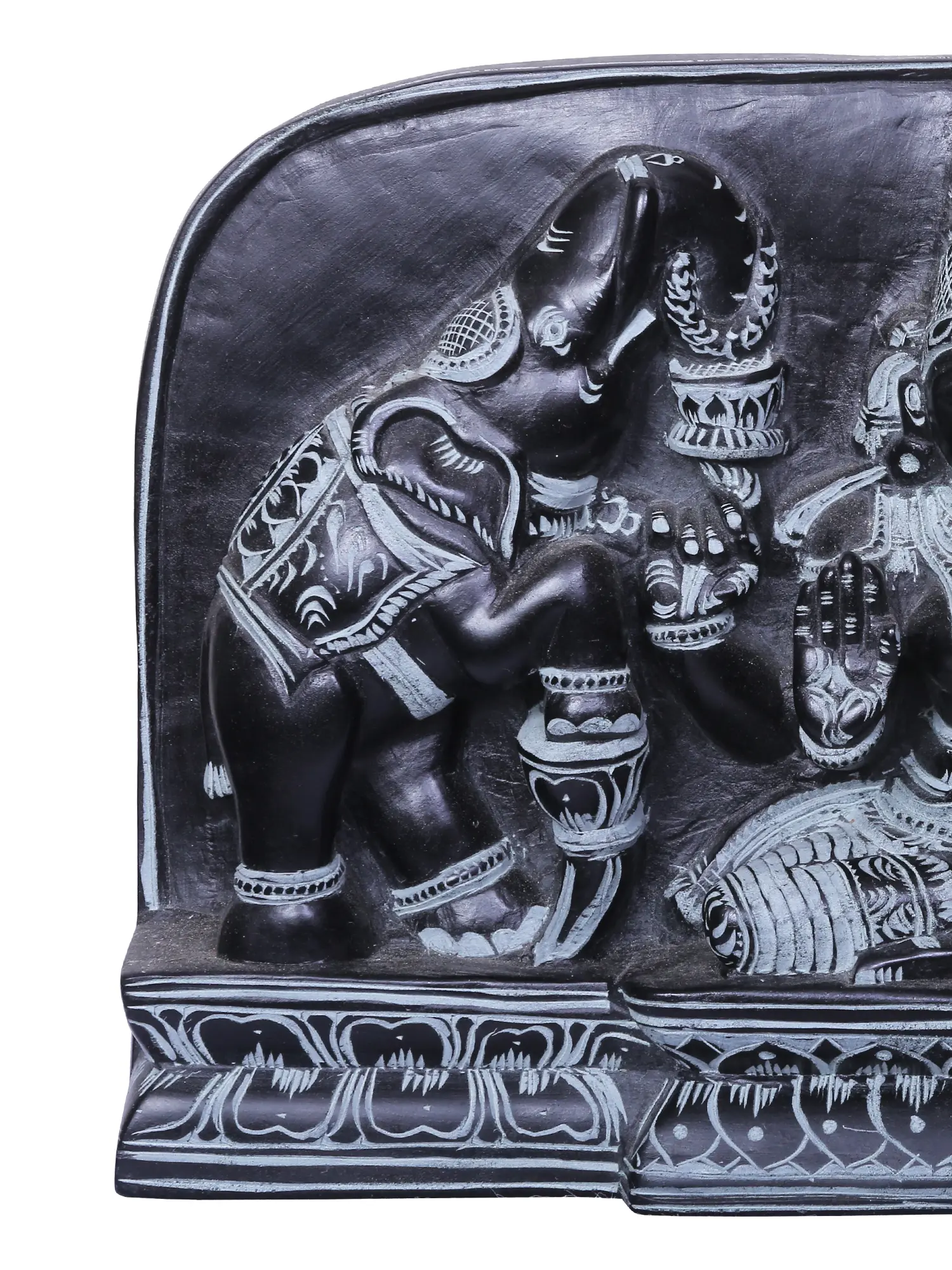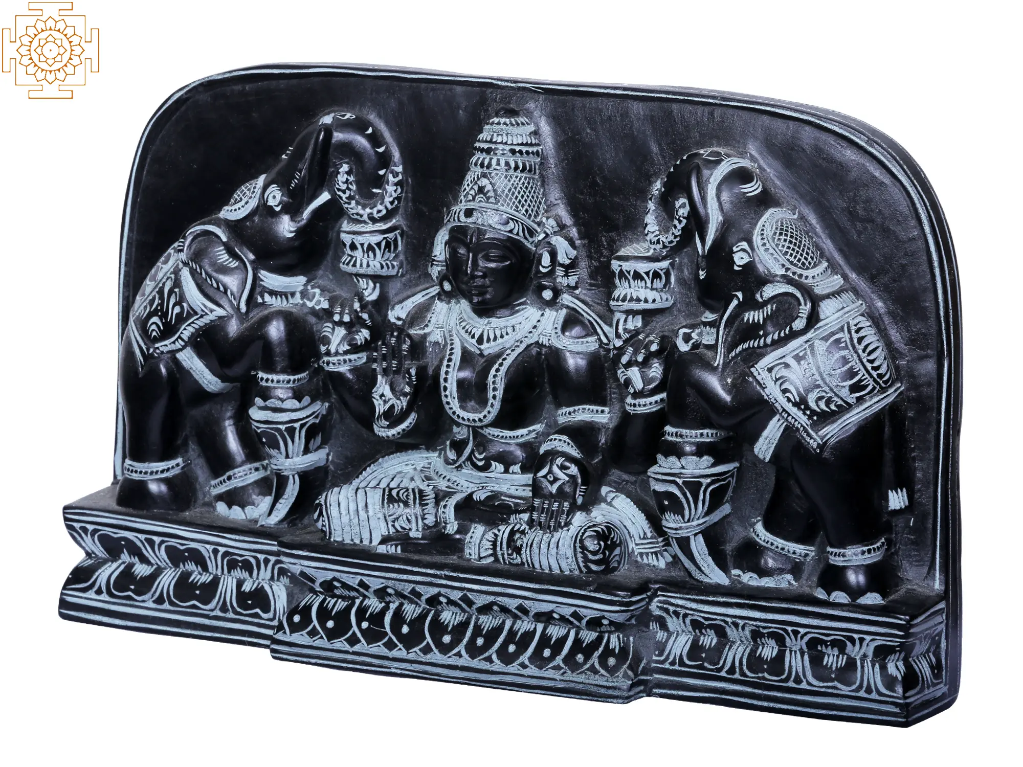 The worship of Gaja Lakshmi is deeply rooted in ancient traditions. It is believed that on auspicious occasions like Diwali, the festival of lights, worshipping Gaja Lakshmi invites prosperity and success into one's life. The presence of elephants signifies the uninterrupted flow of wealth, akin to the rain that nourishes the earth. This sculpture is more than just an object of art; it is a conduit of positive energy and a symbol of auspicious beginnings. Whether placed in a home altar, a meditation space, or as a striking decorative piece in a living area, this Gaja Lakshmi statue emanates an aura of peace, prosperity, and divine benevolence. Each detail, from the serene expression of the goddess to the powerful stance of the elephants, is meticulously carved, reflecting centuries of tradition and devotion. This piece is a beautiful reminder of the blessings that await those who seek fortune and abundance with a pure heart.