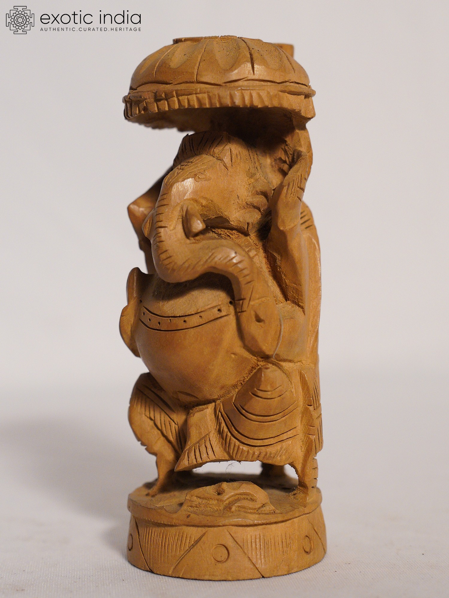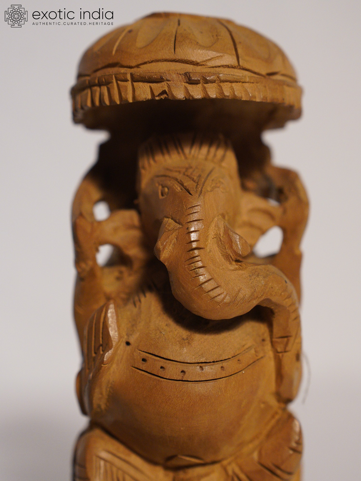 Wooden Sculpture of Lord Ganesha Plays the Shehnai