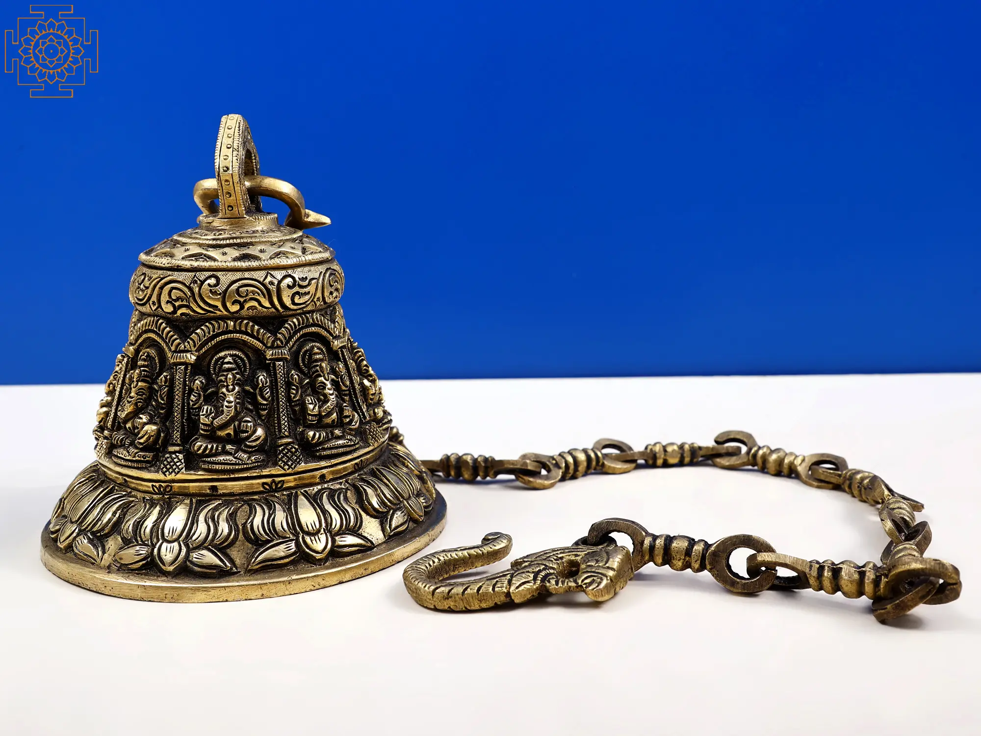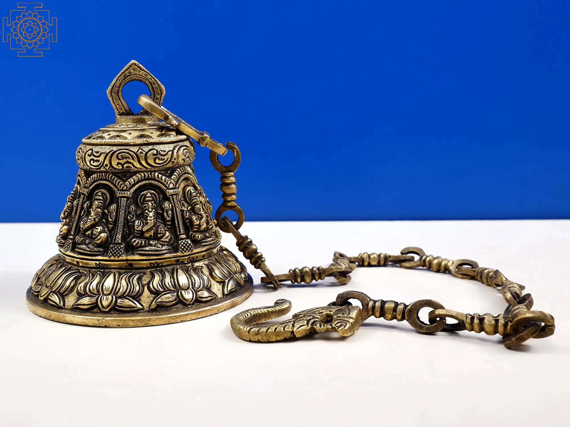 The Ganesha Temple Ceiling Bell is not just a musical instrument; it's a guardian of your sacred space. Handmade with devotion, it bears the image of Lord Ganesha, the remover of obstacles. As you ring this bell in your temple, you invoke blessings and remove barriers on your spiritual journey. The melodious sound resonates with the presence of Ganesha, creating a harmonious atmosphere. This ceiling bell is a tribute to the divine and a reminder that every obstacle can be overcome with faith and devotion.